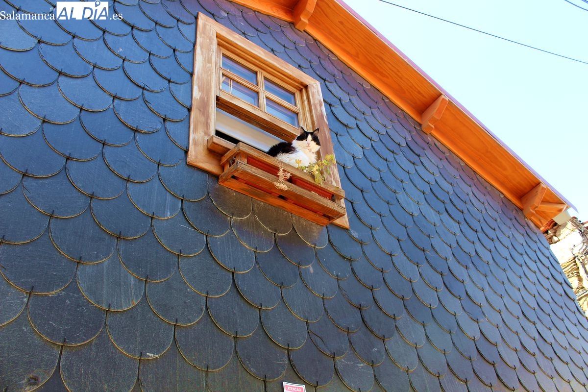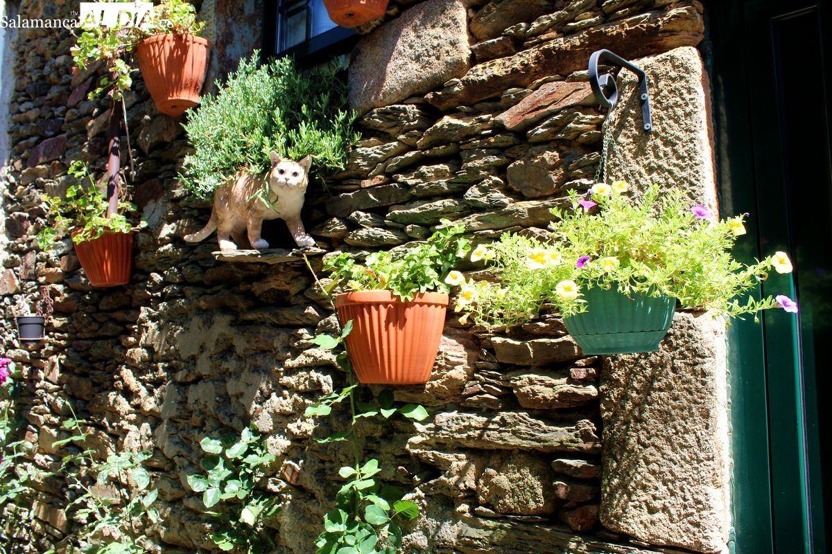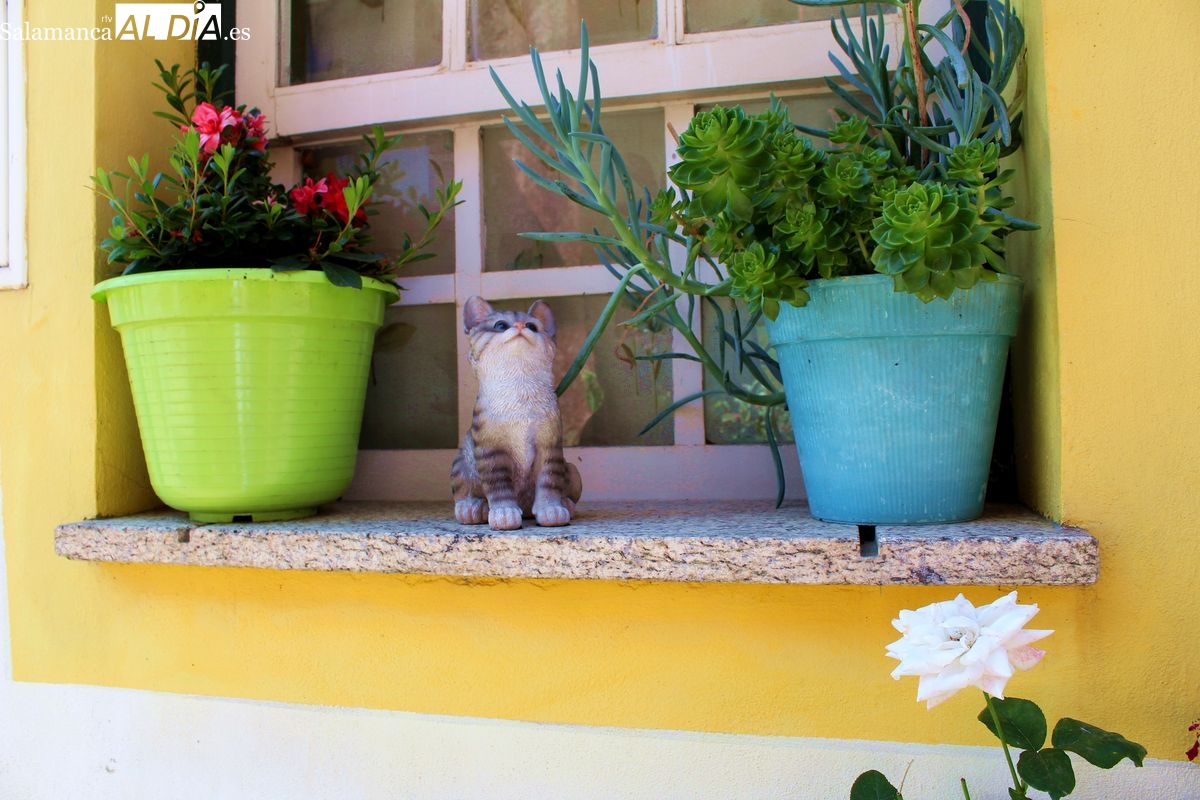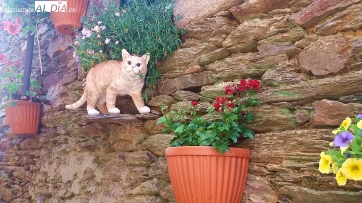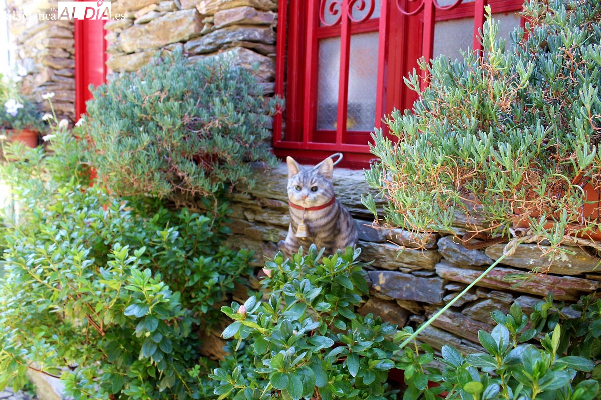 Nos adentramos en ella, entre el claroscuro que deja la luz solar, dispuestos a divisar el primer felino. Cuando lo hacemos, descubrimos que estamos ya rodeados de ellos. Todos nos miran, pero ninguno se mueve. Los gatos tienen fama de gustar del reposo, pero es que, la mayoría de los que podemos contemplar desde múltiples ángulos, son de escayola, descansan tranquilamente en alféizares y barandas.