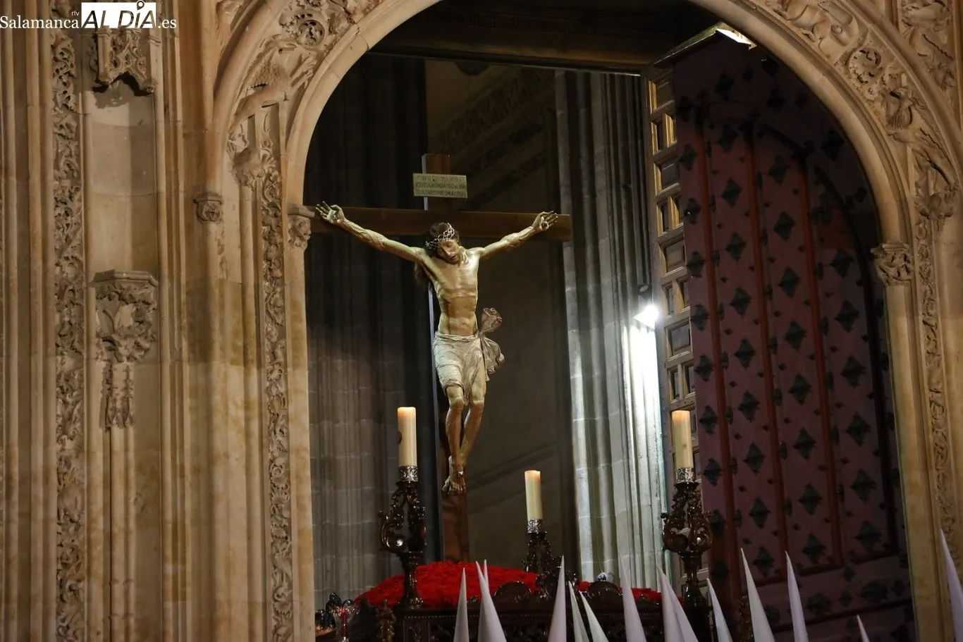 A este rigor se suma la estética de su hábito blanco y rojo, que en la oscuridad de la noche genera un fuerte contraste visual. Esta combinación convierte al desfile en uno de los más seguidos por los fotógrafos salmantinos que documentan la Pasión en la ciudad.
