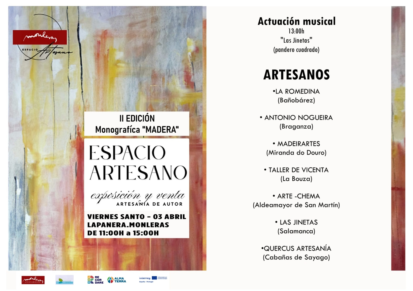 El Espacio Artesano es una actividad que forma parte del proyecto RE-CORDARE, Revivir la Cultura y el Patrimonio en el territorio transfronterizo, un proyecto Interreg de cooperación transfronteriza que está desarrollando el Ayuntamiento de Monleras como miembro de Alma Terra, Asociación de Municipios Ibéricos por la Defensa del Territorio, que lidera la iniciativa. En el marco de este mismo proyecto, el Ayuntamiento está rehabilitando una antigua casona solariega que acogerá en breve el futuro Centro de Artesanías, un nuevo espacio cultural que formará parte de la Red Internacional de Espacios de la Memoria que se pretenden crear y dinamizar gracias a la ayuda europea y al trabajo compartido por los municipios asociados.