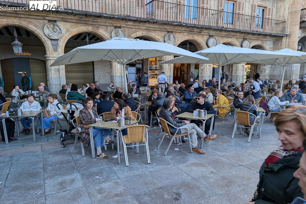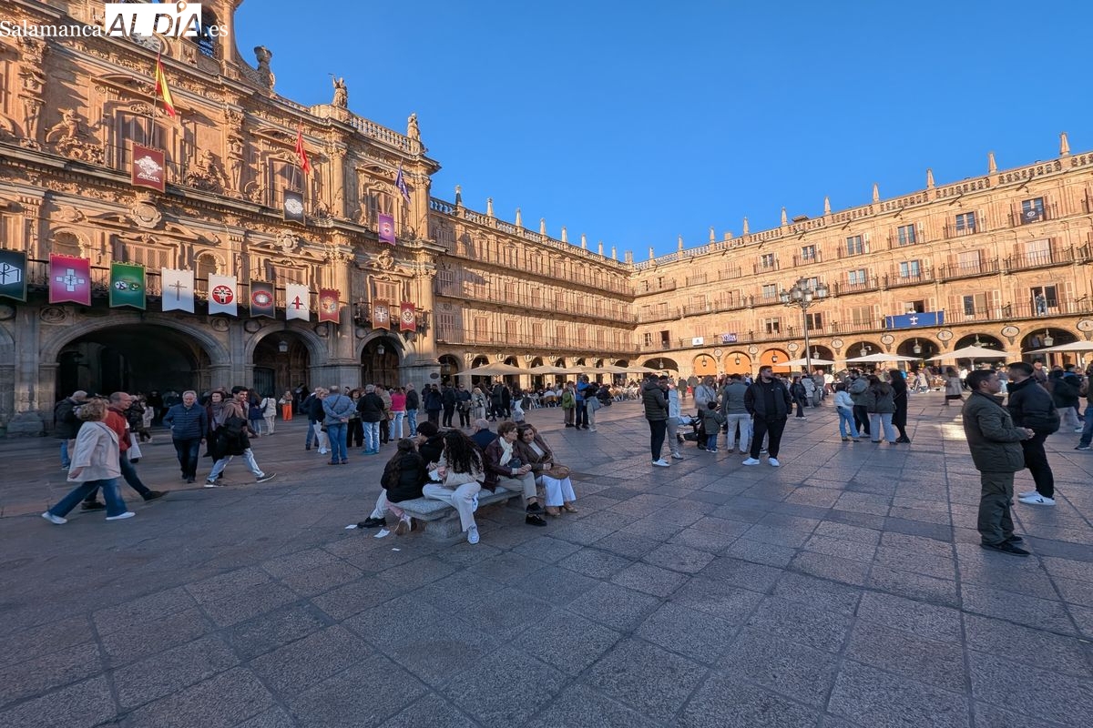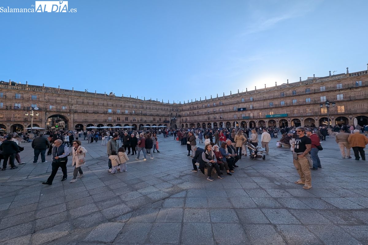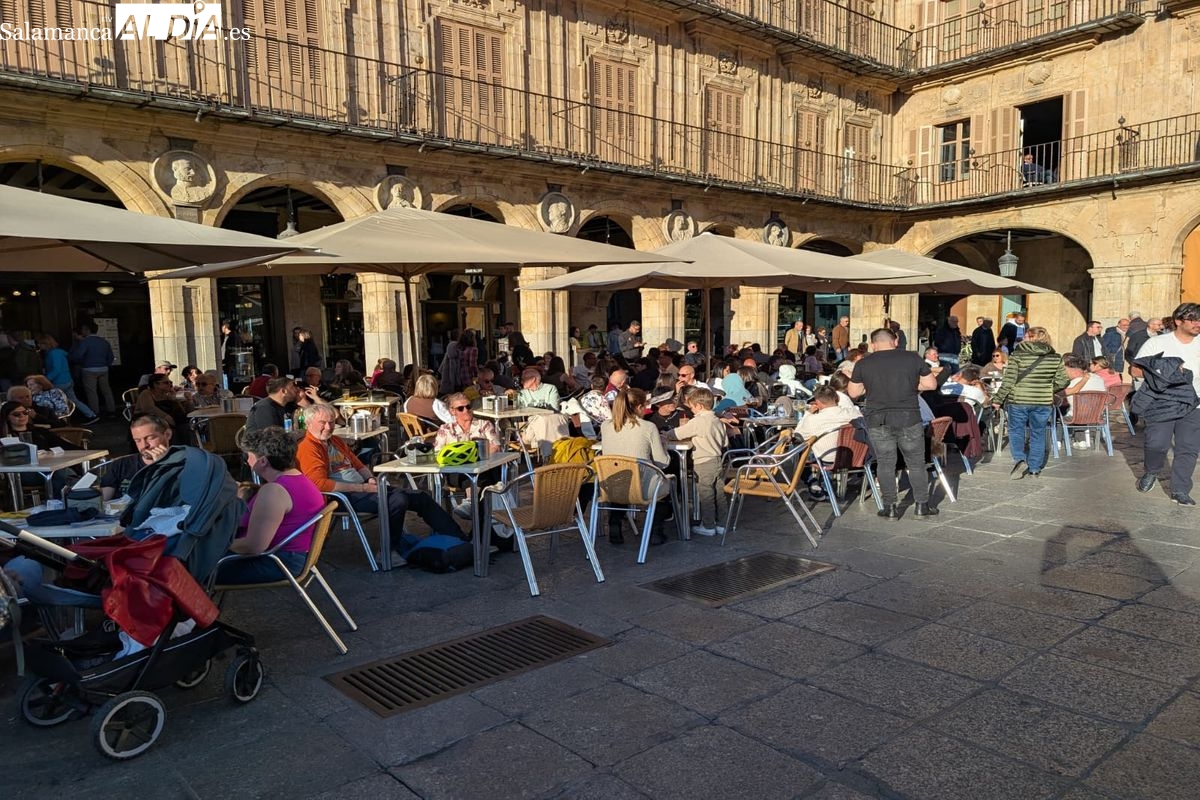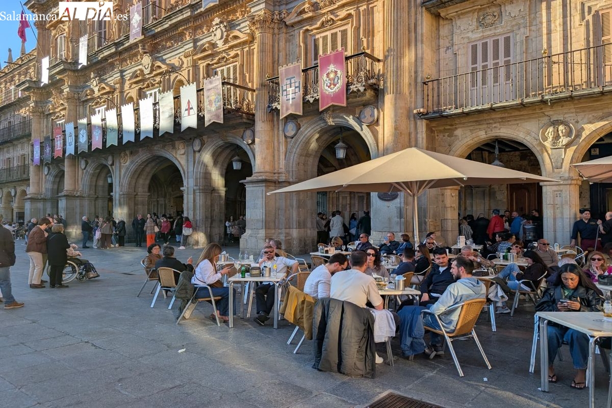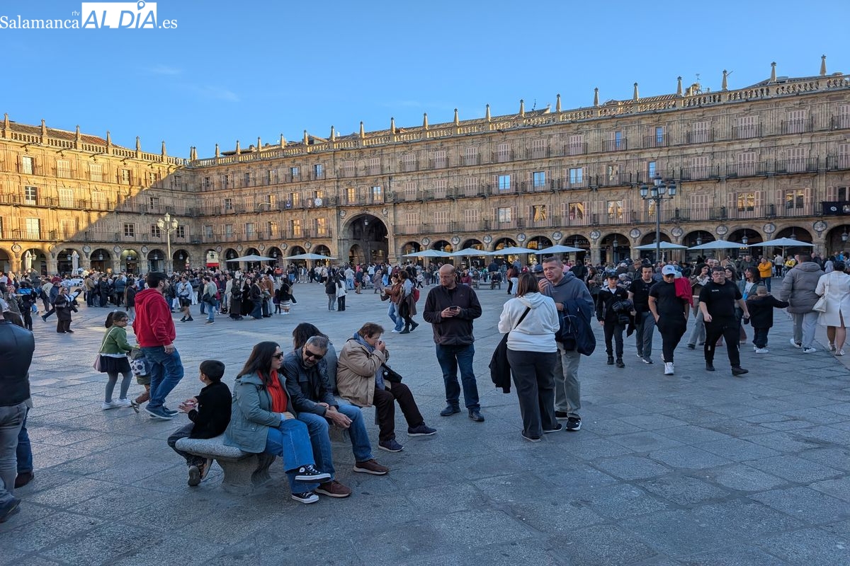 Desde primera hora de la jornada, el casco antiguo de Salamanca ha congregado a multitud de personas que disfrutan de la festividad. El buen tiempo que acompaña a este 2 de abril ha animado tanto a los residentes como a los visitantes a salir a la calle, llenando las principales vías peatonales, plazas y establecimientos de hostelería de la capital.