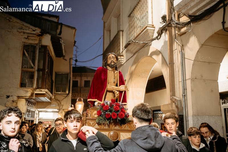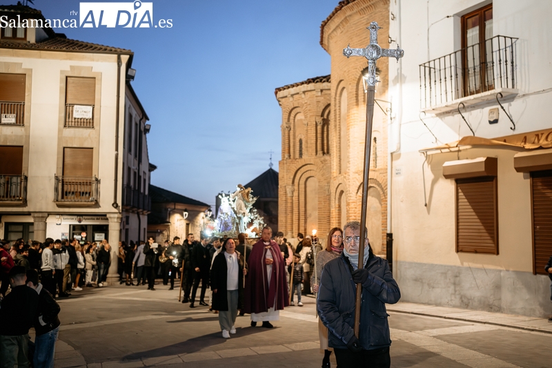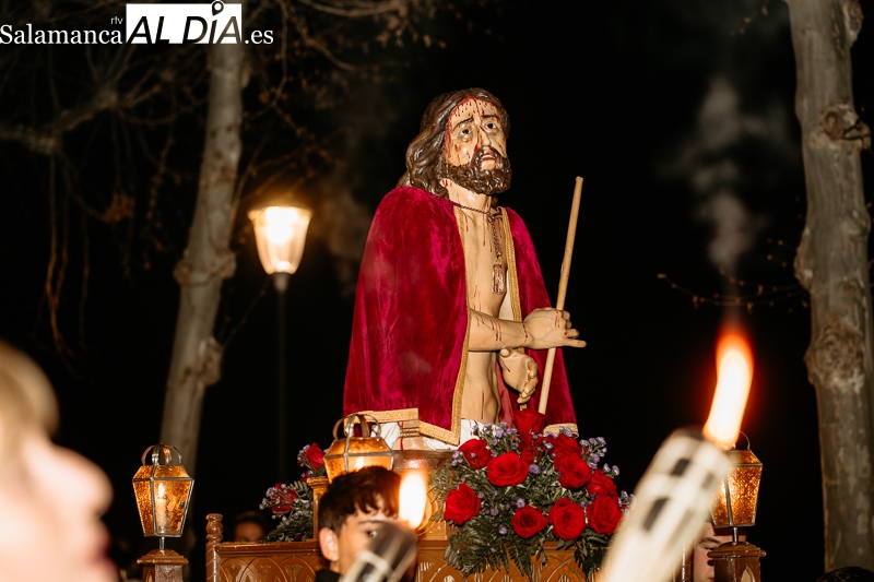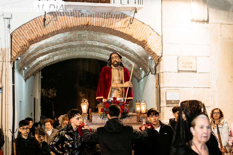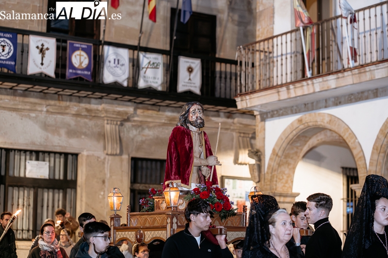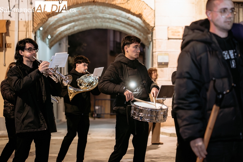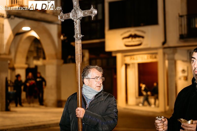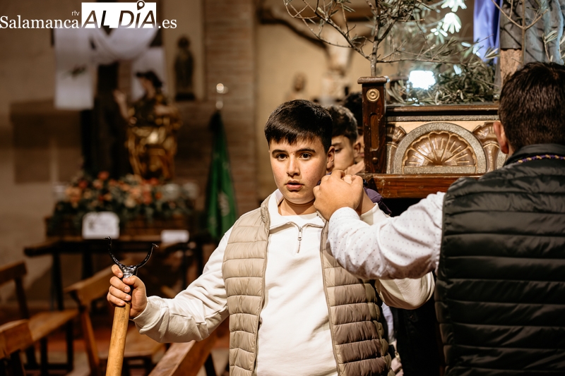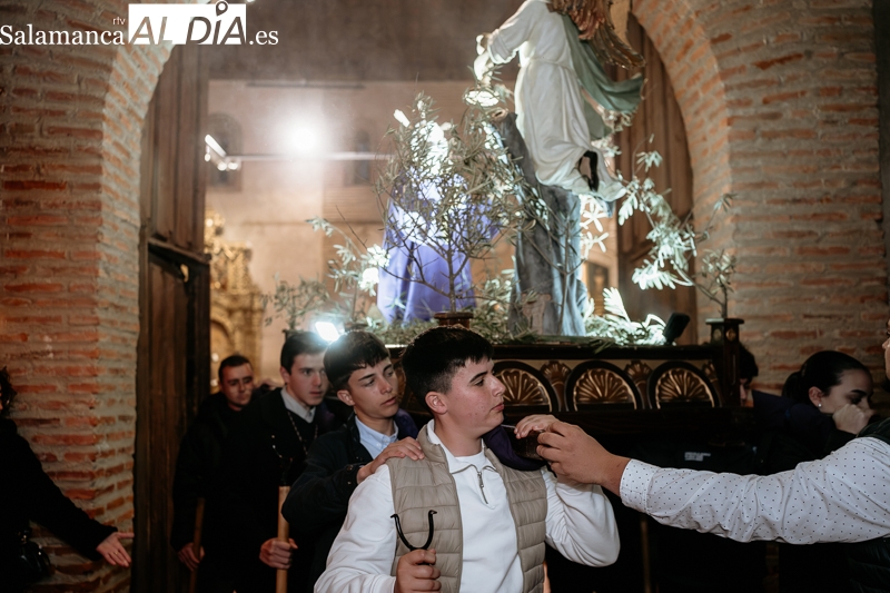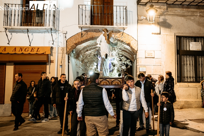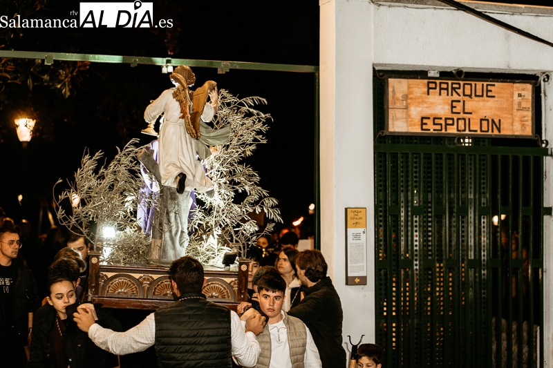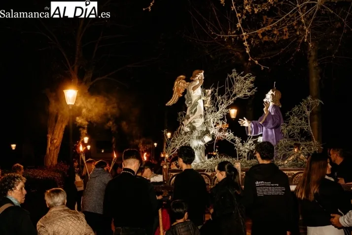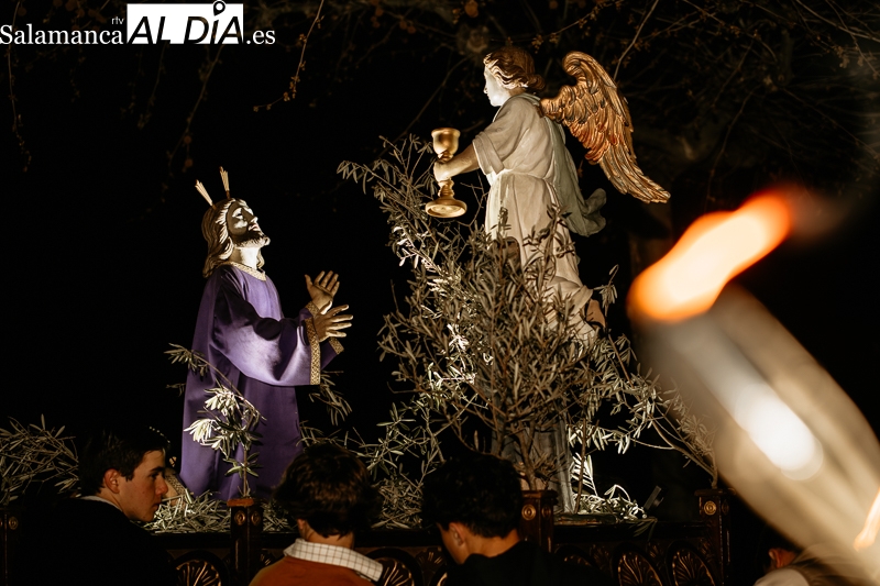 La Semana Santa de Alba de Tormes continuó su curso este jueves 2 de abril con la procesión del Huerto de los Olivos, que comenzó a las nueve de la noche. Durante la marcha, los cofrades portaron los pasos de la Oración del Huerto de los Olivos y el Ecce Homo.