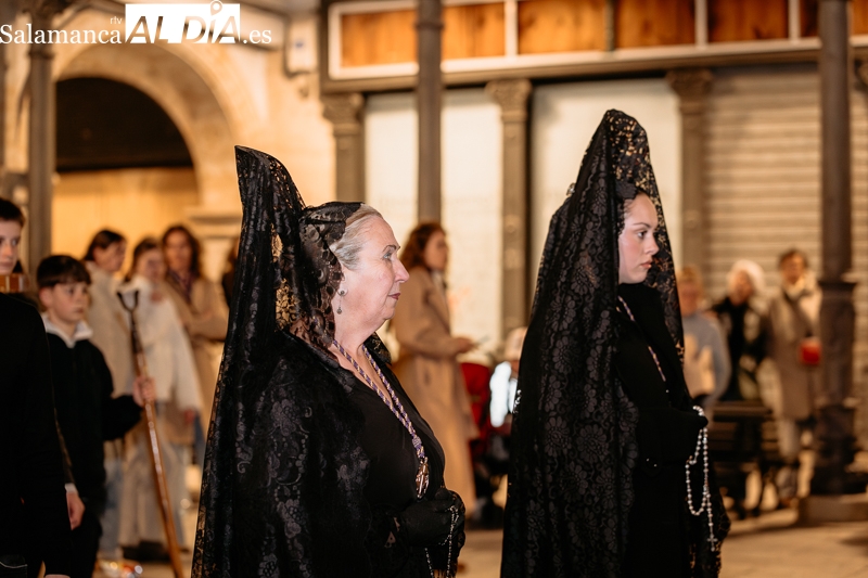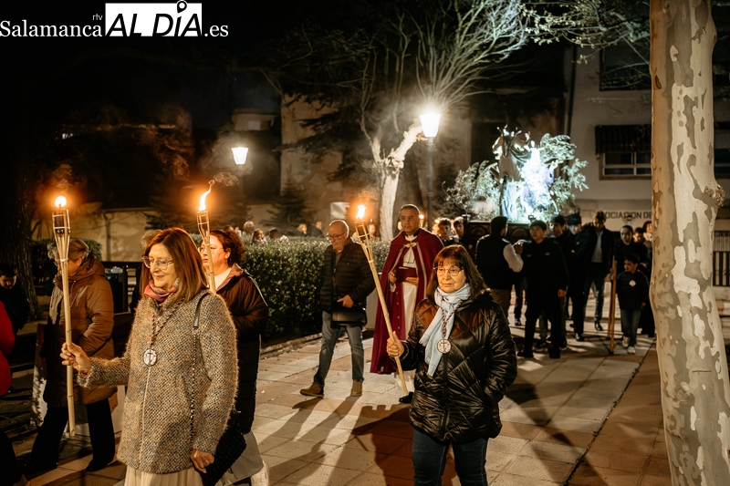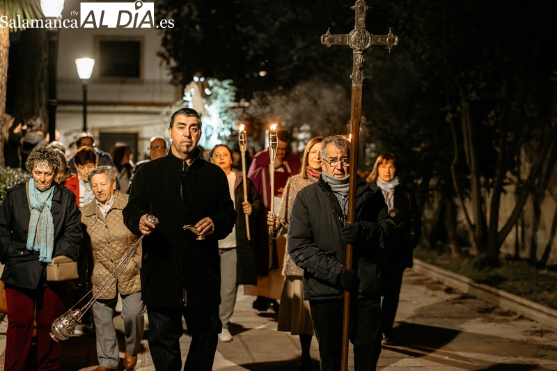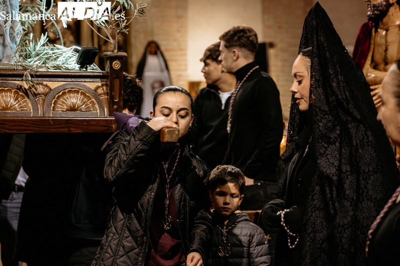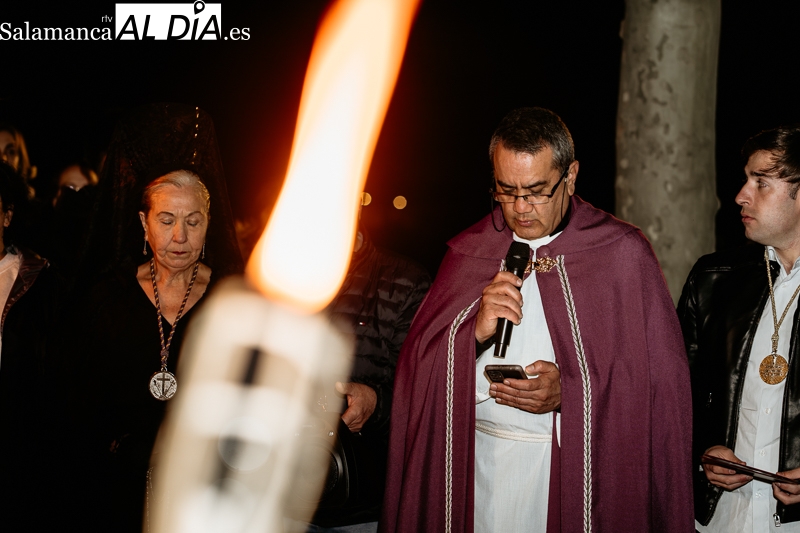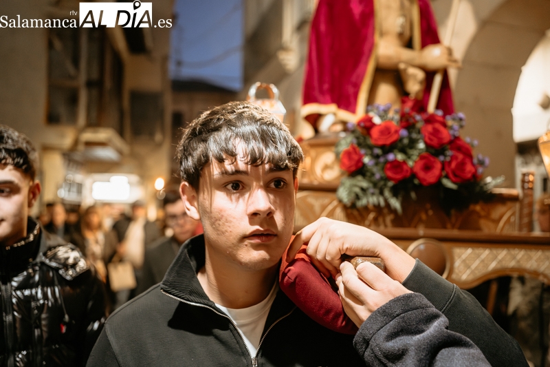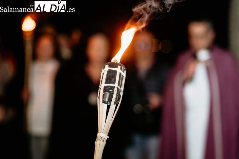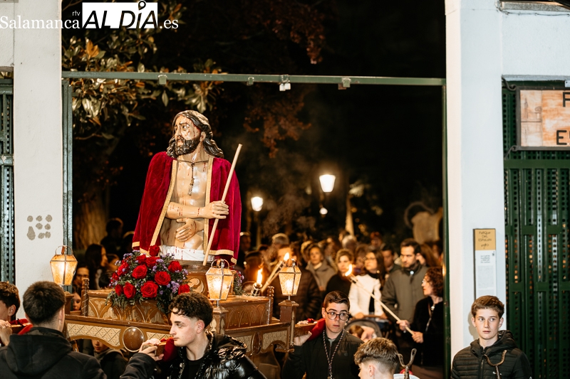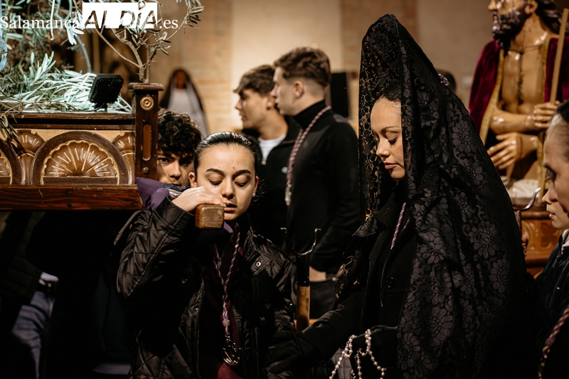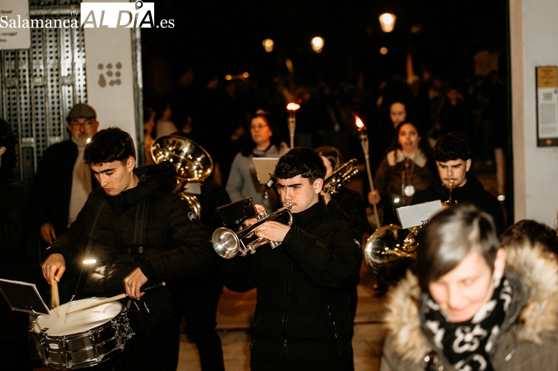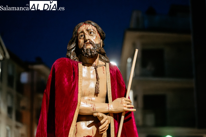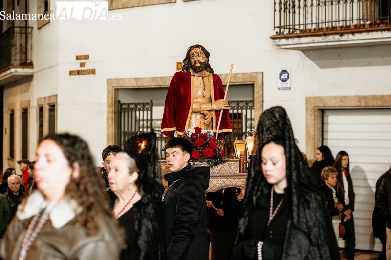 La Semana Santa de Alba de Tormes continuó su curso este jueves 2 de abril con la procesión del Huerto de los Olivos, que comenzó a las nueve de la noche. Durante la marcha, los cofrades portaron los pasos de la Oración del Huerto de los Olivos y el Ecce Homo.