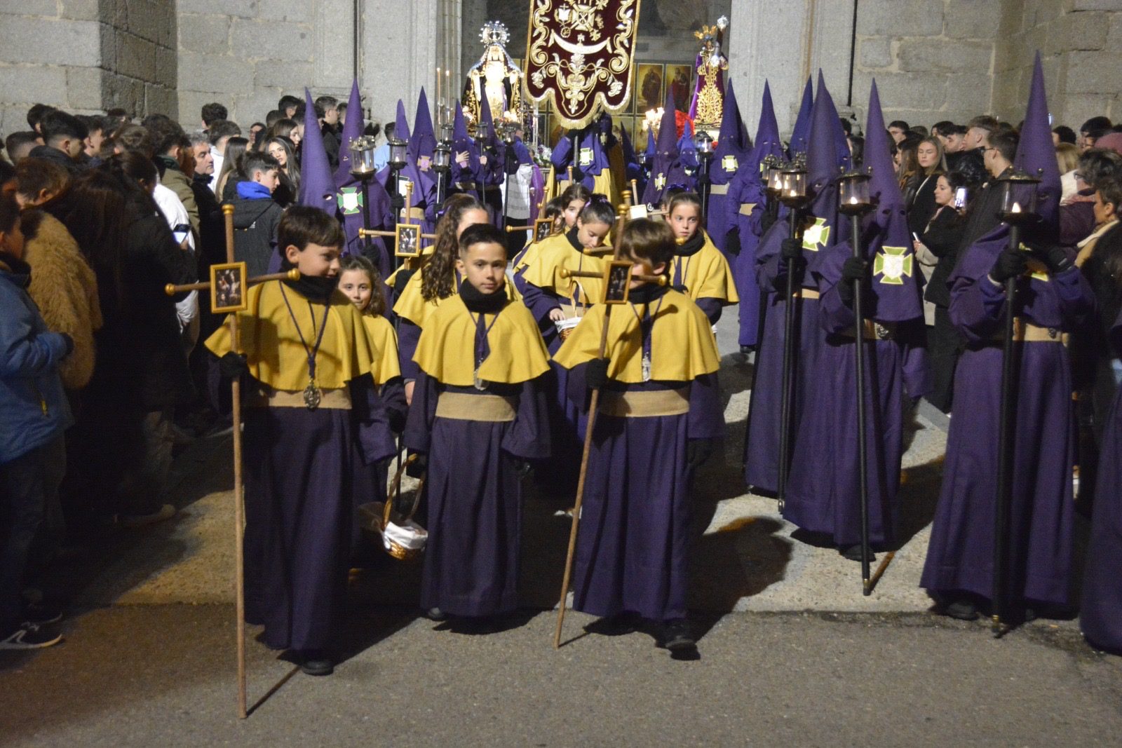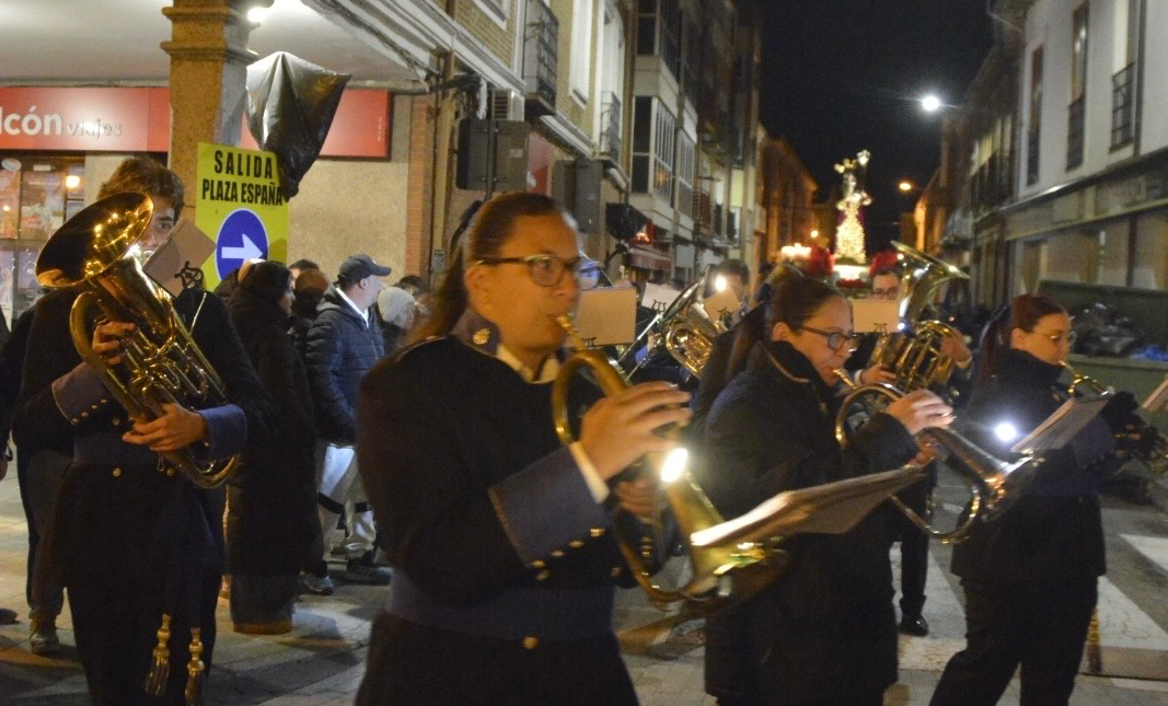 El cortejo recorrió durante más de dos horas las principales calles y plazas del centro urbano, avanzando en un ambiente de profundo recogimiento. El silencio, protagonista de la noche, solo se vio interrumpido por la música procesional y el característico sonido de las campanas que portaban los más pequeños, aportando una nota entrañable a la procesión.