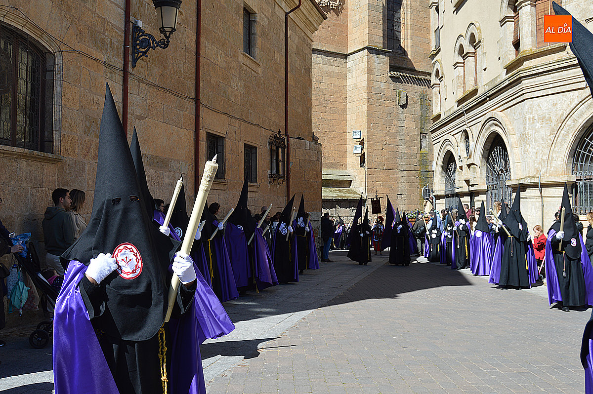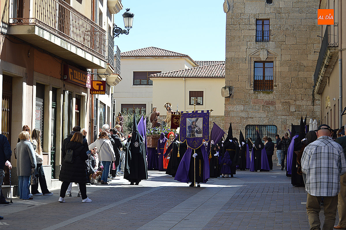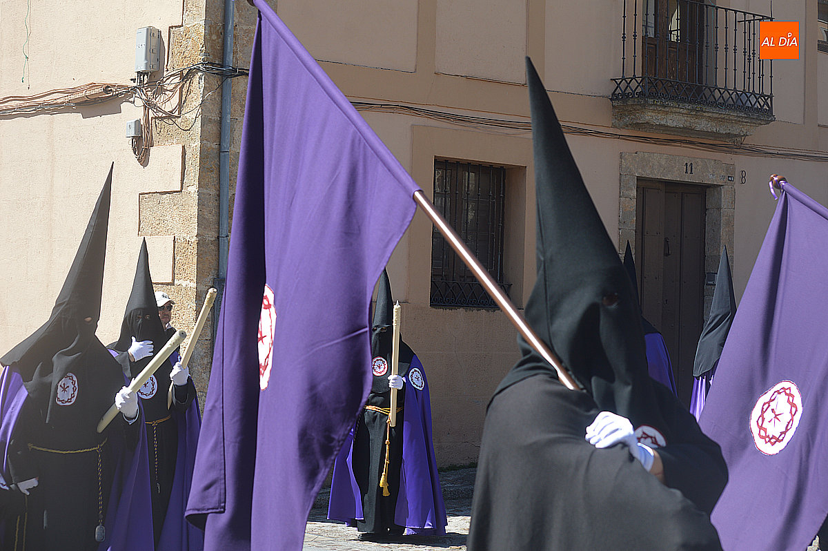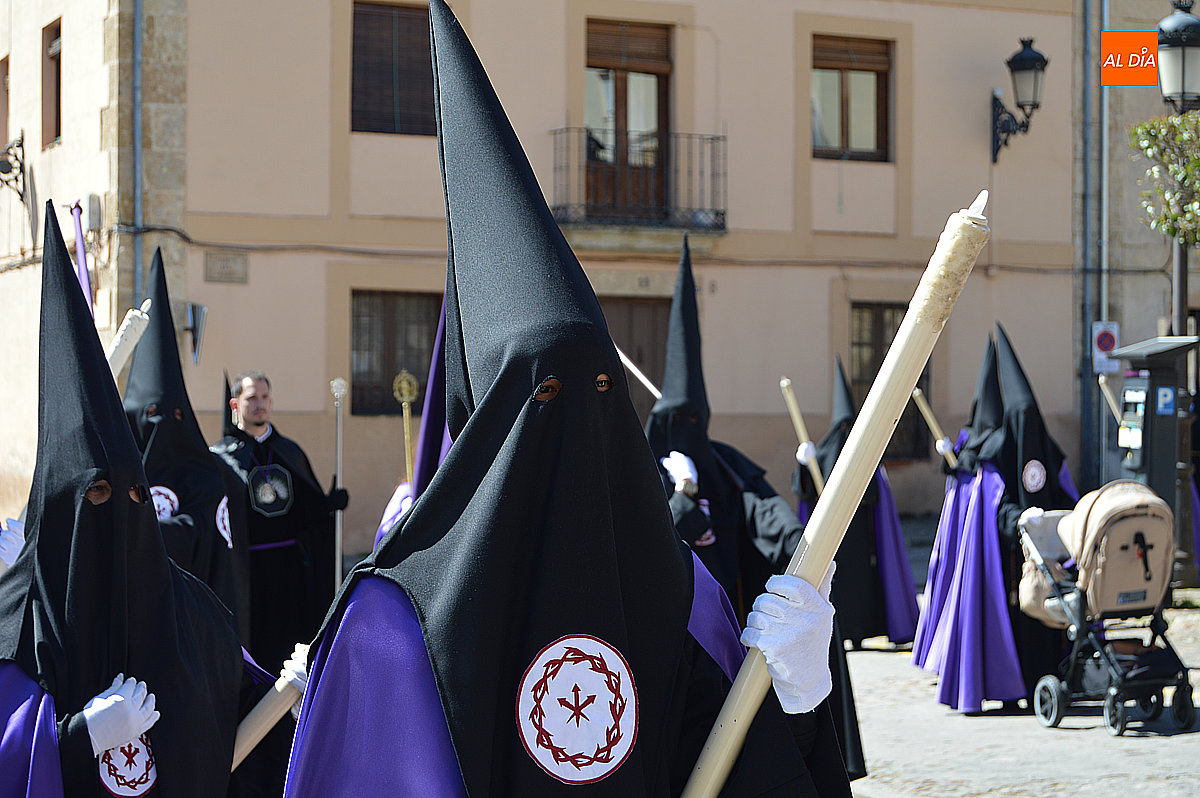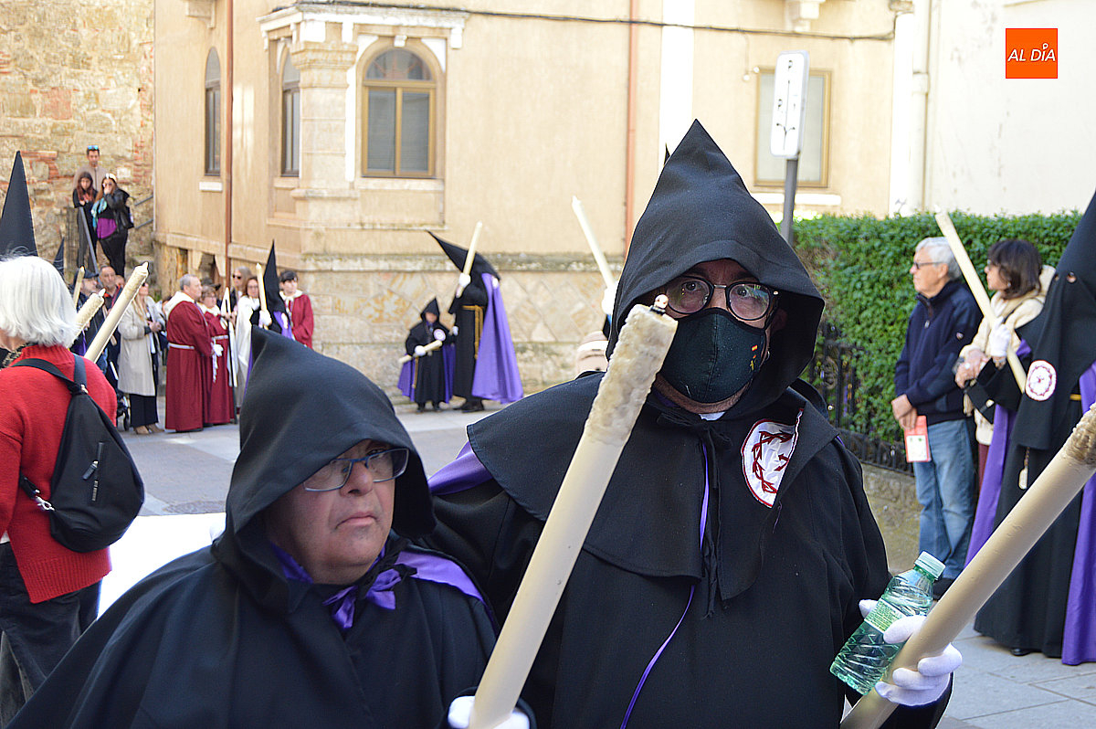 La mañana de procesiones de este Jueves Santo en Ciudad Rodrigo se cerró con la salida del Paso de la Agonía, de la Cofradía de Jesús Nazareno, en uno de los momentos más sobrecogedores de la jornada.