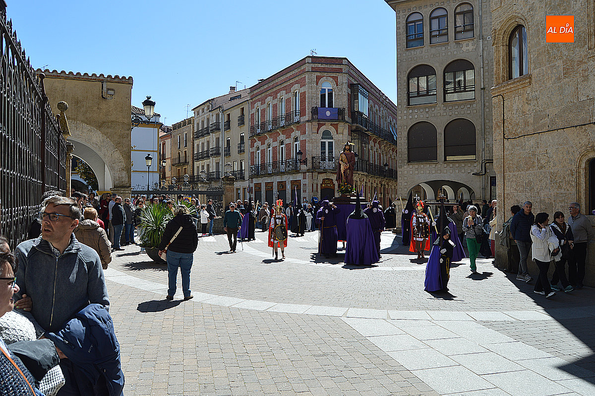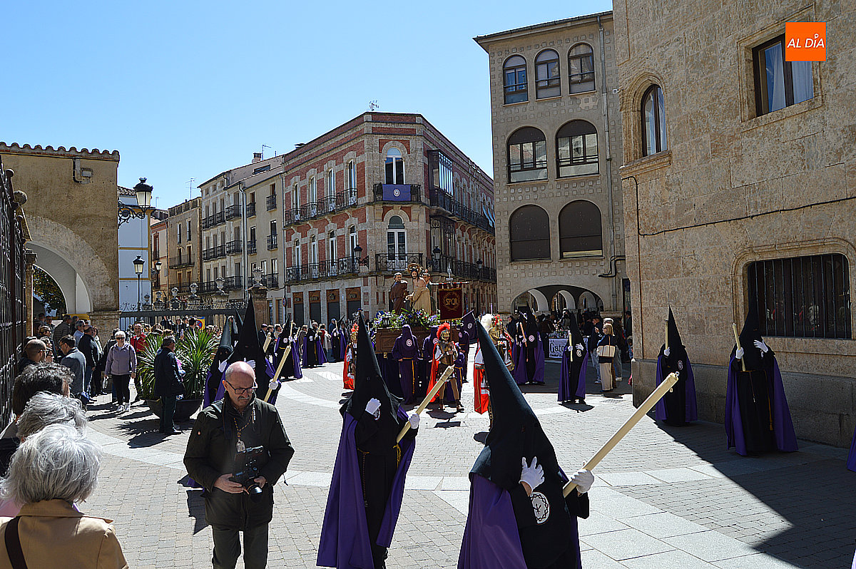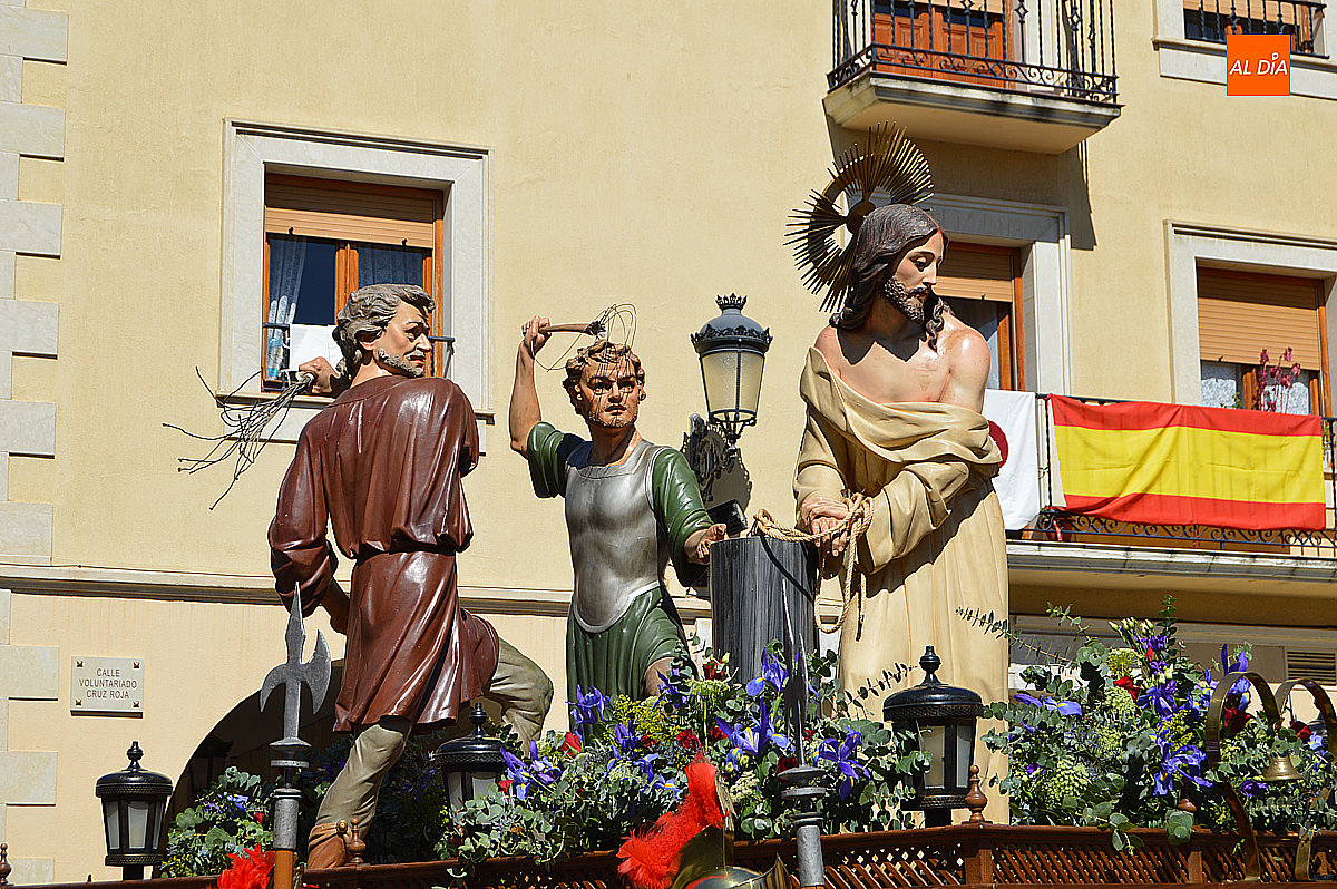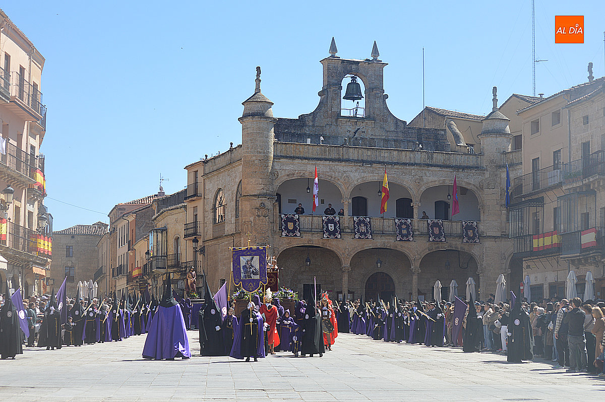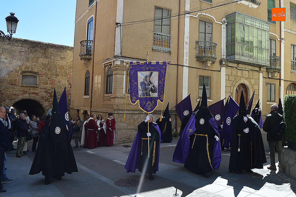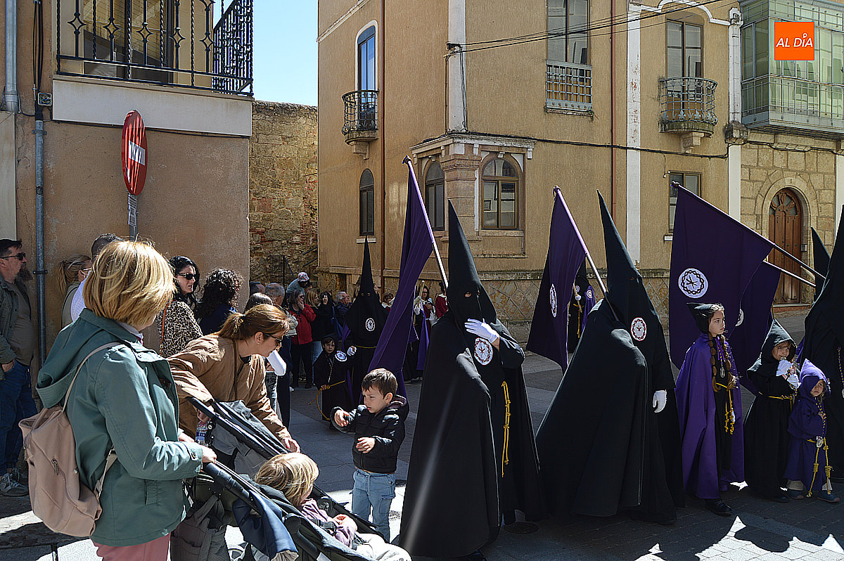 La cofradía de Jesús Nazareno ha celebrado la Procesión del Paso de la Agonía en la mañana del Jueves Santo en Ciudad Rodrigo. Los pasos del Ecce Homo y Los Azotes han recorrido el casco histórico hasta la Catedral de Santa María en un ambiente de profundo silencio y solemnidad.