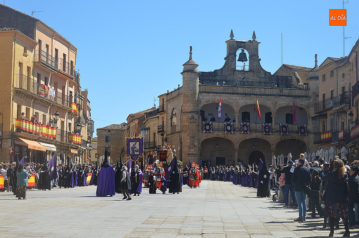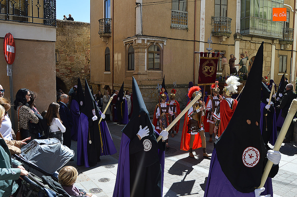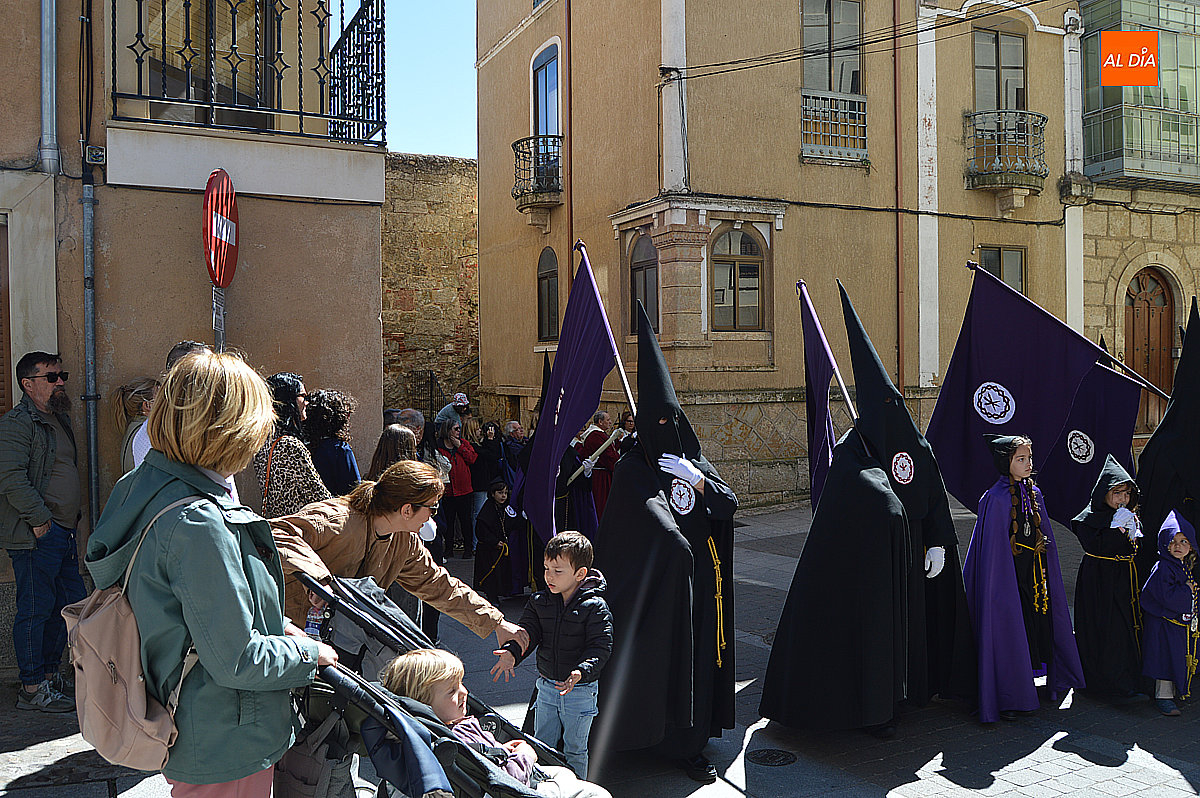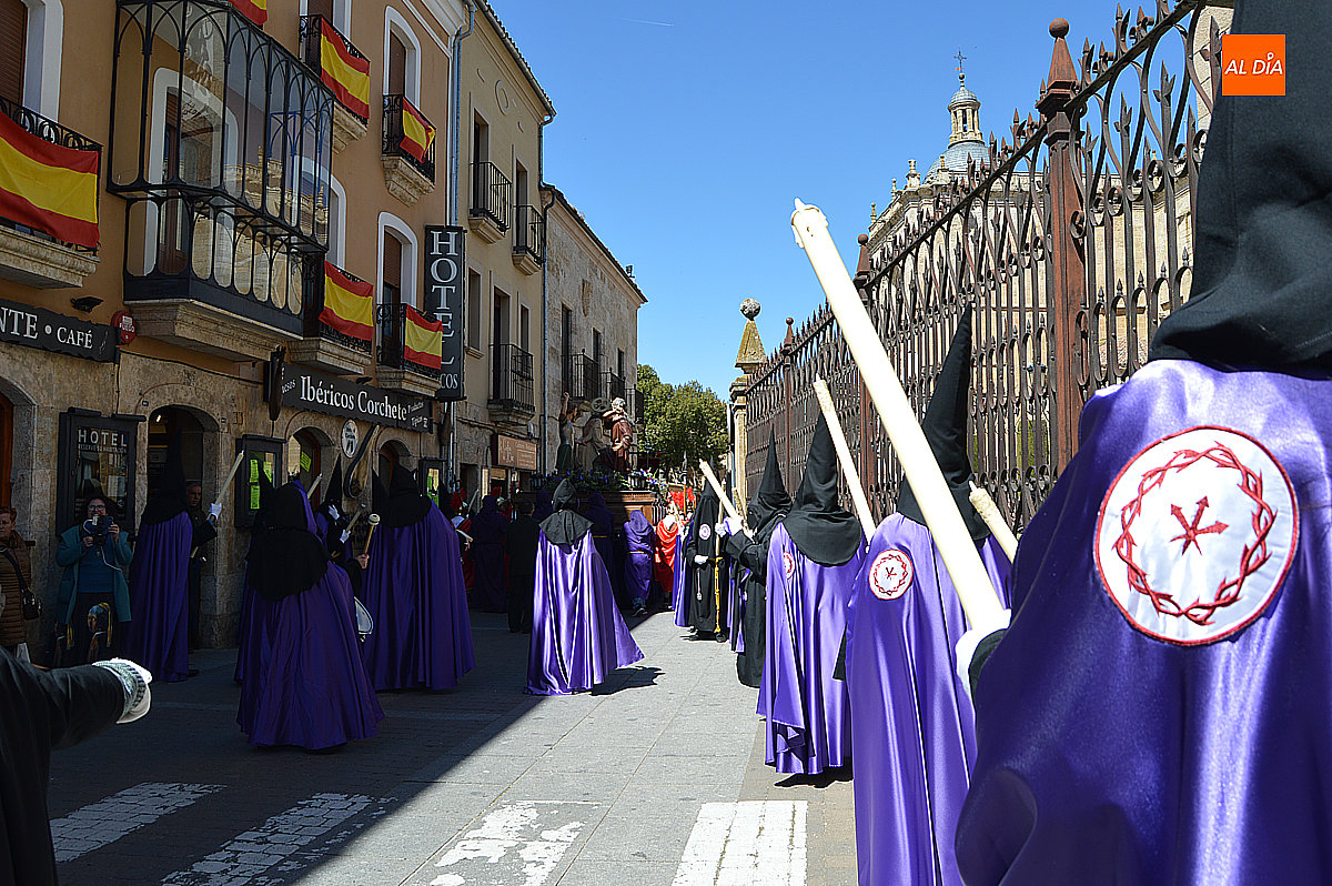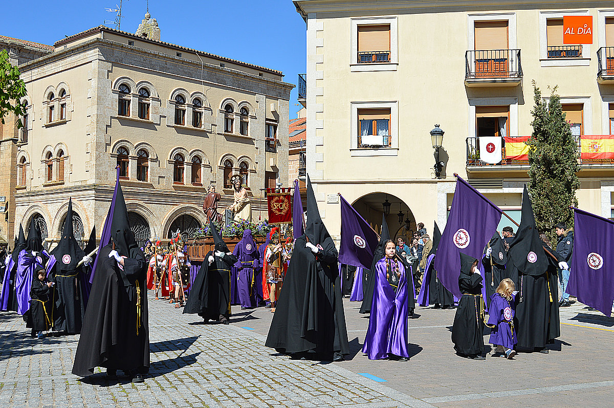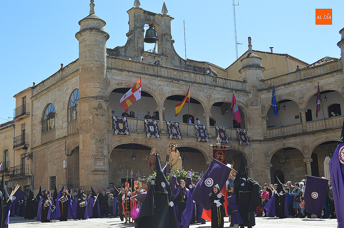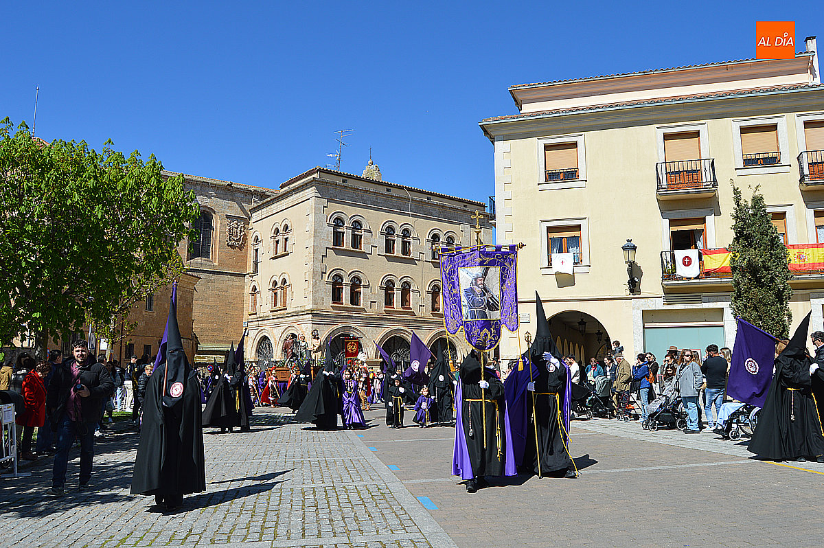 La cofradía de Jesús Nazareno ha celebrado la Procesión del Paso de la Agonía en la mañana del Jueves Santo en Ciudad Rodrigo. Los pasos del Ecce Homo y Los Azotes han recorrido el casco histórico hasta la Catedral de Santa María en un ambiente de profundo silencio y solemnidad.