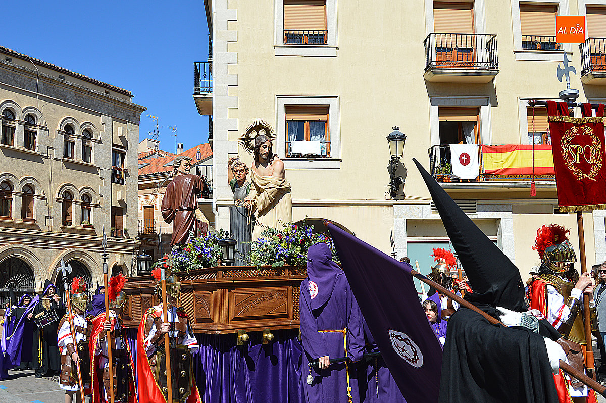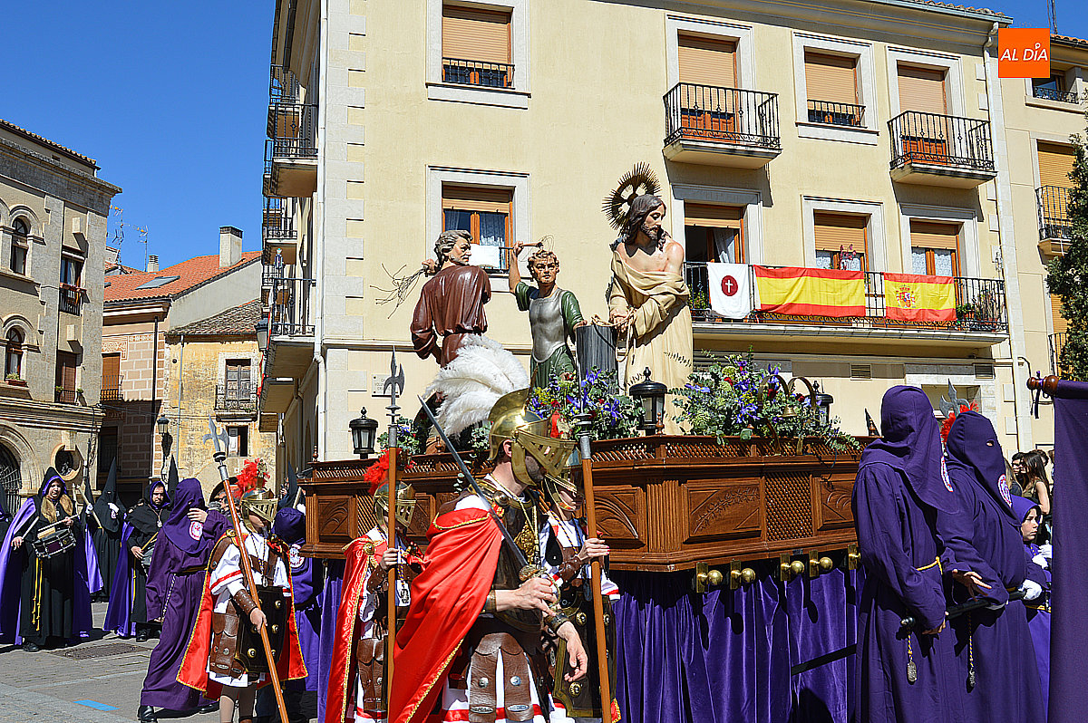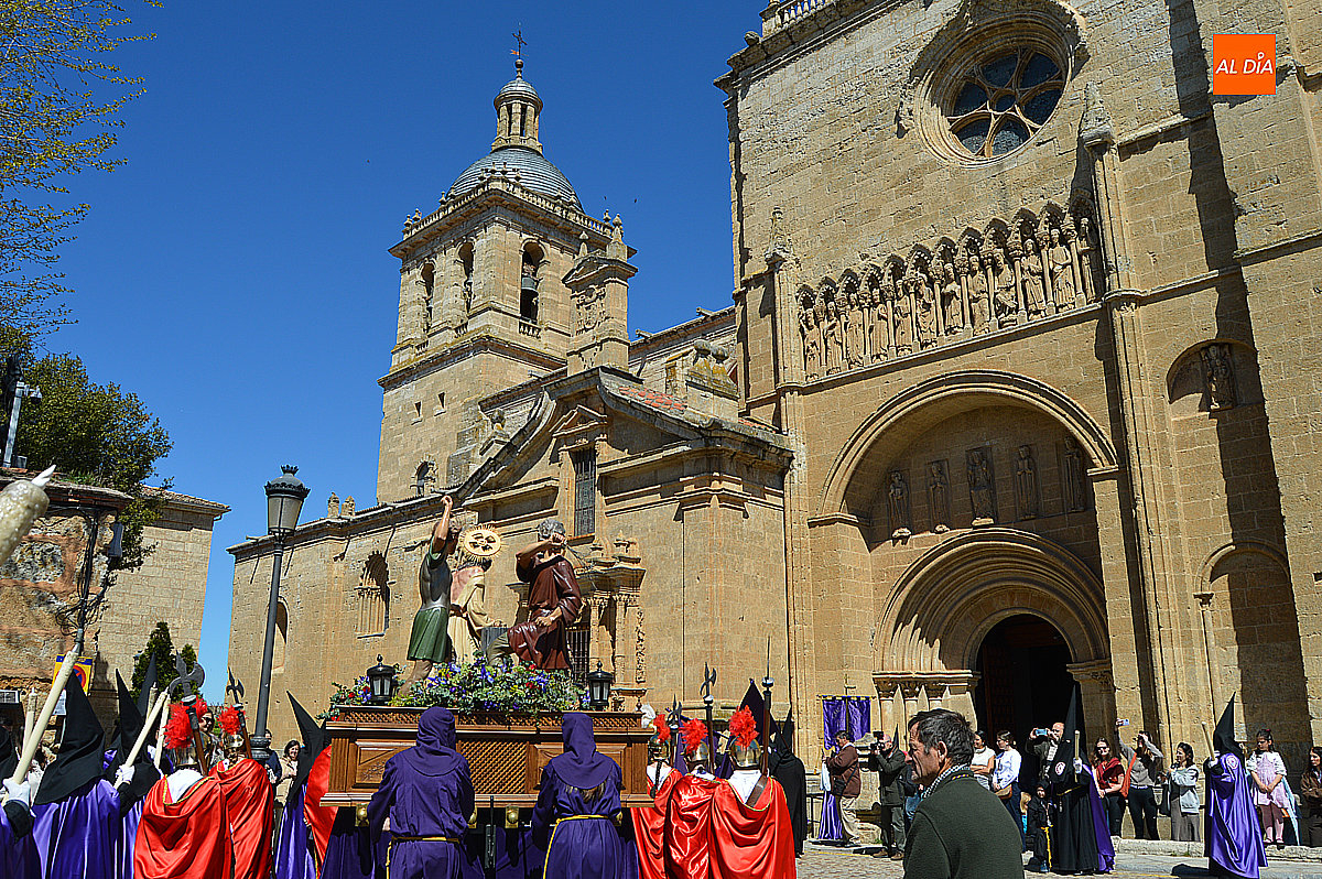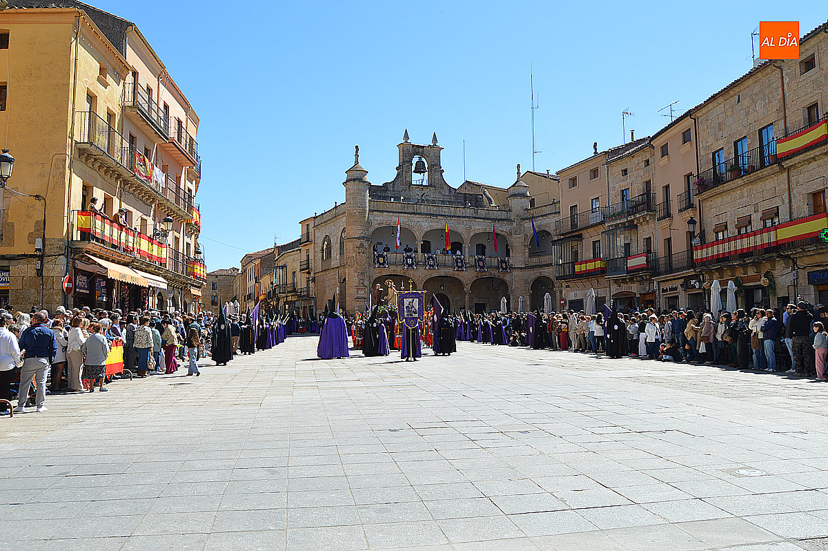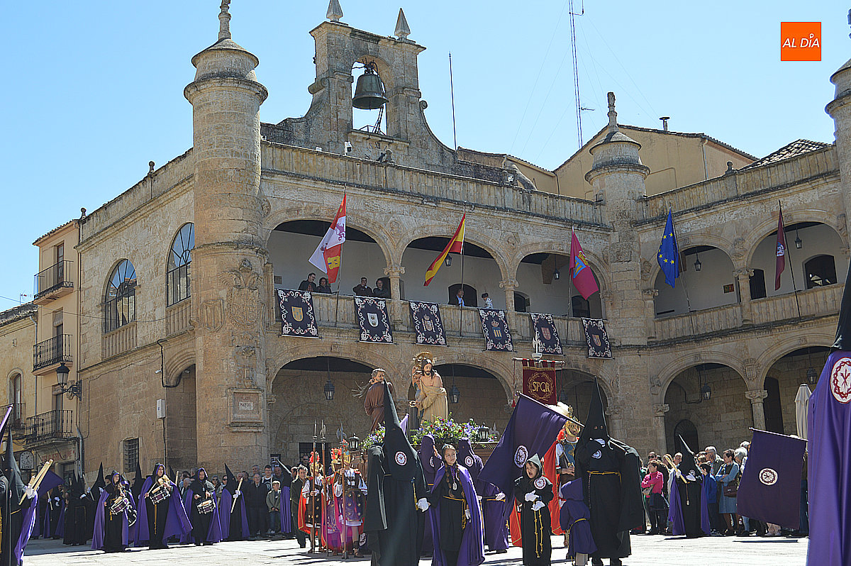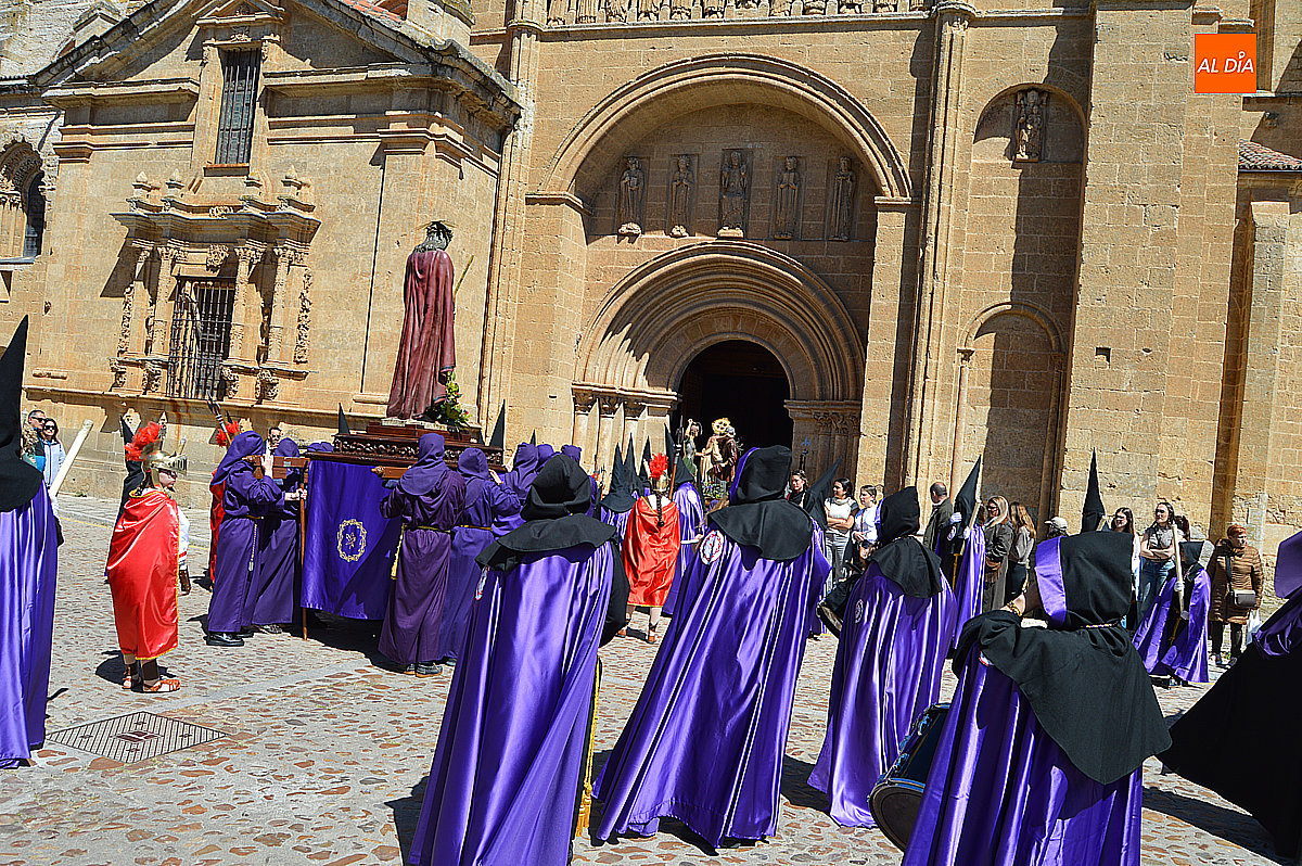 La cofradía de Jesús Nazareno ha celebrado la Procesión del Paso de la Agonía en la mañana del Jueves Santo en Ciudad Rodrigo. Los pasos del Ecce Homo y Los Azotes han recorrido el casco histórico hasta la Catedral de Santa María en un ambiente de profundo silencio y solemnidad.