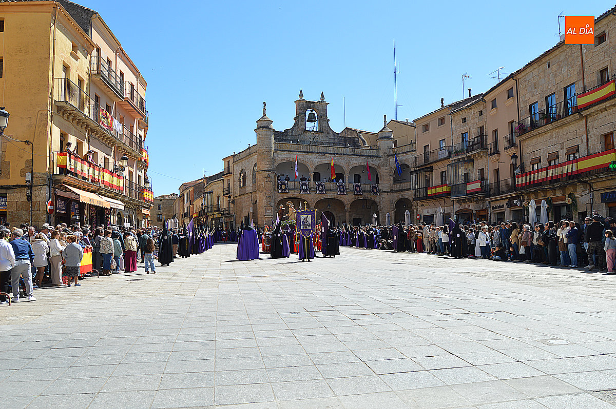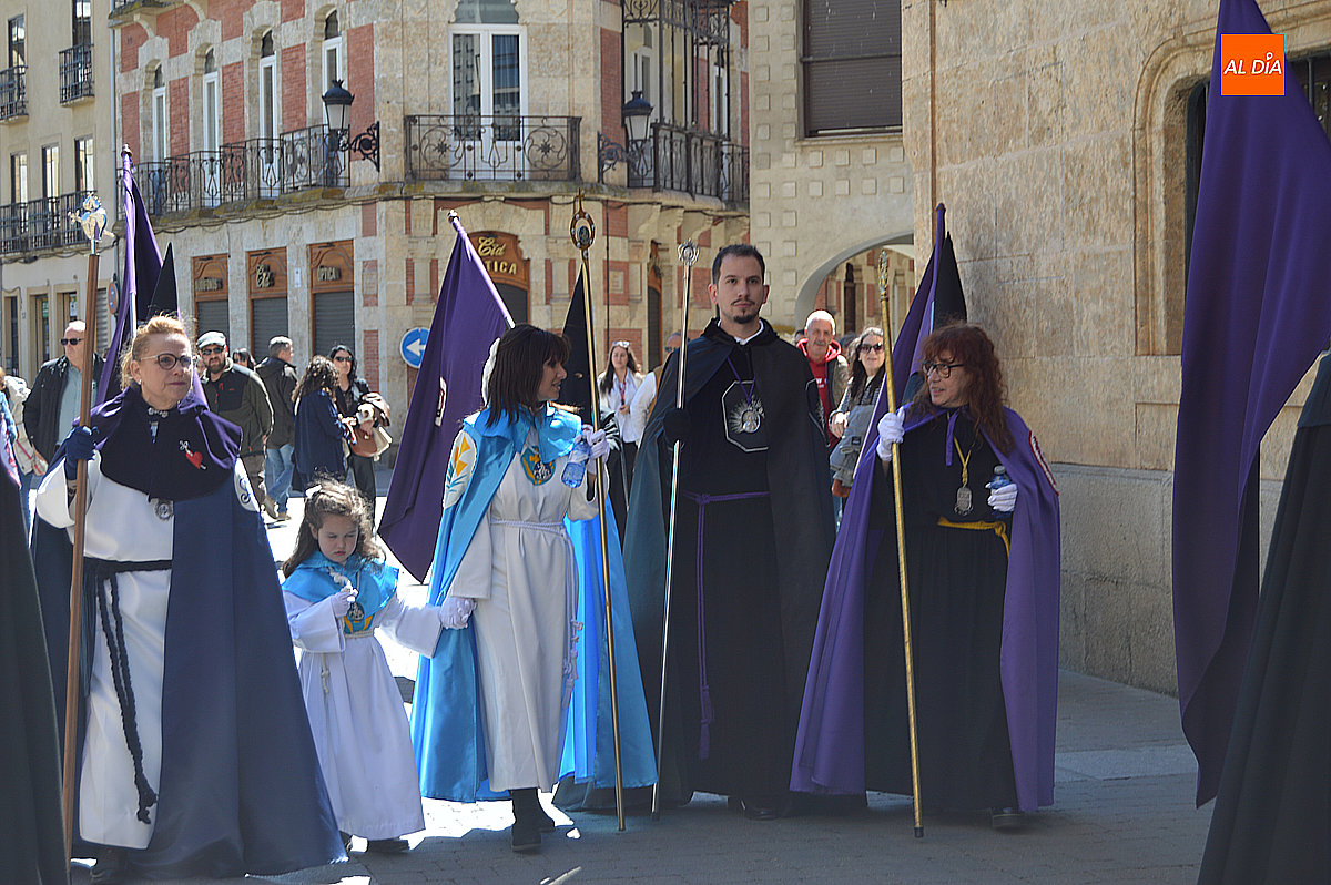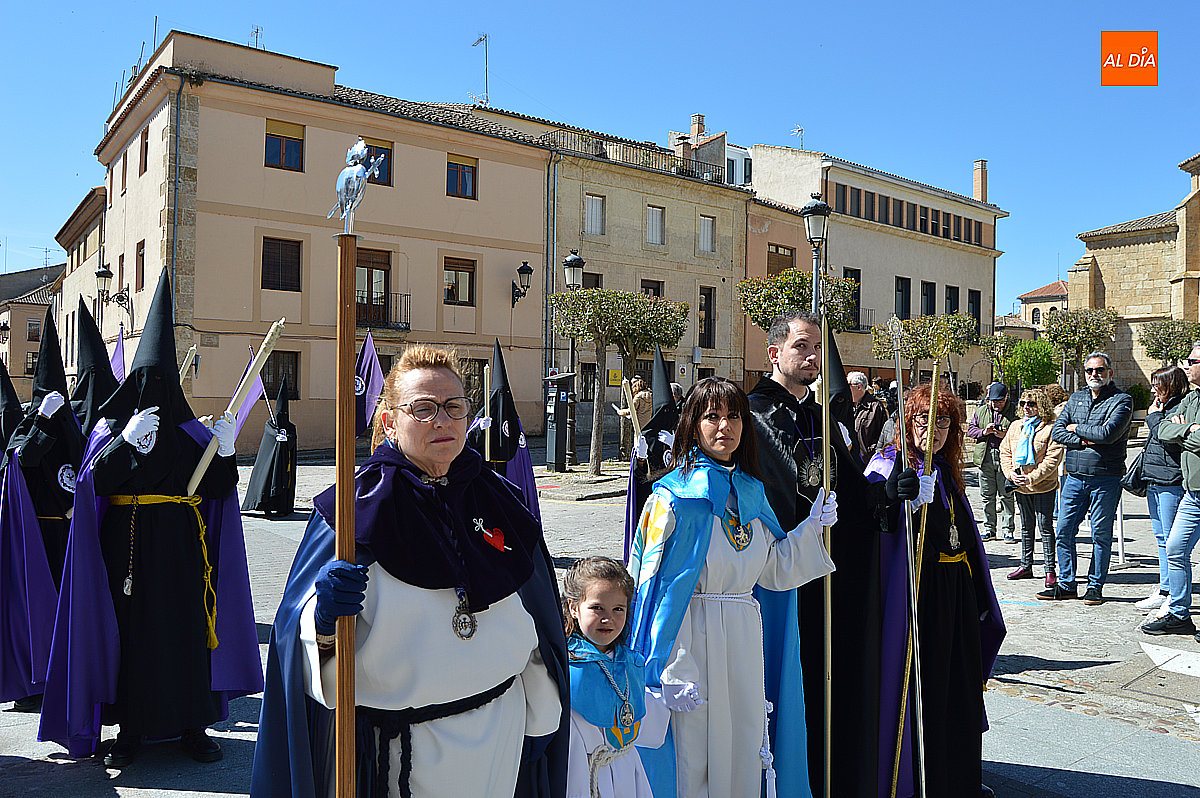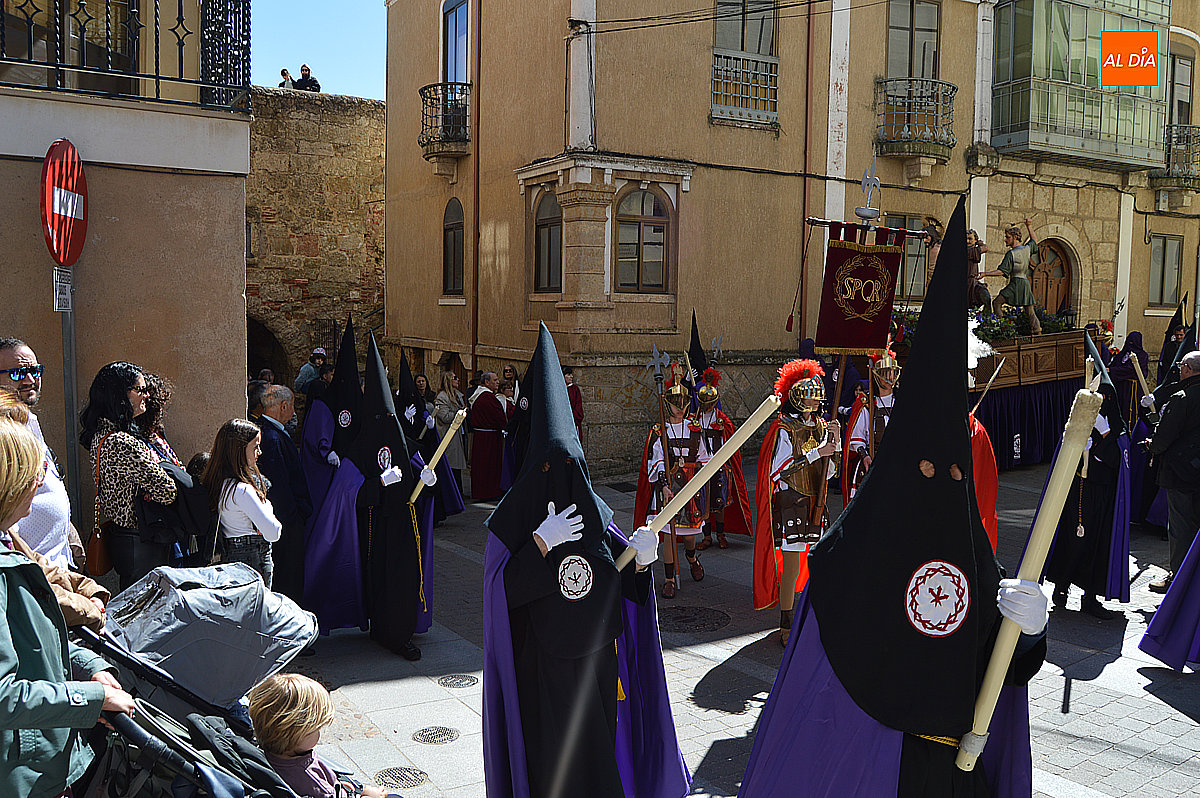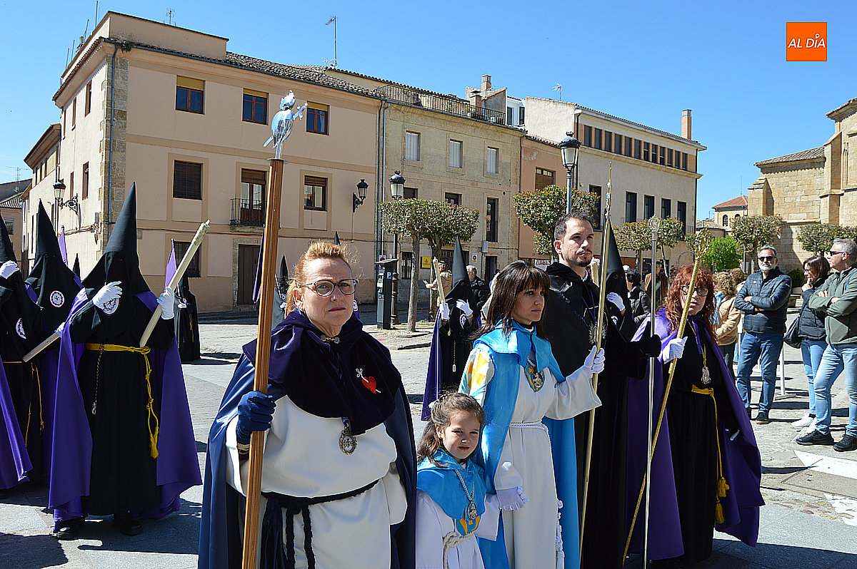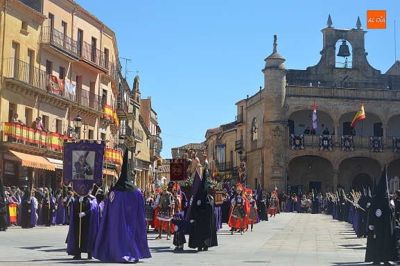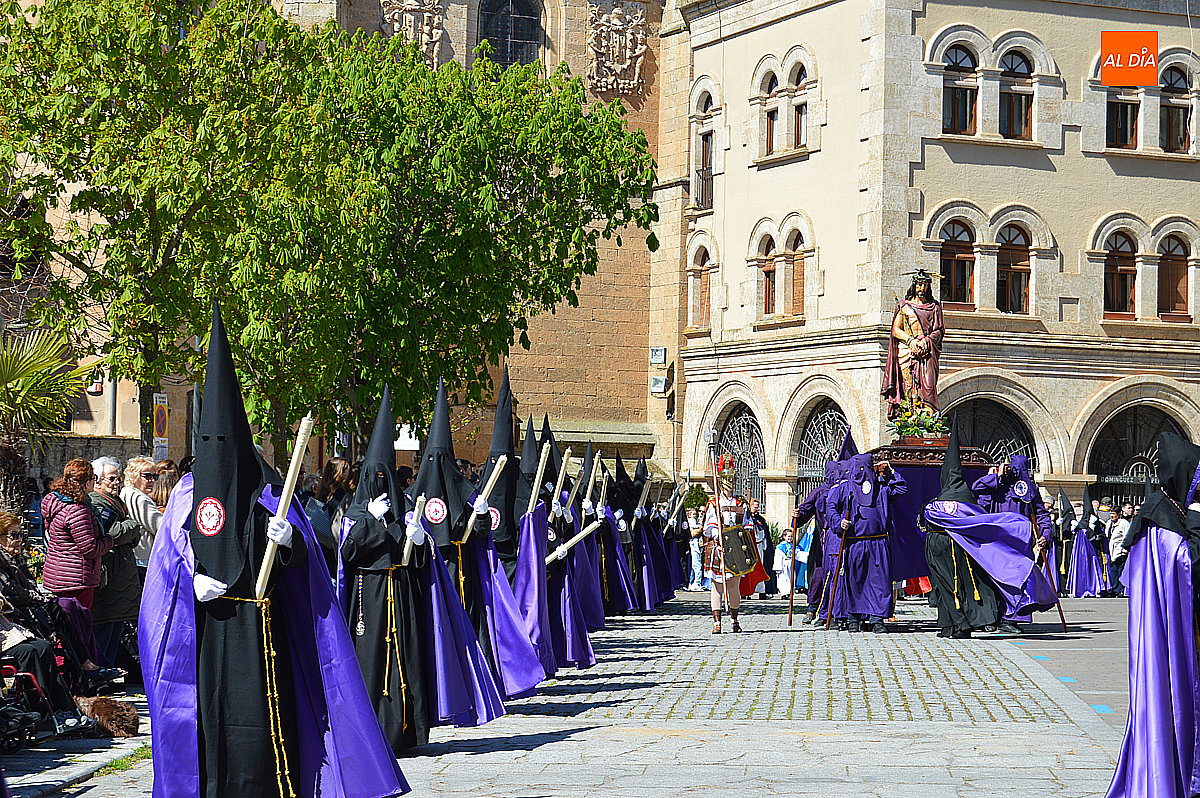 El cortejo recorrió el mismo itinerario que la Procesión de la Santa Cruz, mientras mirobrigenses y visitantes lo acompañaban en un ambiente de recogimiento, casi íntimo, donde cada instante adquiría un carácter solemne. Entre el sol primaveral y el sonido acompasado del desfile, la procesión avanzó hasta la Catedral de Santa María, donde encontró su final entre la quietud y la emoción compartida.