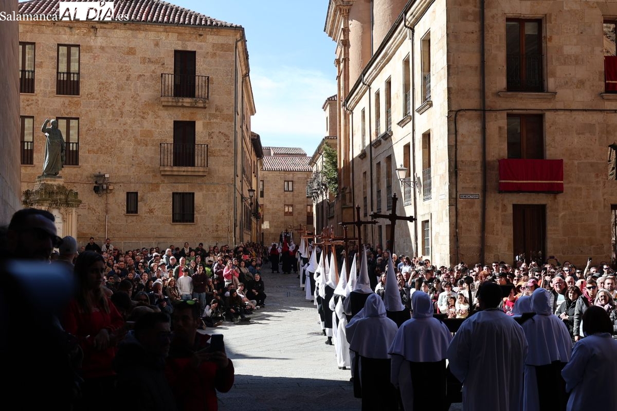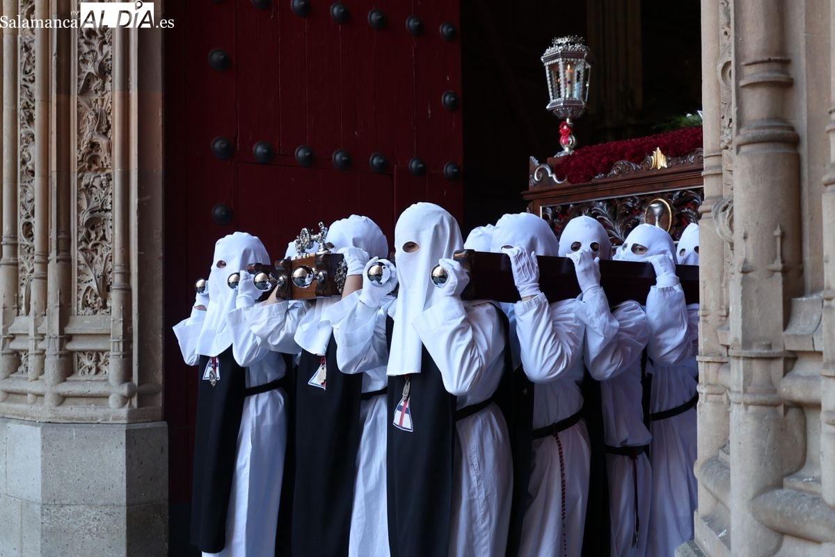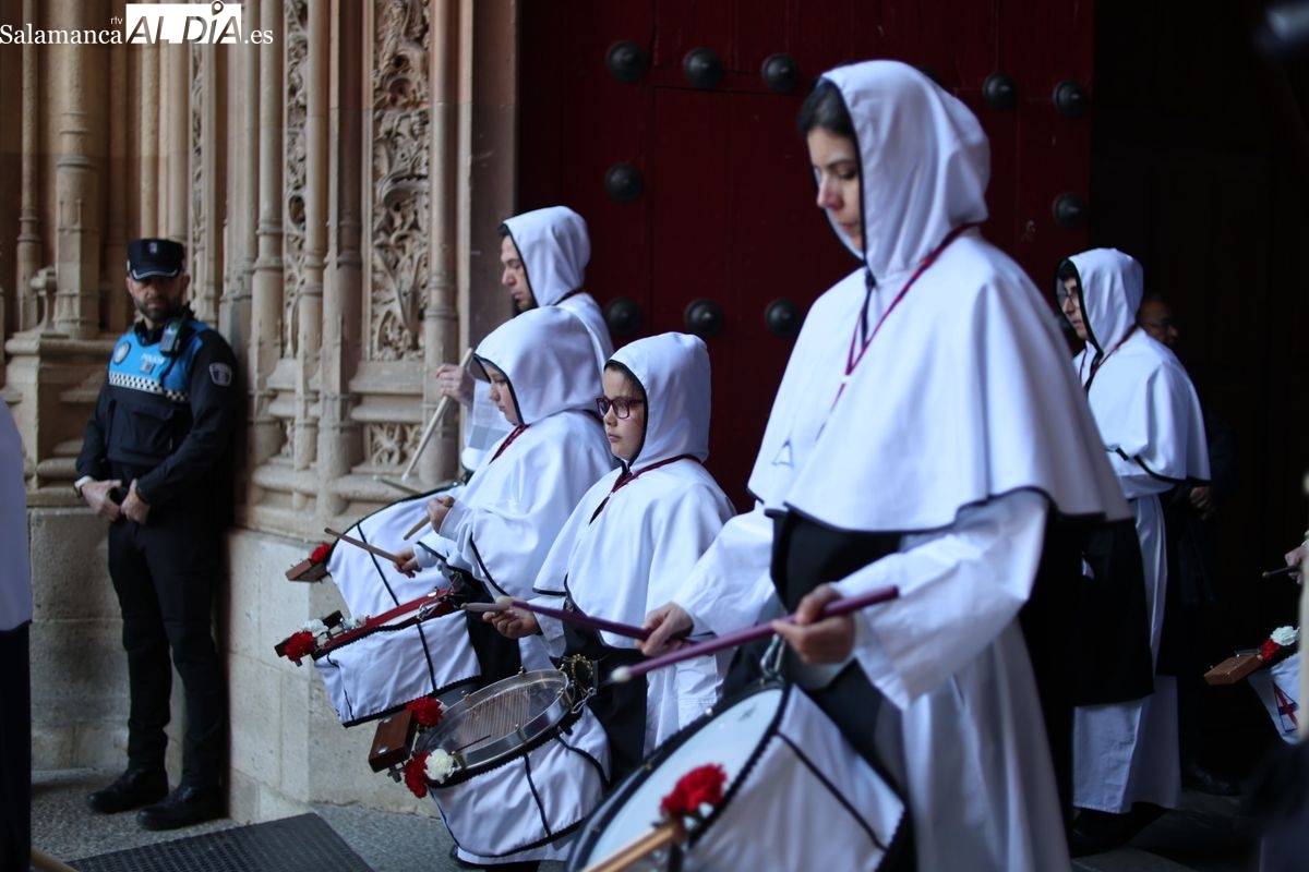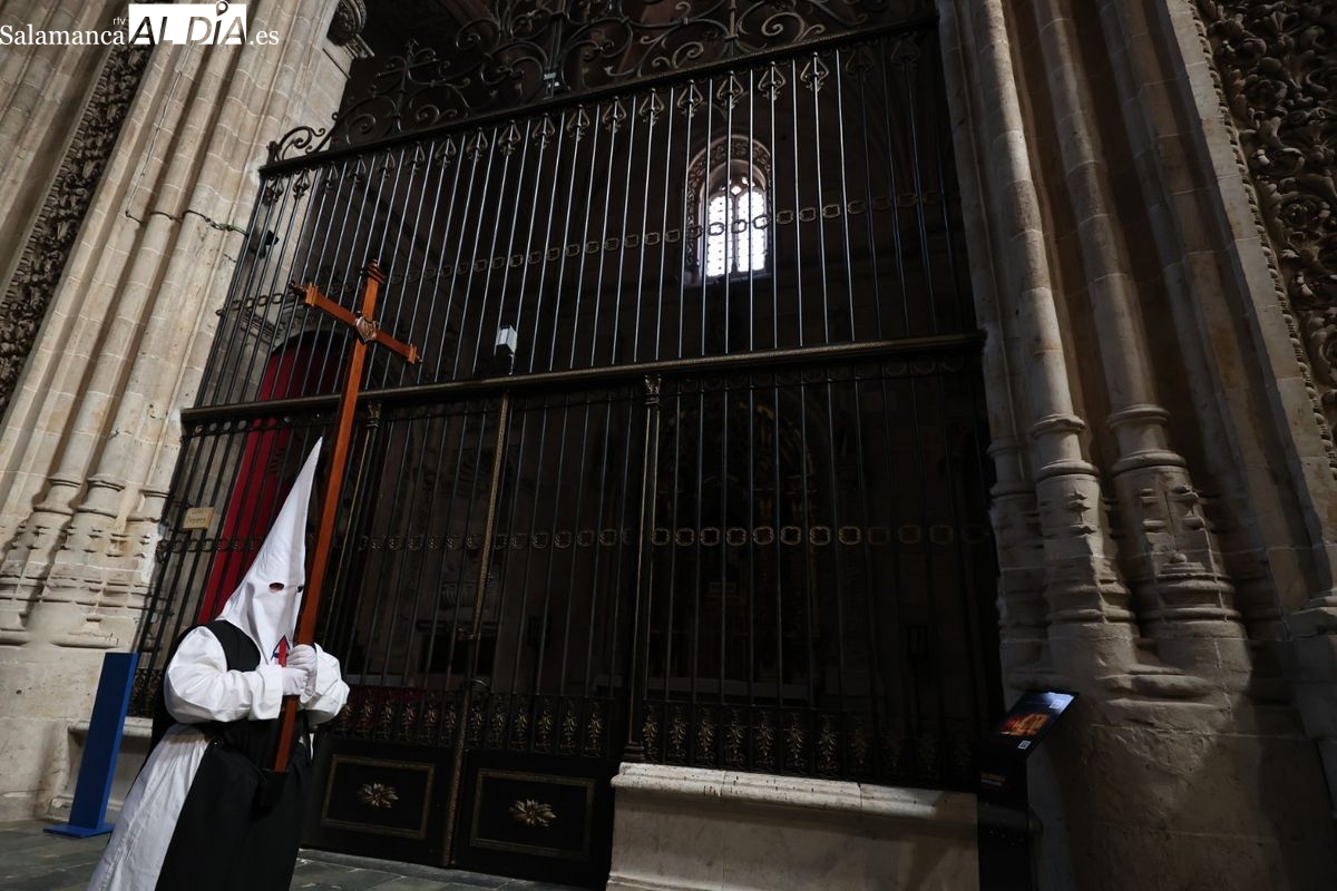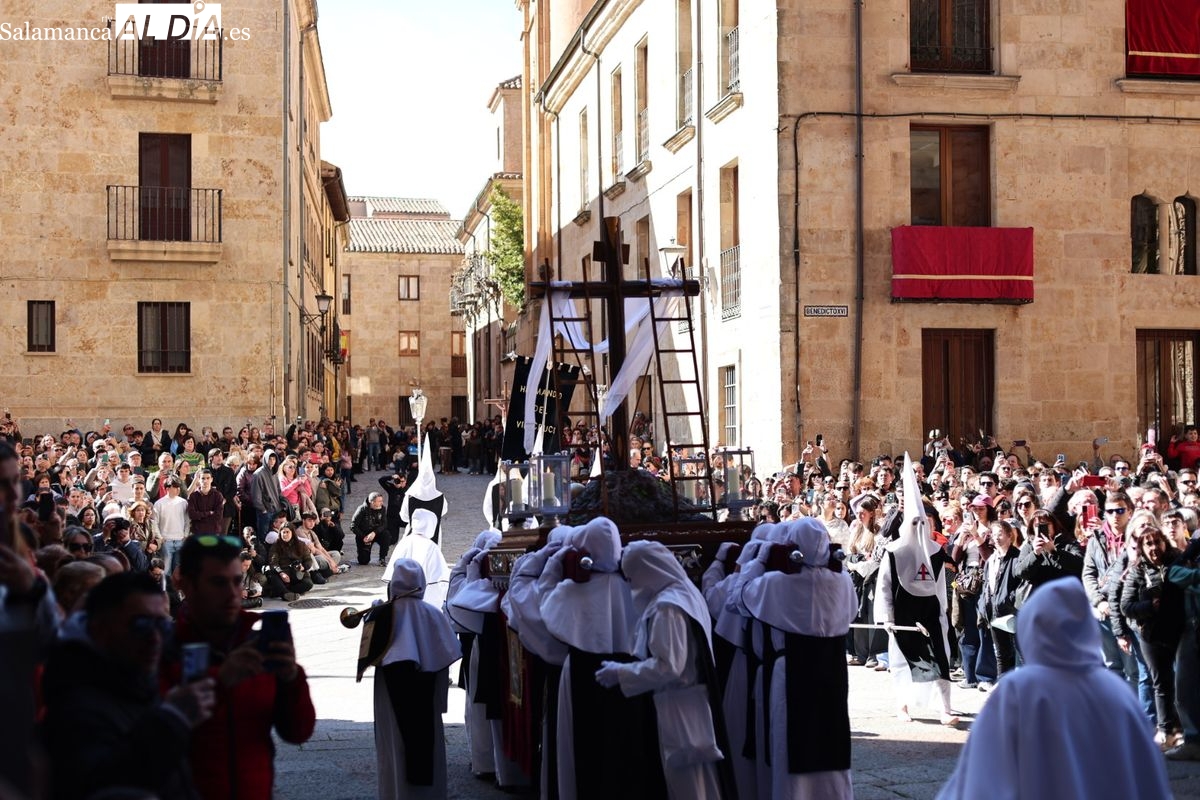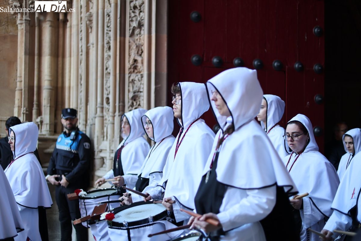 En la tarde de este Jueves Santo, la Hermandad de Nuestro Padre Jesús del Vía Crucis ha vuelto a recorrer las calles de la capitalsalmantina. La comitiva inició su marcha desde la Catedral, marcando el comienzo de un itinerario que tiene como destino final el barrio de San Bernardo, concretamente la parroquia de San Juan de Mata.