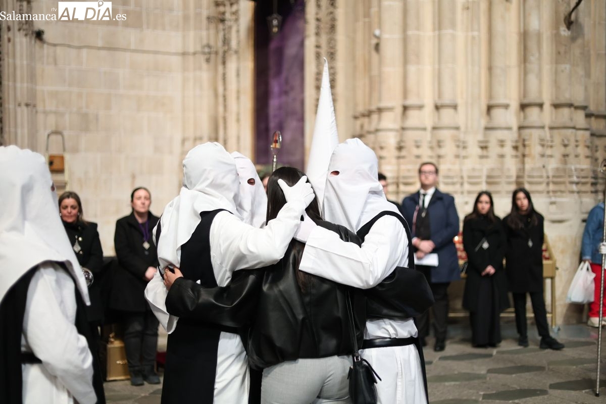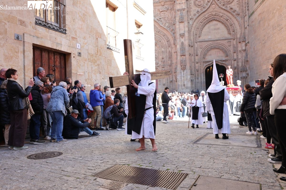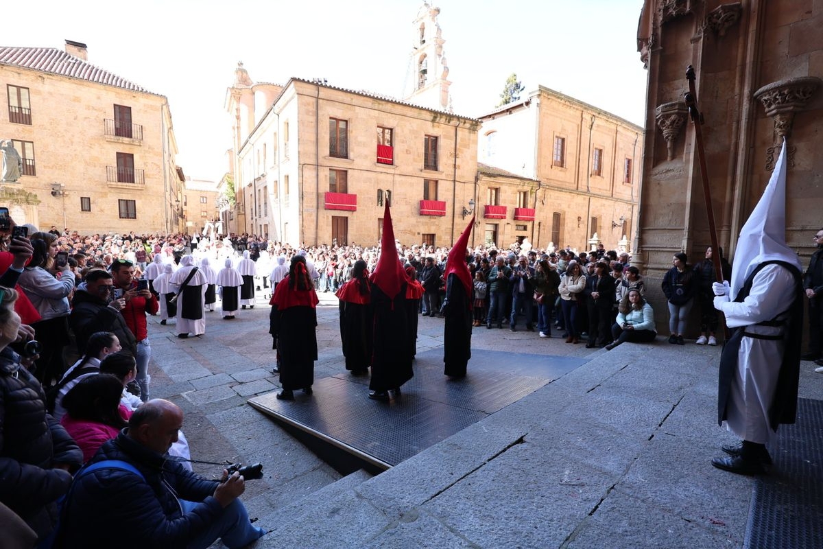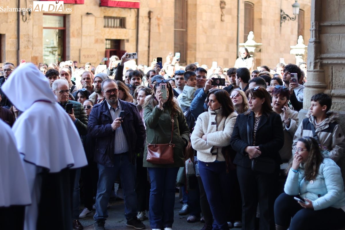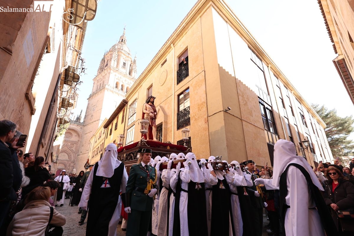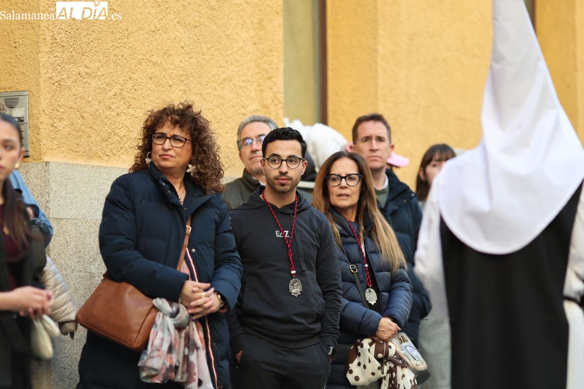 En la tarde de este Jueves Santo, la Hermandad de Nuestro Padre Jesús del Vía Crucis ha vuelto a recorrer las calles de la capitalsalmantina. La comitiva inició su marcha desde la Catedral, marcando el comienzo de un itinerario que tiene como destino final el barrio de San Bernardo, concretamente la parroquia de San Juan de Mata.