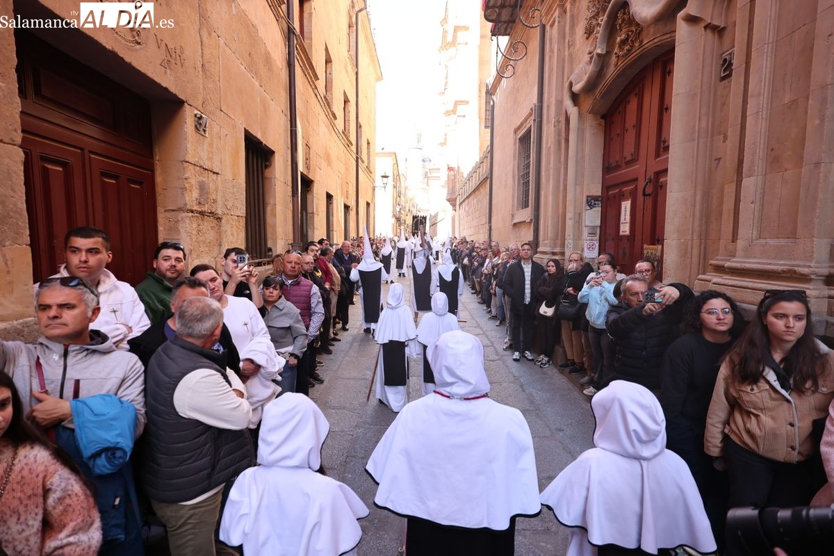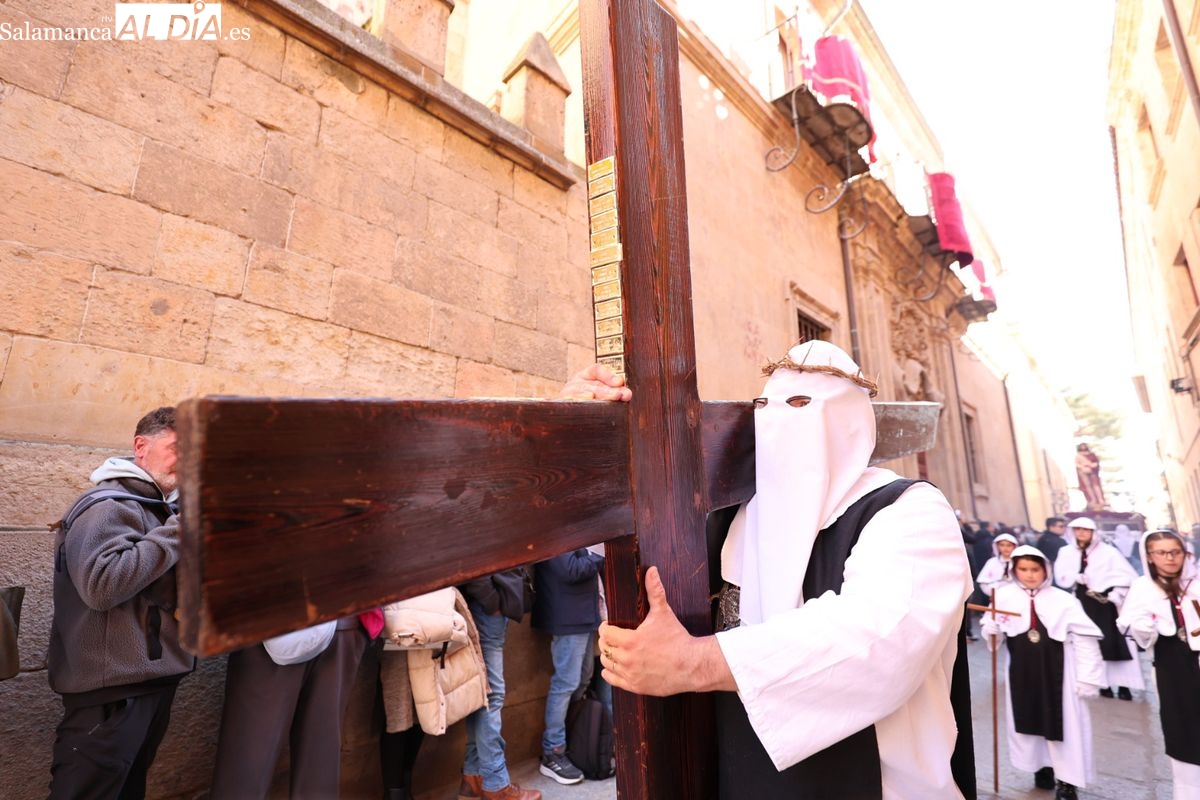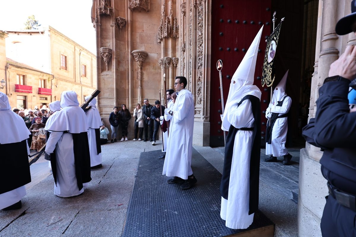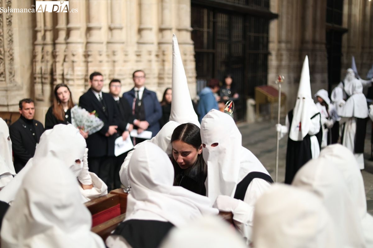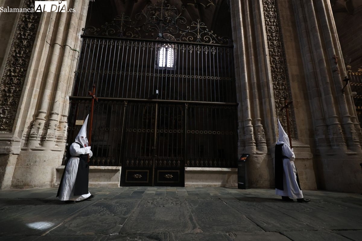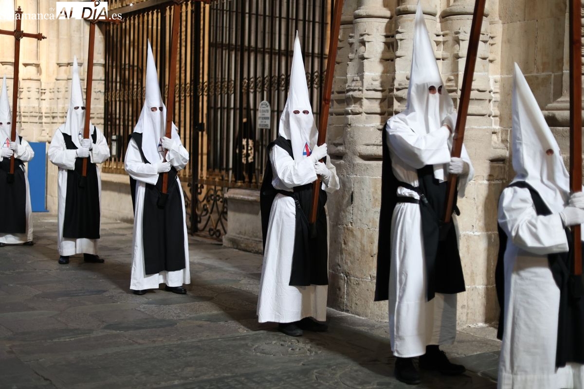 En la tarde de este Jueves Santo, la Hermandad de Nuestro Padre Jesús del Vía Crucis ha vuelto a recorrer las calles de la capitalsalmantina. La comitiva inició su marcha desde la Catedral, marcando el comienzo de un itinerario que tiene como destino final el barrio de San Bernardo, concretamente la parroquia de San Juan de Mata.
