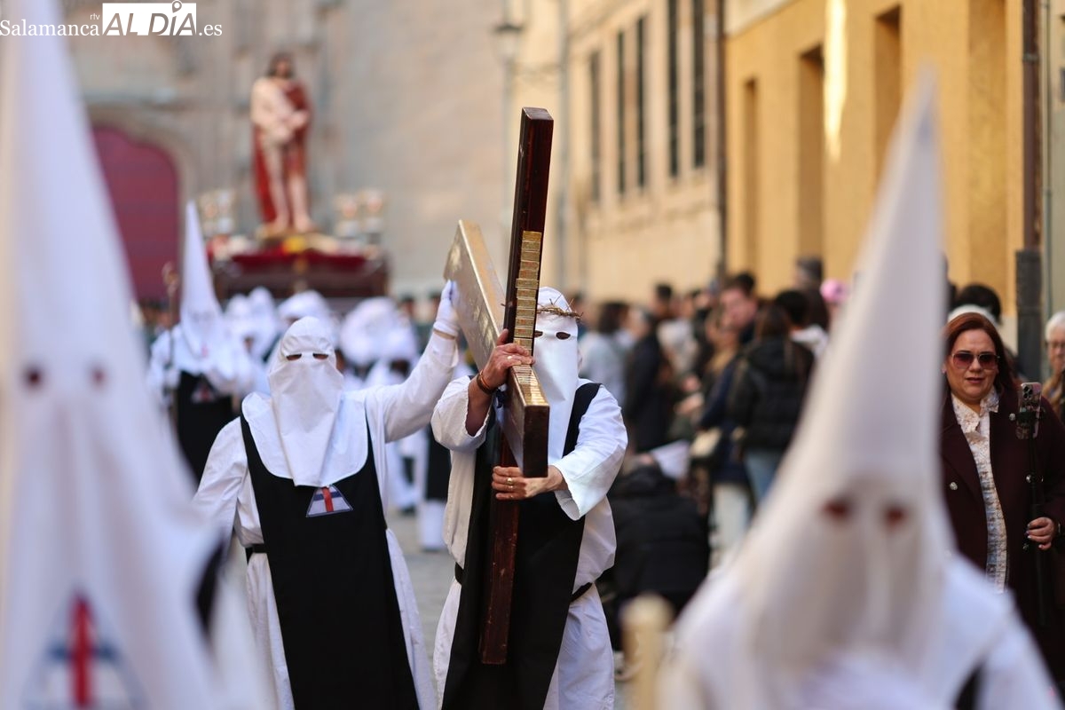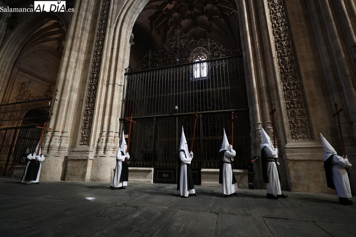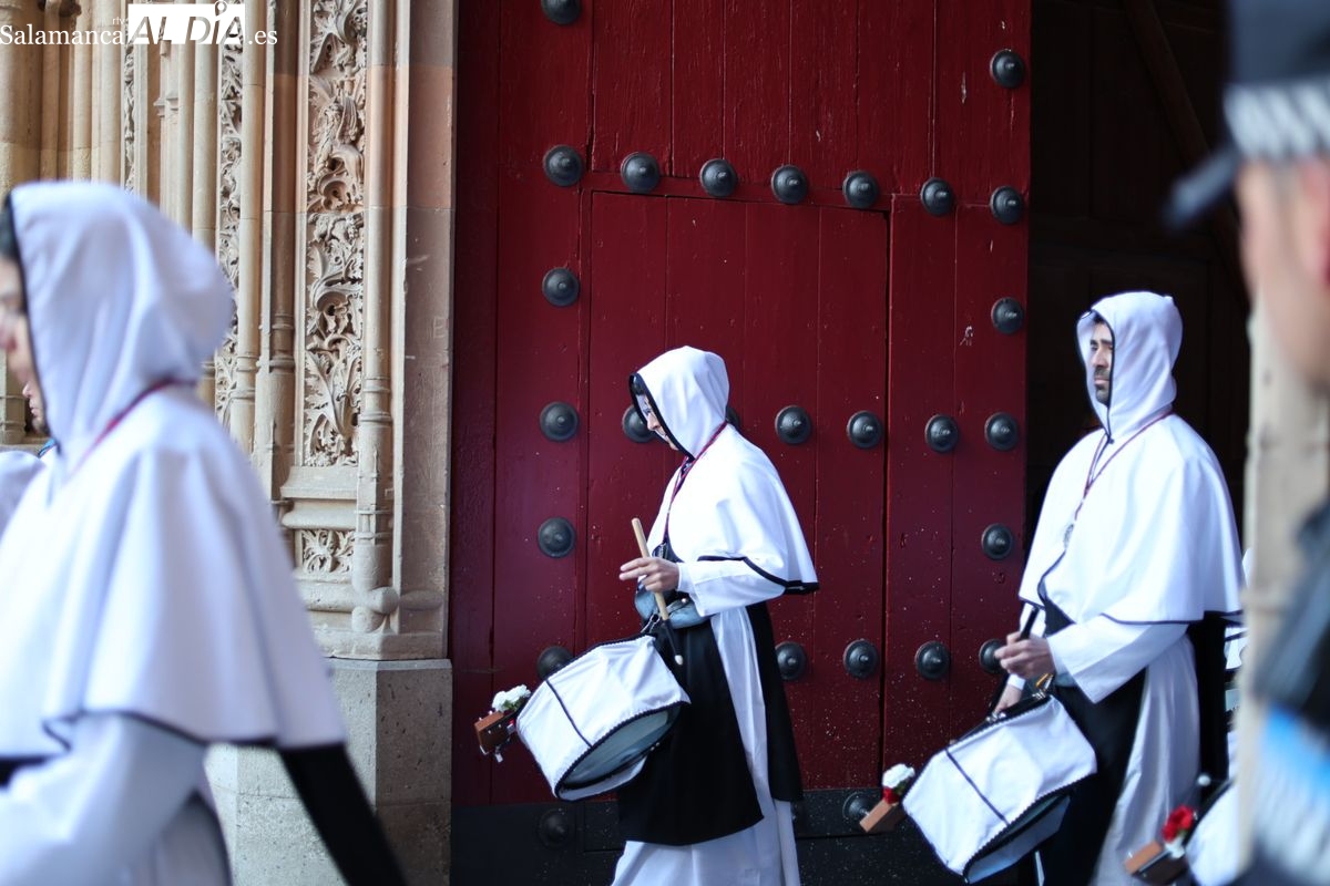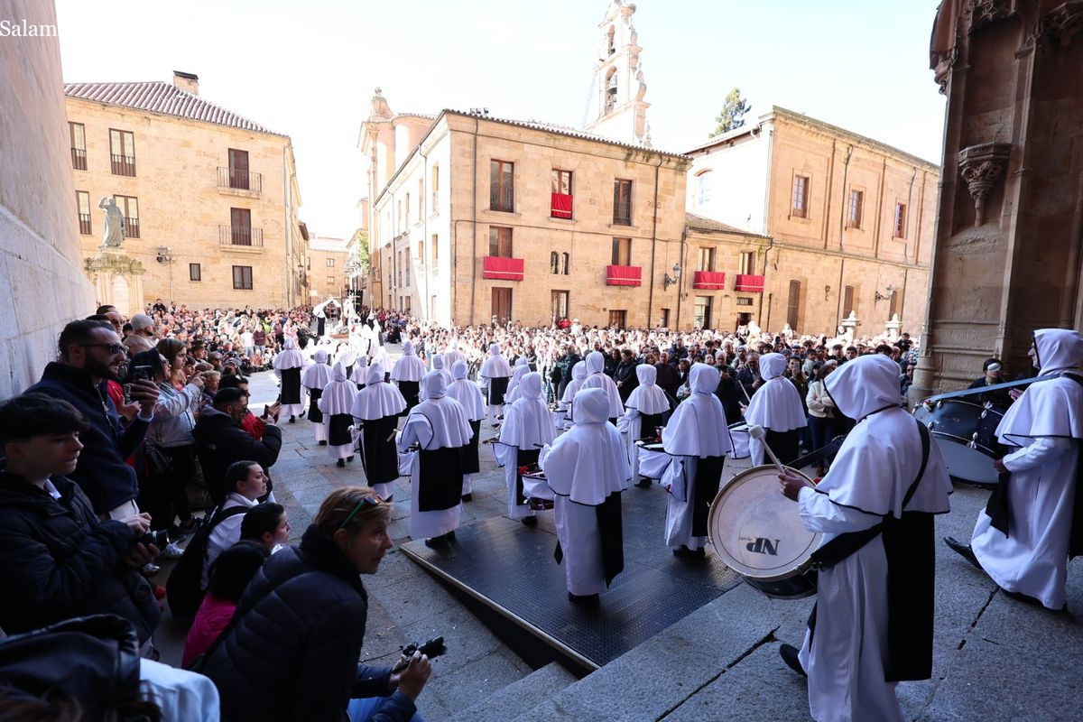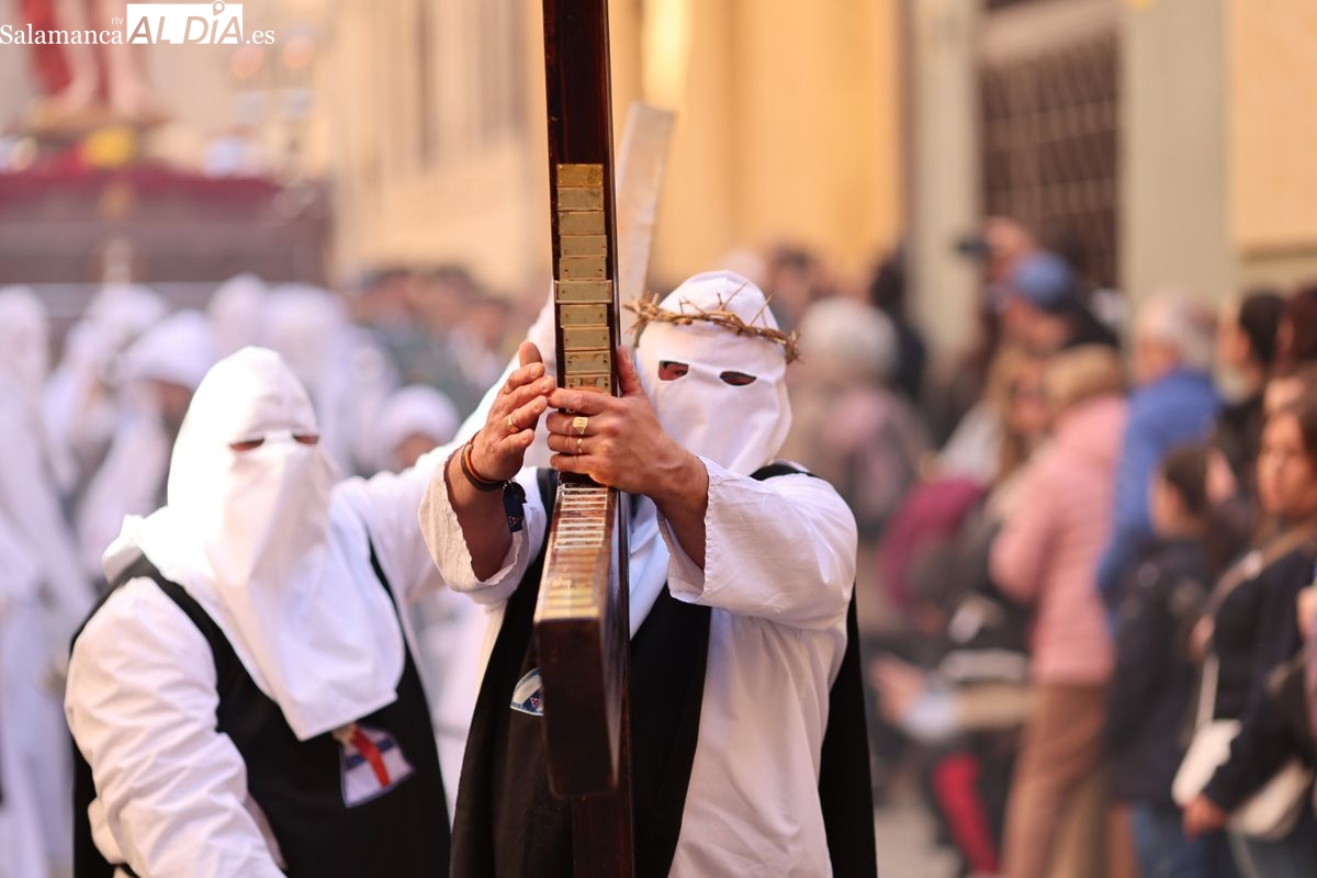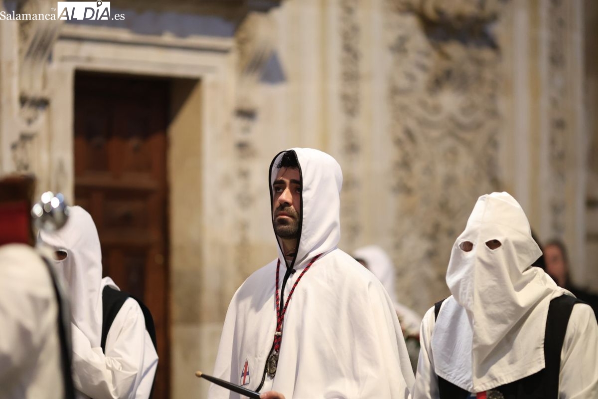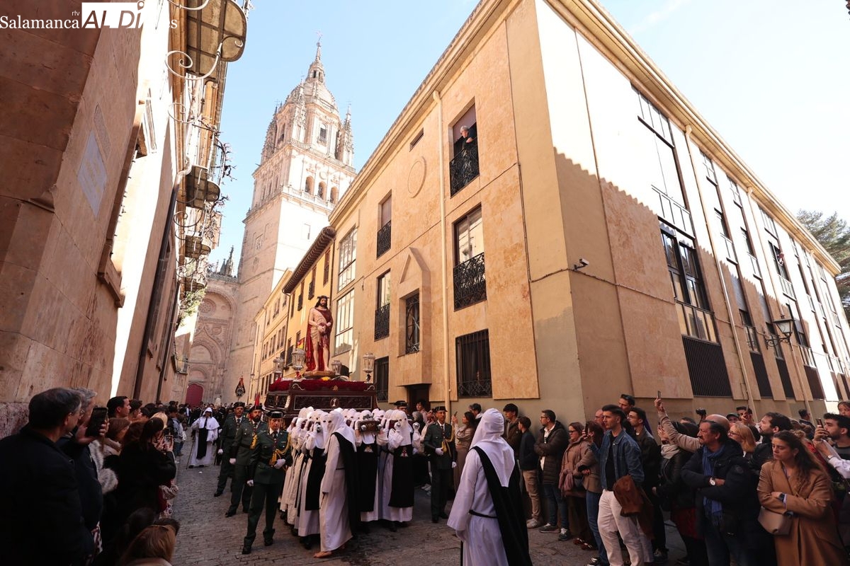 En la tarde de este Jueves Santo, la Hermandad de Nuestro Padre Jesús del Vía Crucis ha vuelto a recorrer las calles de la capitalsalmantina. La comitiva inició su marcha desde la Catedral, marcando el comienzo de un itinerario que tiene como destino final el barrio de San Bernardo, concretamente la parroquia de San Juan de Mata.