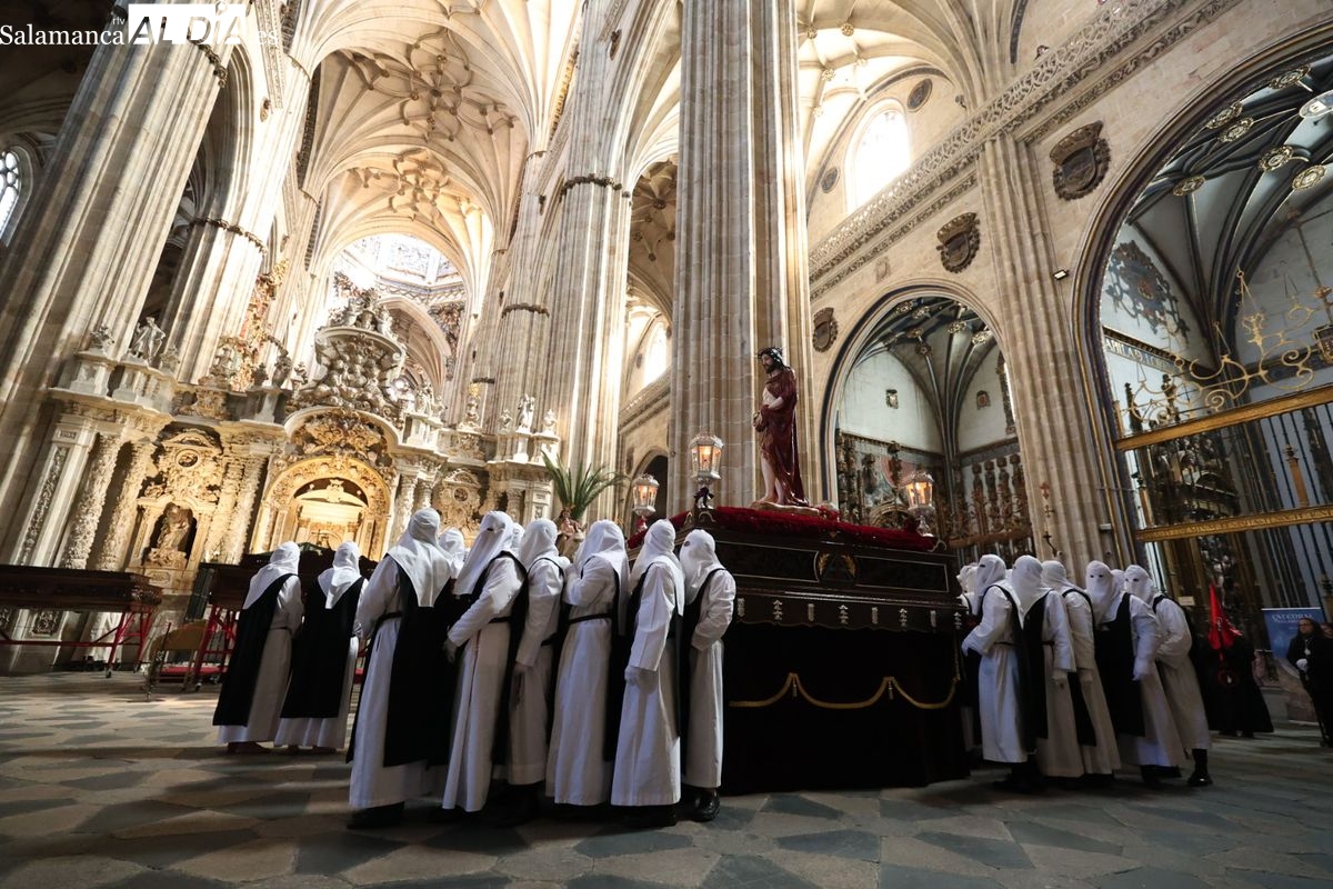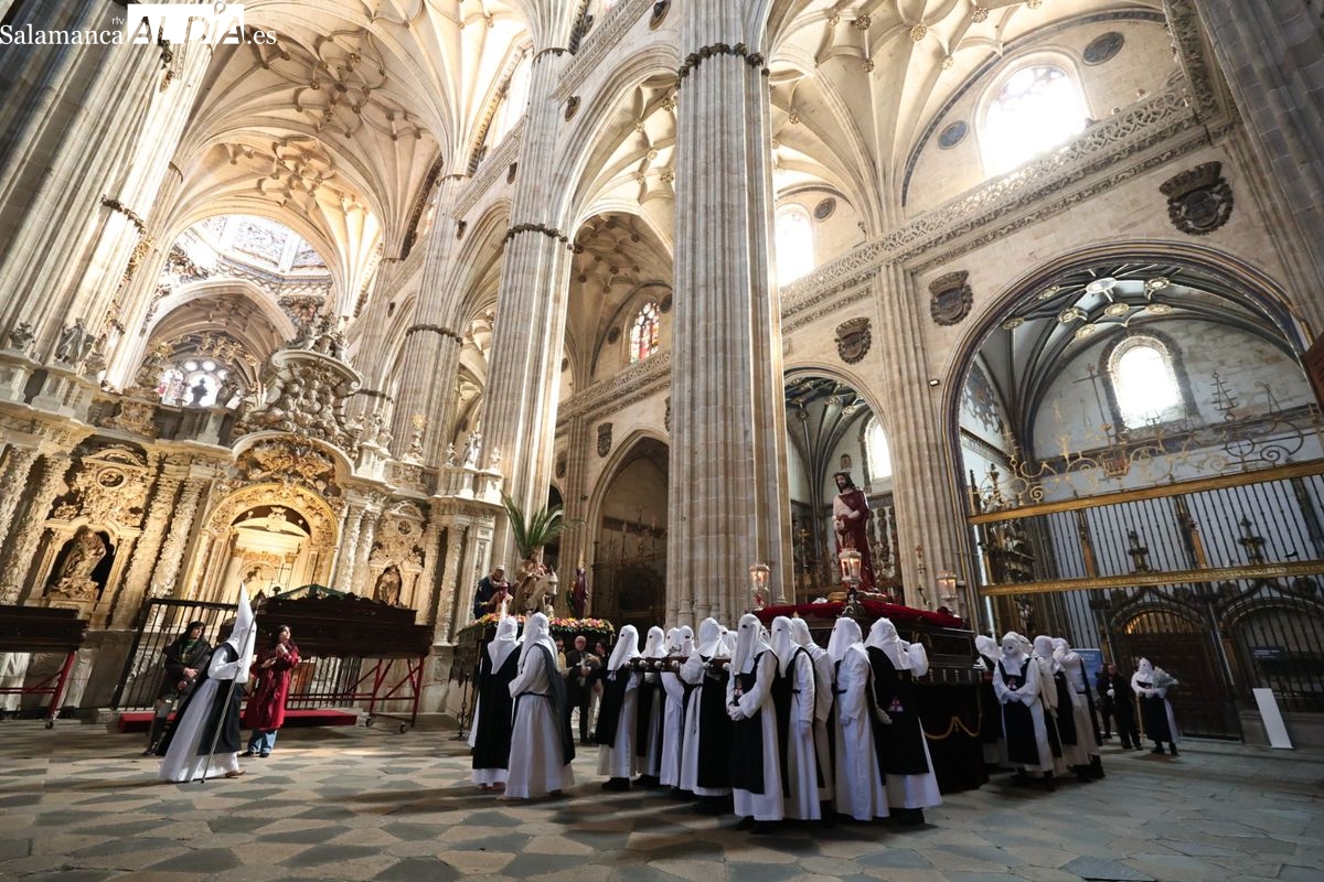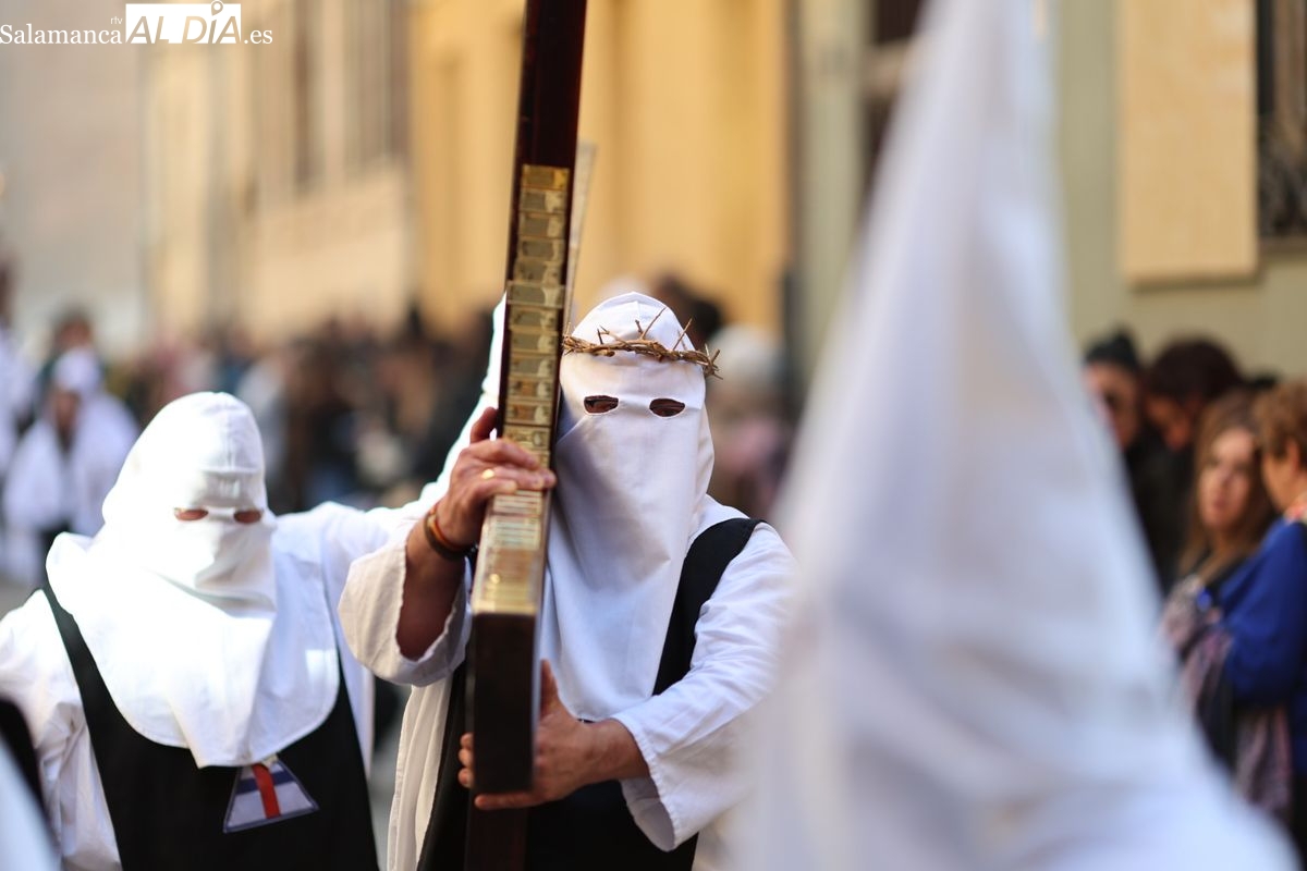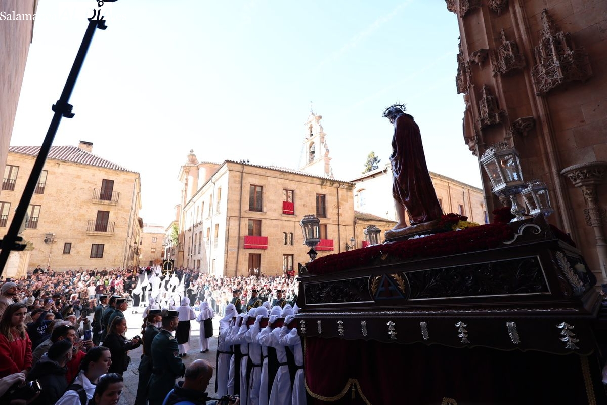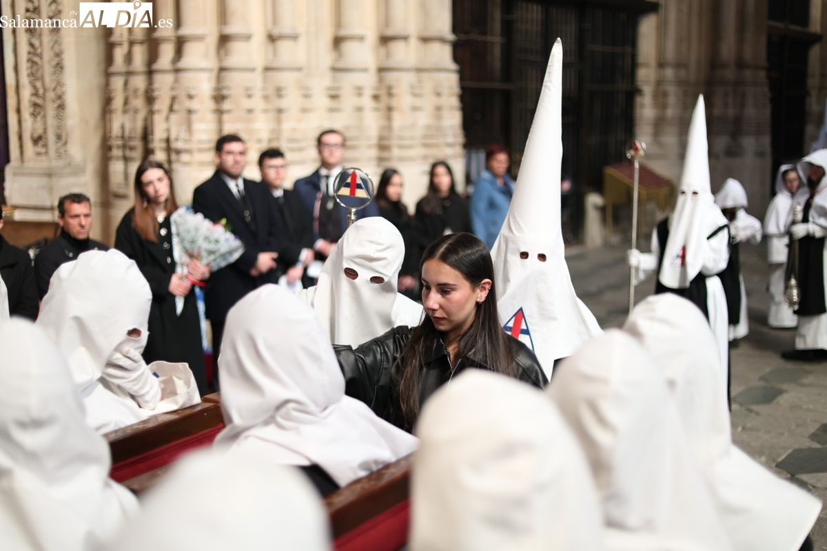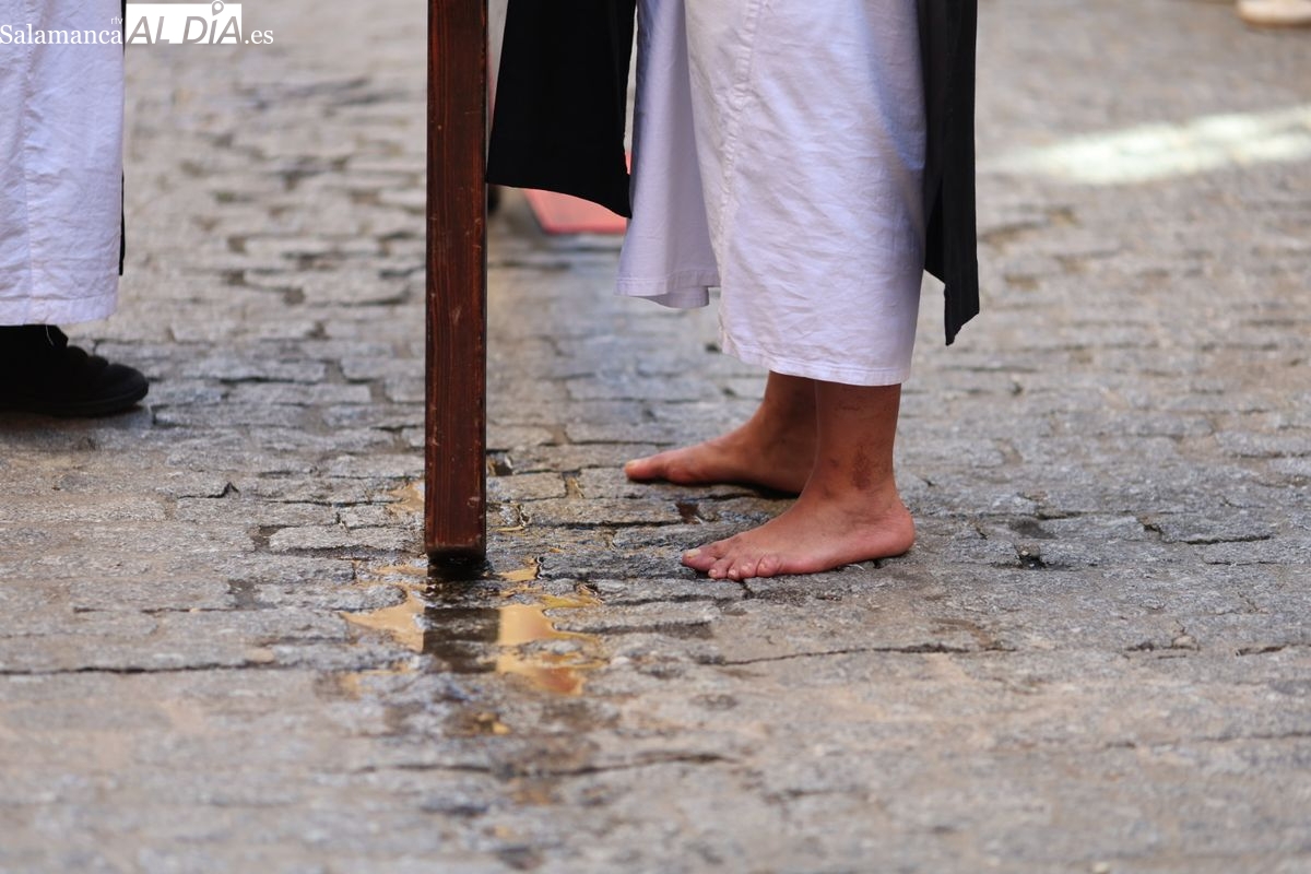 En la tarde de este Jueves Santo, la Hermandad de Nuestro Padre Jesús del Vía Crucis ha vuelto a recorrer las calles de la capitalsalmantina. La comitiva inició su marcha desde la Catedral, marcando el comienzo de un itinerario que tiene como destino final el barrio de San Bernardo, concretamente la parroquia de San Juan de Mata.