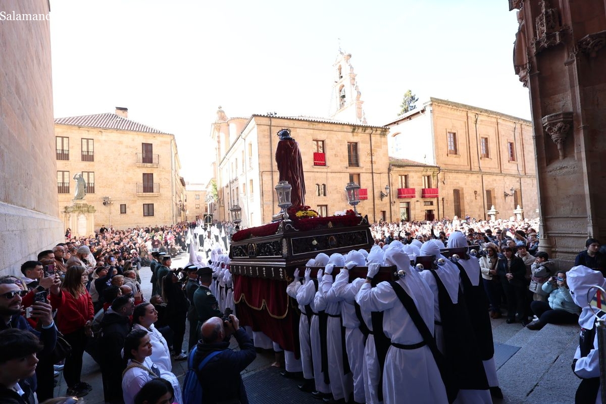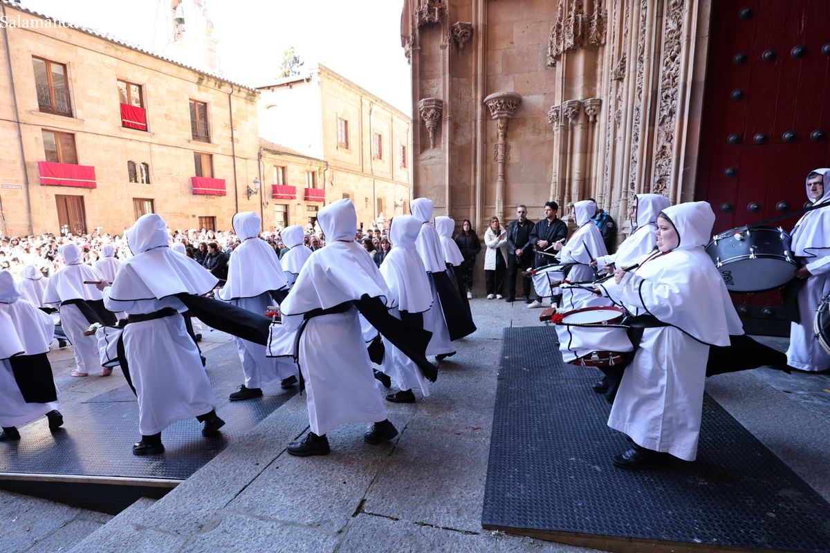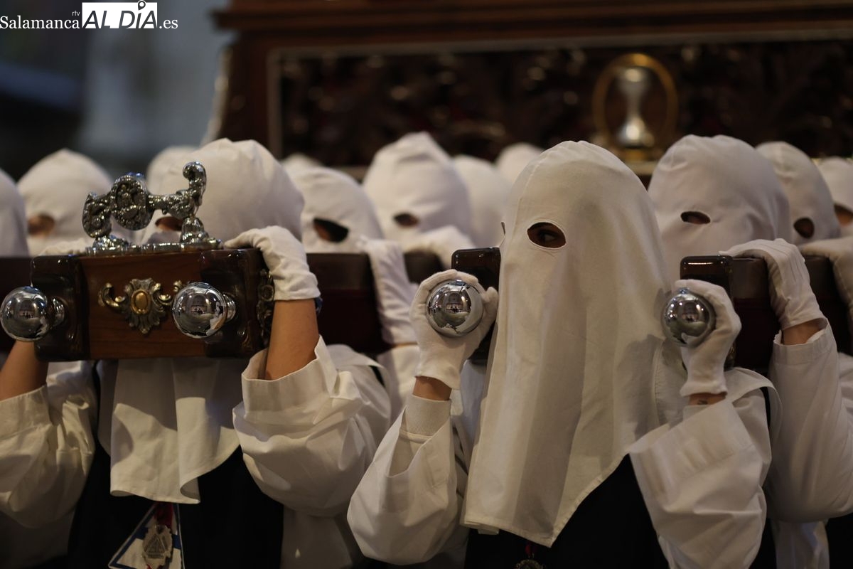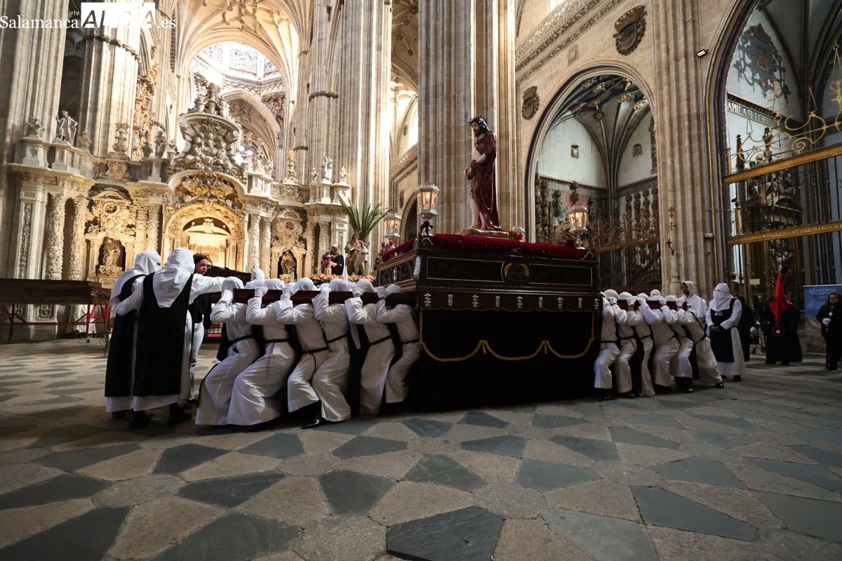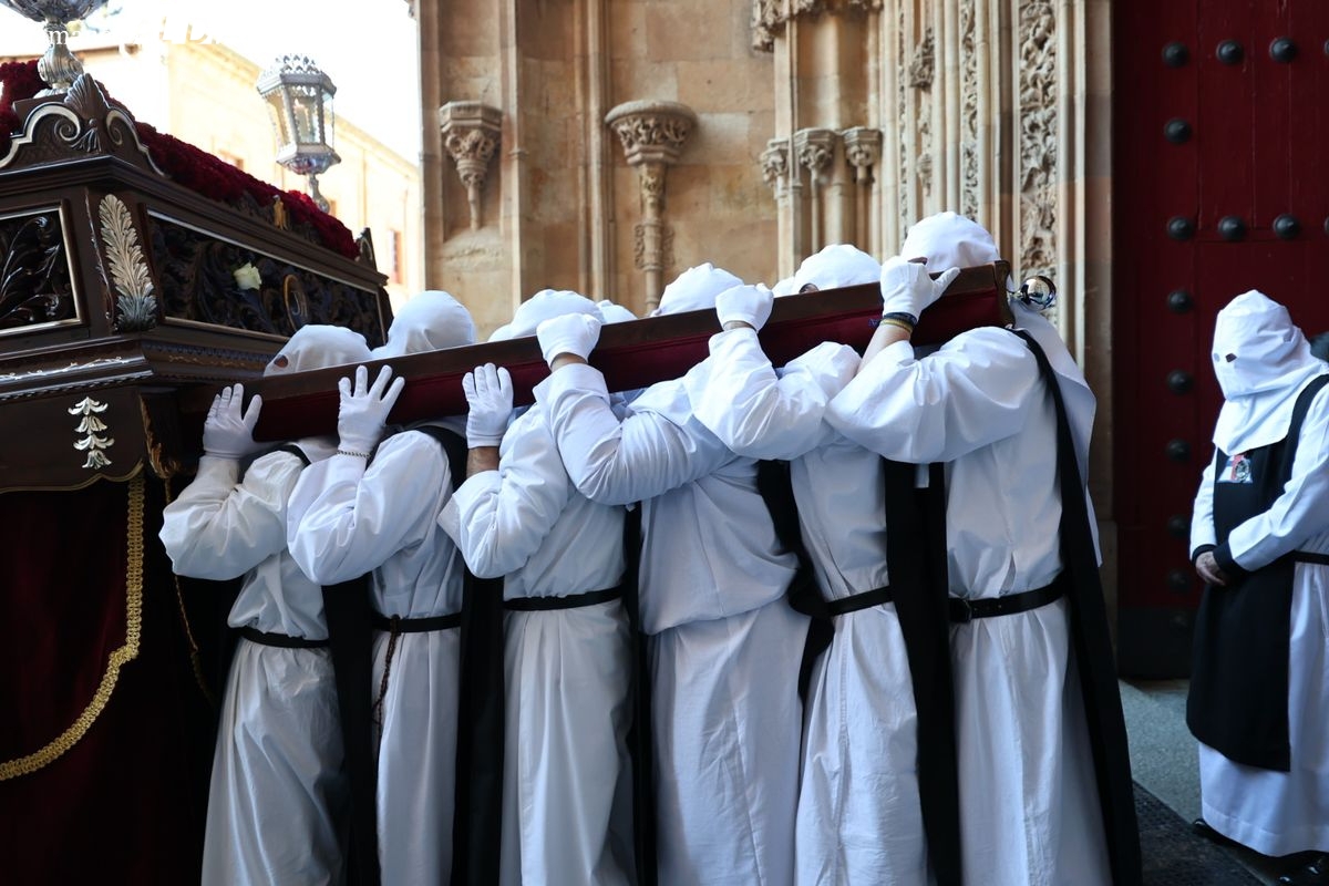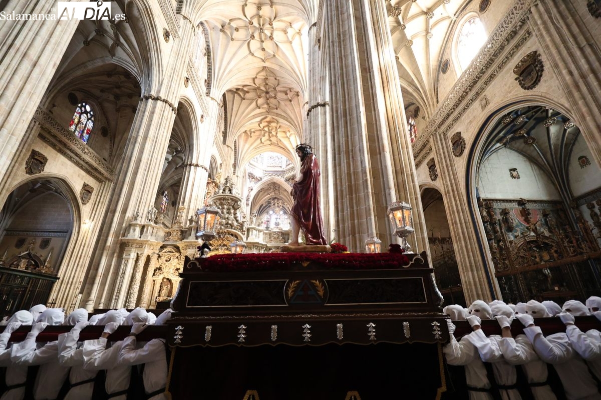 En la tarde de este Jueves Santo, la Hermandad de Nuestro Padre Jesús del Vía Crucis ha vuelto a recorrer las calles de la capitalsalmantina. La comitiva inició su marcha desde la Catedral, marcando el comienzo de un itinerario que tiene como destino final el barrio de San Bernardo, concretamente la parroquia de San Juan de Mata.