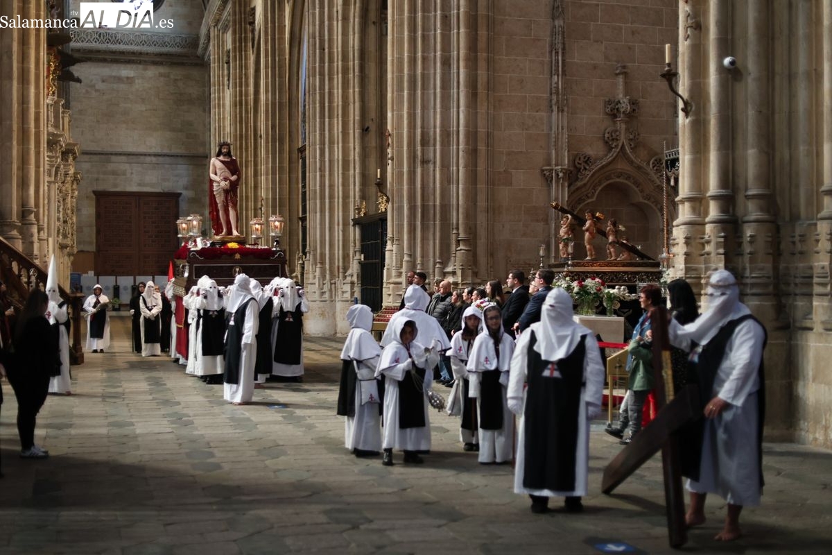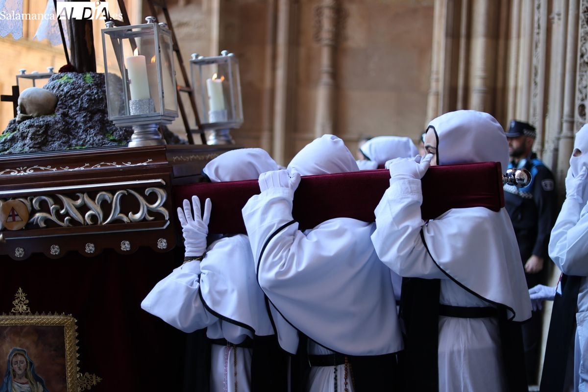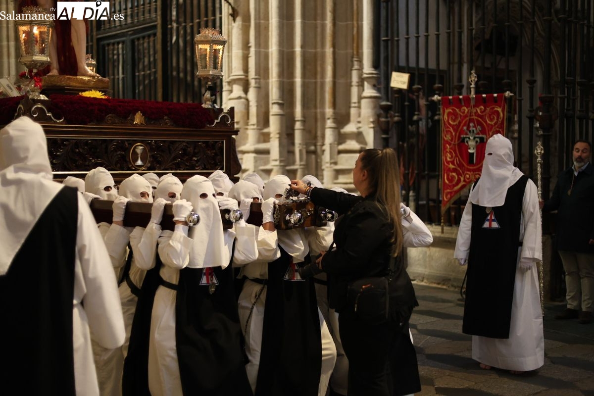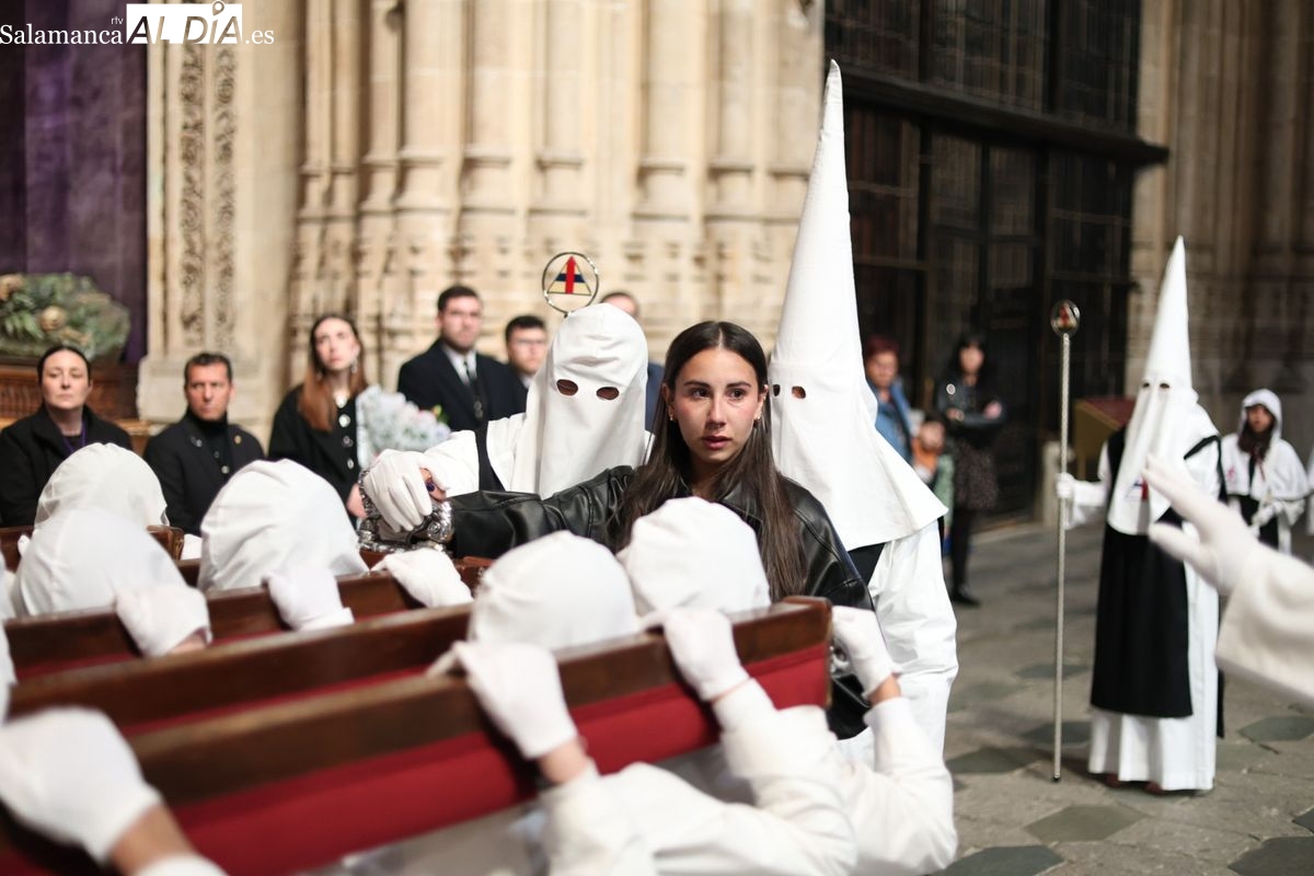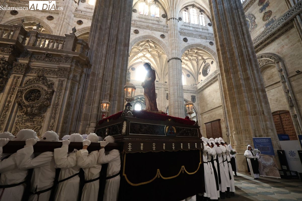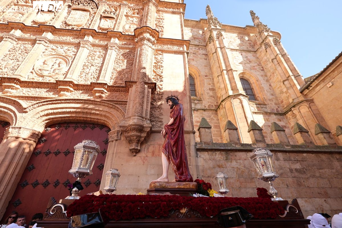En la tarde de este Jueves Santo, la Hermandad de Nuestro Padre Jesús del Vía Crucis ha vuelto a recorrer las calles de la capitalsalmantina. La comitiva inició su marcha desde la Catedral, marcando el comienzo de un itinerario que tiene como destino final el barrio de San Bernardo, concretamente la parroquia de San Juan de Mata.