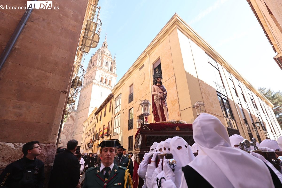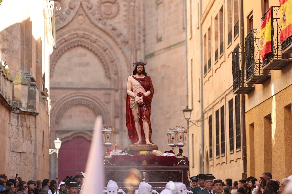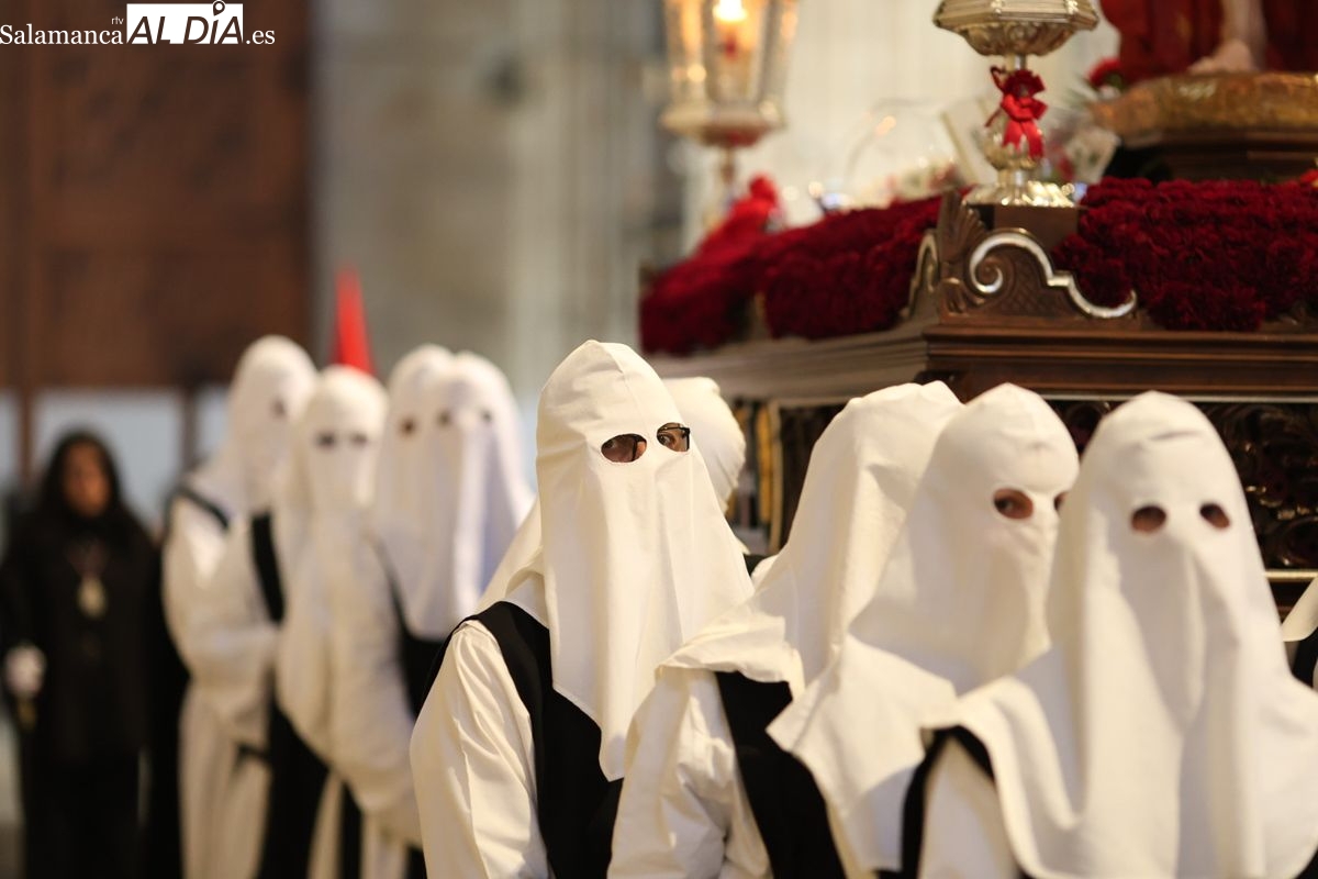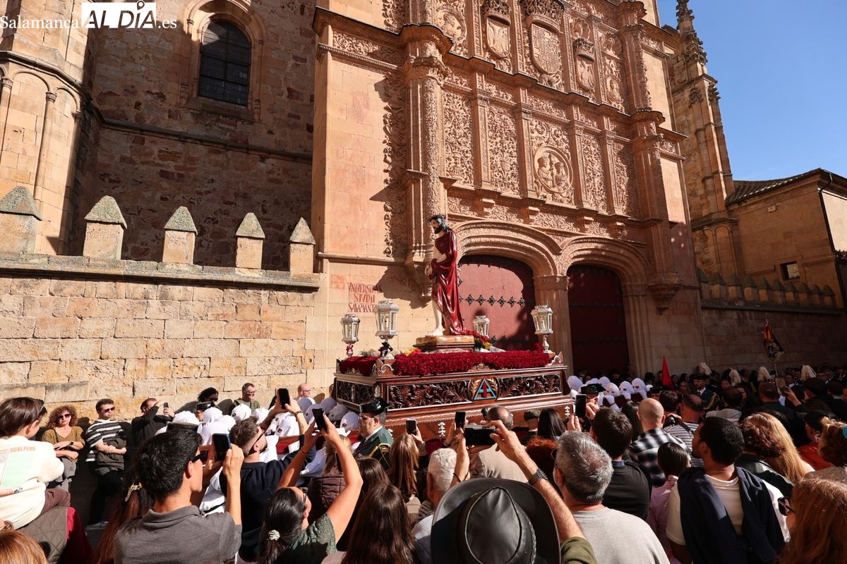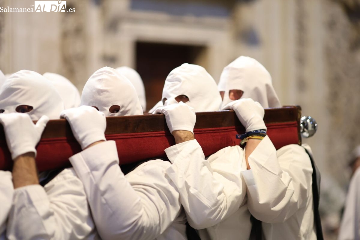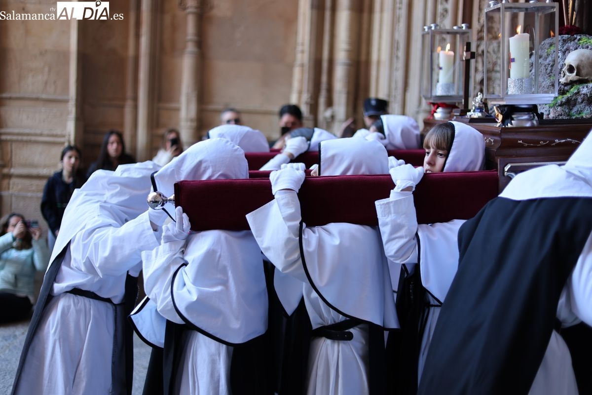 En la tarde de este Jueves Santo, la Hermandad de Nuestro Padre Jesús del Vía Crucis ha vuelto a recorrer las calles de la capitalsalmantina. La comitiva inició su marcha desde la Catedral, marcando el comienzo de un itinerario que tiene como destino final el barrio de San Bernardo, concretamente la parroquia de San Juan de Mata.