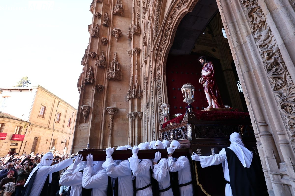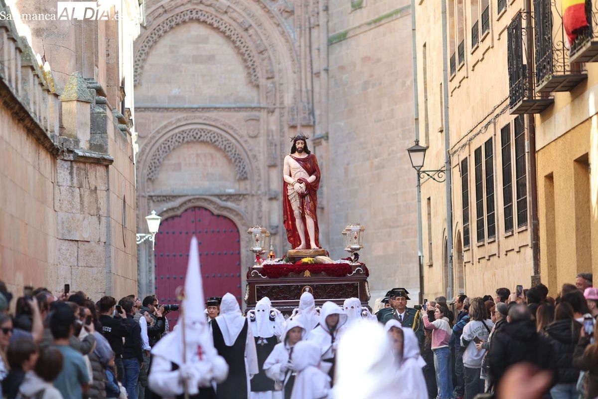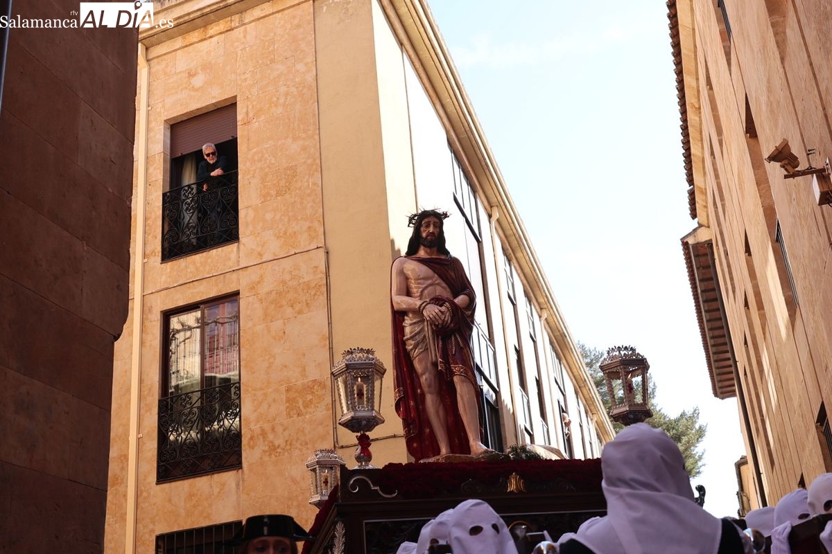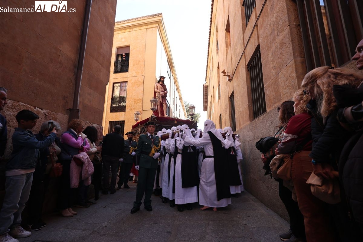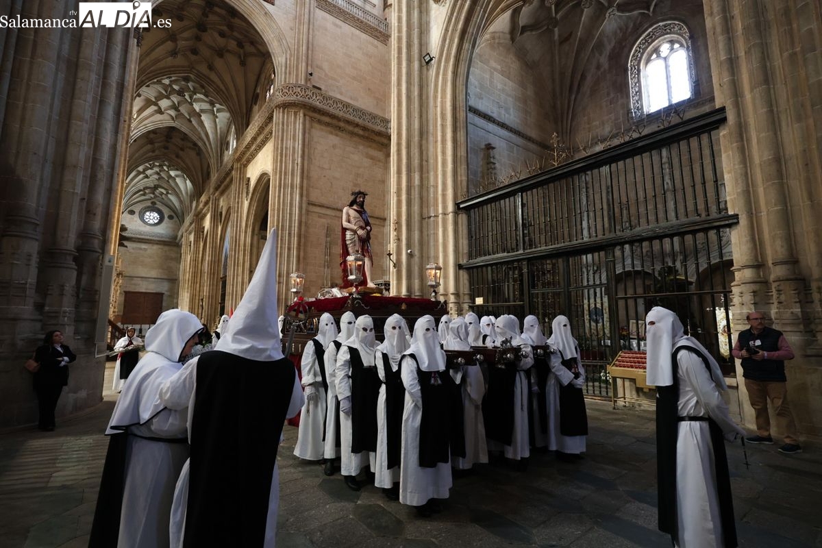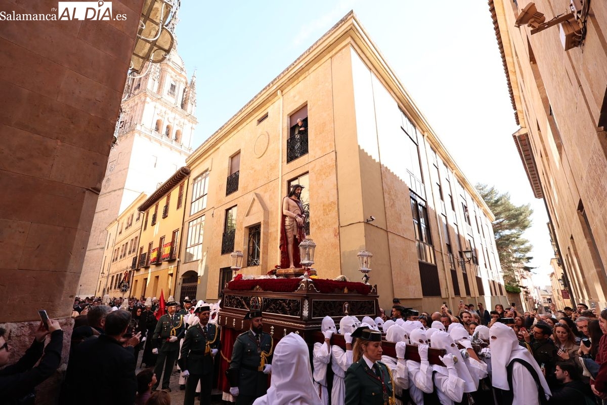 En la tarde de este Jueves Santo, la Hermandad de Nuestro Padre Jesús del Vía Crucis ha vuelto a recorrer las calles de la capitalsalmantina. La comitiva inició su marcha desde la Catedral, marcando el comienzo de un itinerario que tiene como destino final el barrio de San Bernardo, concretamente la parroquia de San Juan de Mata.