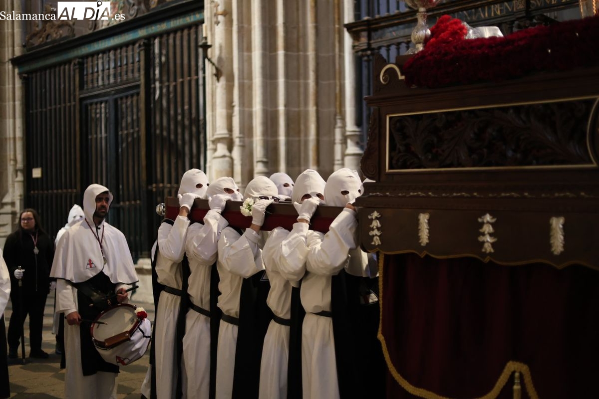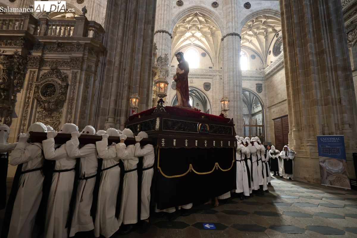 La cofradía ha iniciado su recorrido desde la Catedral para dirigirse a su sede en la parroquia de San Juan de Mata