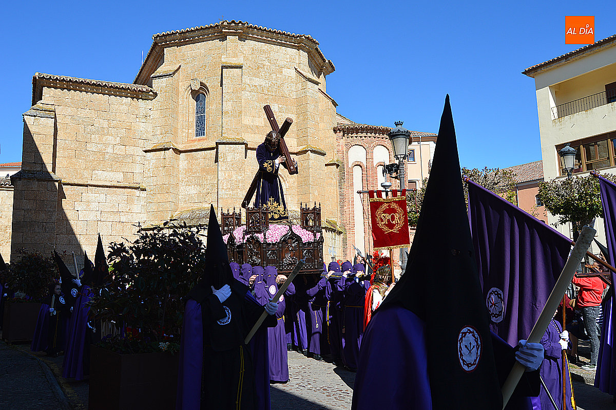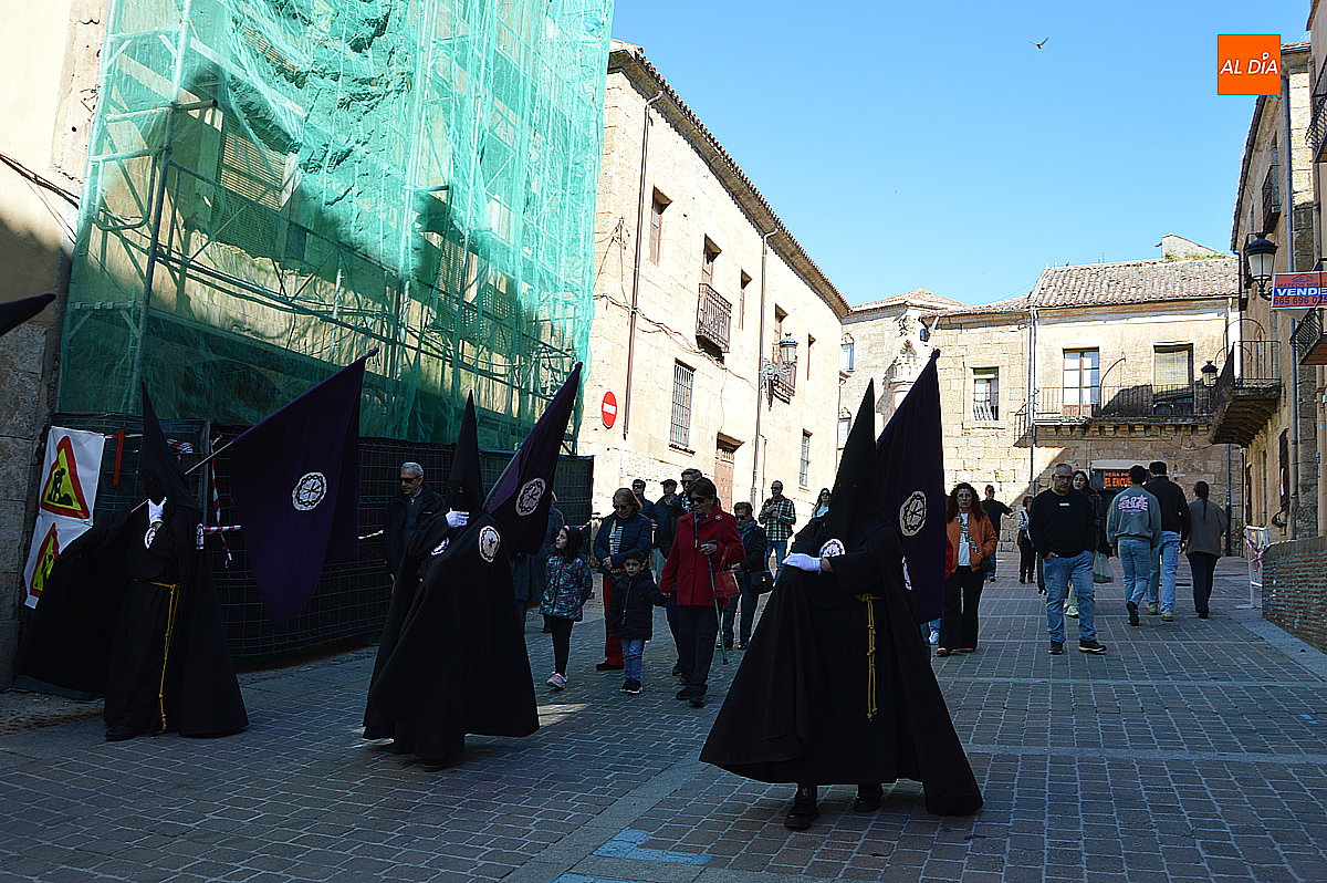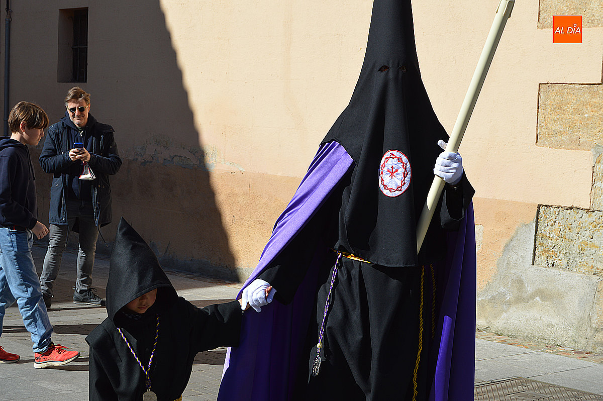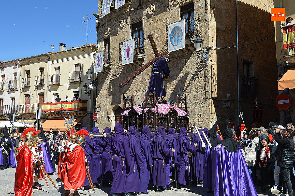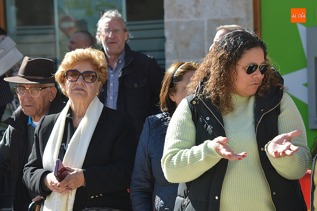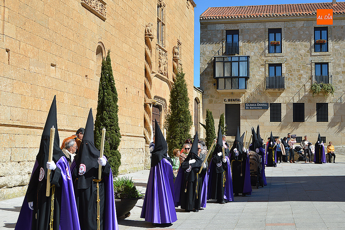 La Procesión del Santo Encuentro ha congregado a cientos de personas en la Plaza Mayor de Ciudad Rodrigo durante la mañana del Viernes Santo. Las imágenes del Cristo cargando la Cruz y La Dolorosa, de la Cofradía de Jesús Nazareno, han protagonizado este emotivo acto central antes de regresar juntas a la Catedral.