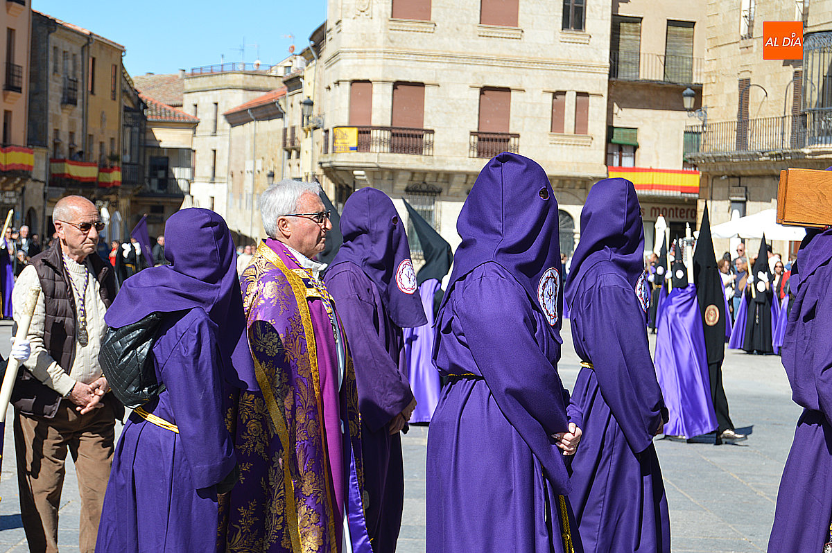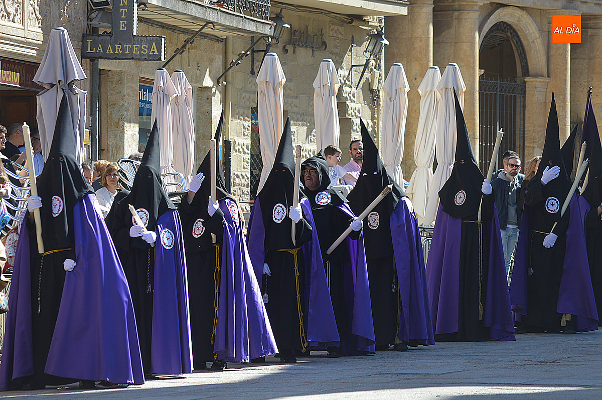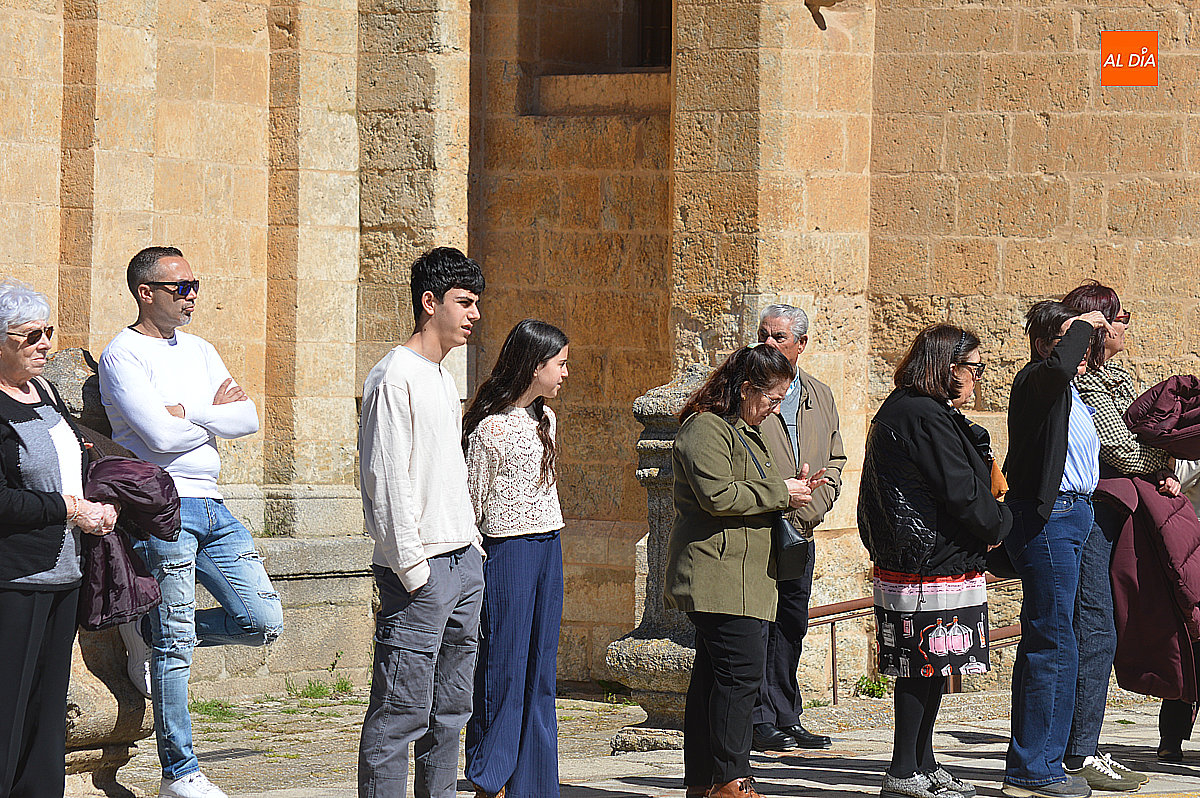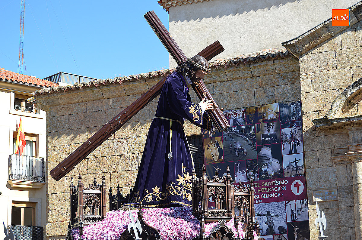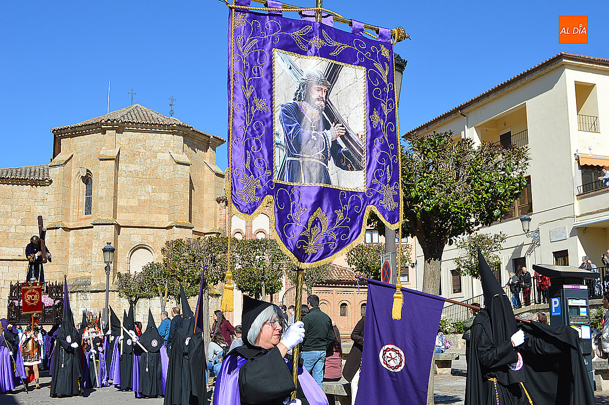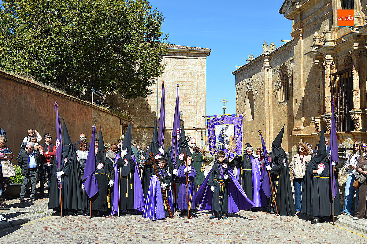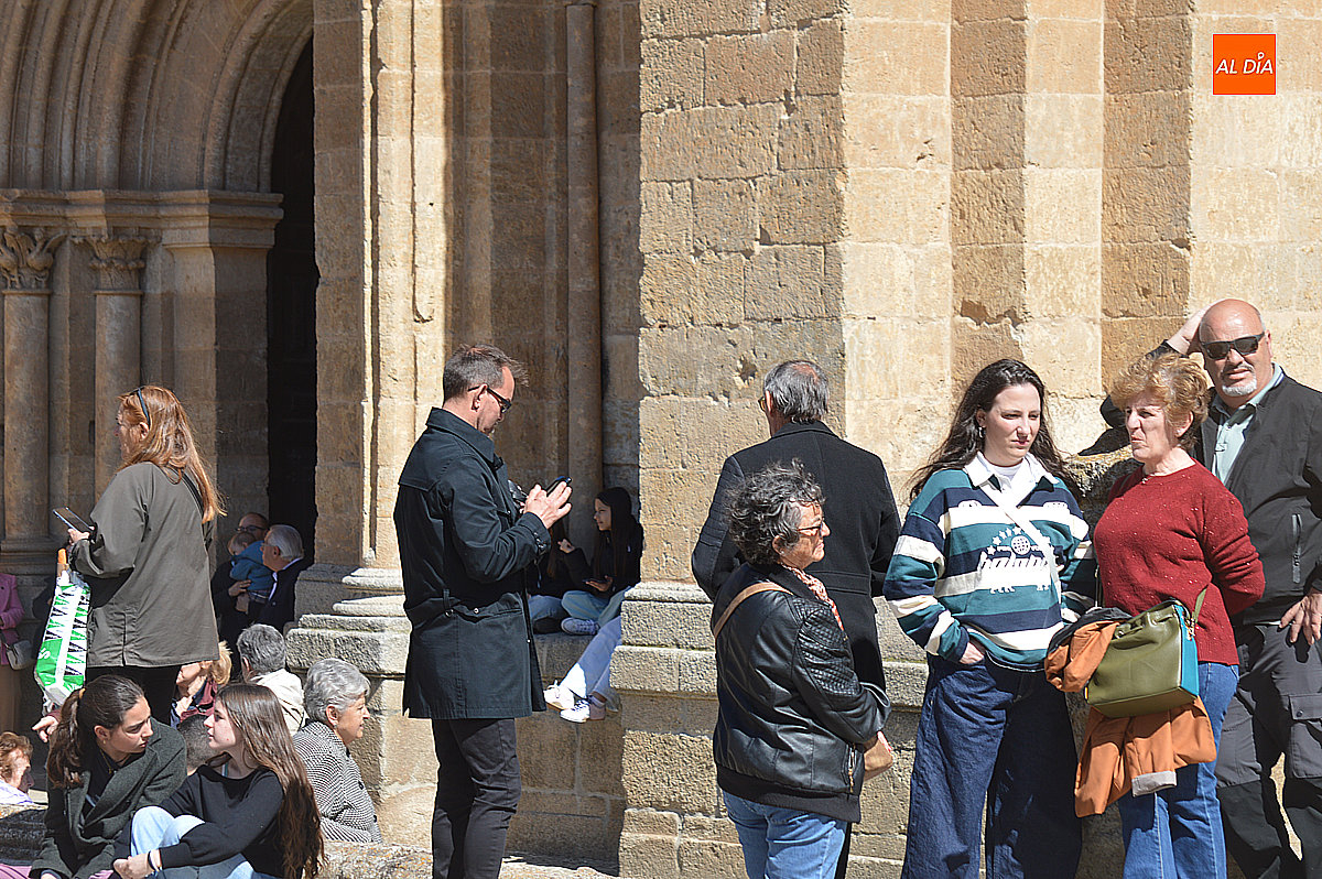 La Procesión del Santo Encuentro ha congregado a cientos de personas en la Plaza Mayor de Ciudad Rodrigo durante la mañana del Viernes Santo. Las imágenes del Cristo cargando la Cruz y La Dolorosa, de la Cofradía de Jesús Nazareno, han protagonizado este emotivo acto central antes de regresar juntas a la Catedral.