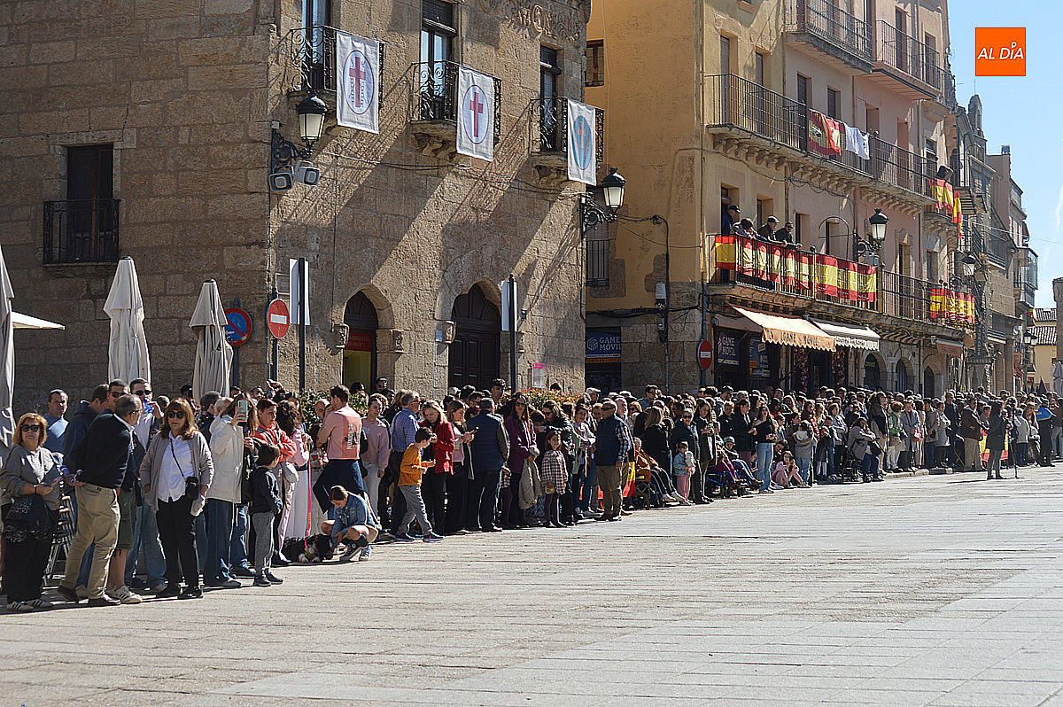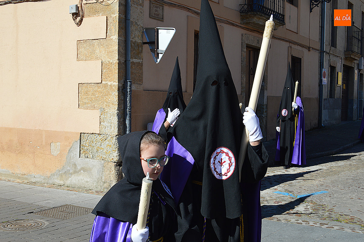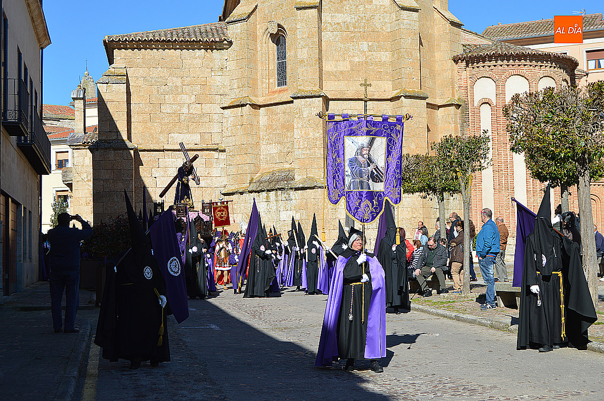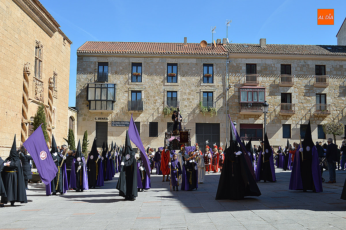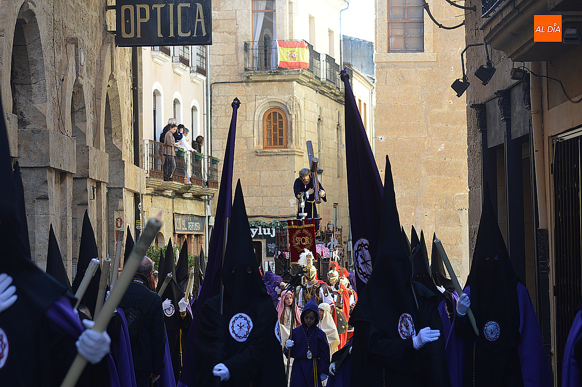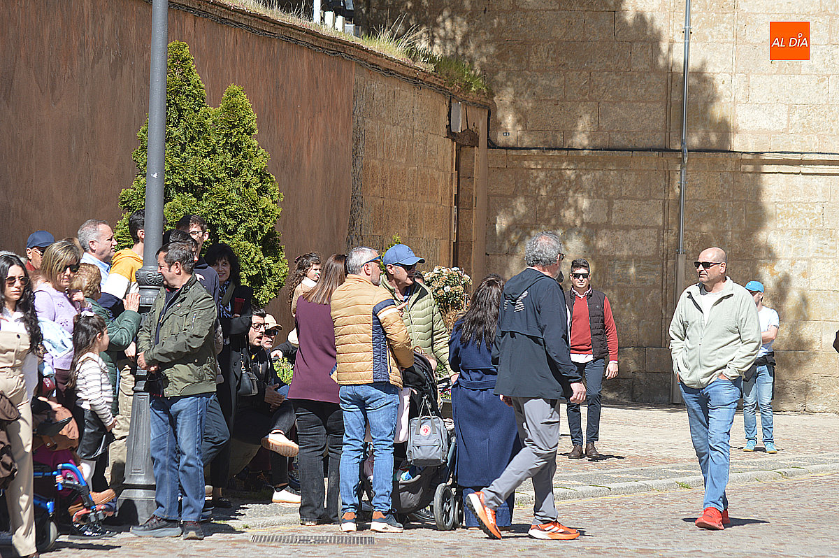 La Procesión del Santo Encuentro ha congregado a cientos de personas en la Plaza Mayor de Ciudad Rodrigo durante la mañana del Viernes Santo. Las imágenes del Cristo cargando la Cruz y La Dolorosa, de la Cofradía de Jesús Nazareno, han protagonizado este emotivo acto central antes de regresar juntas a la Catedral.