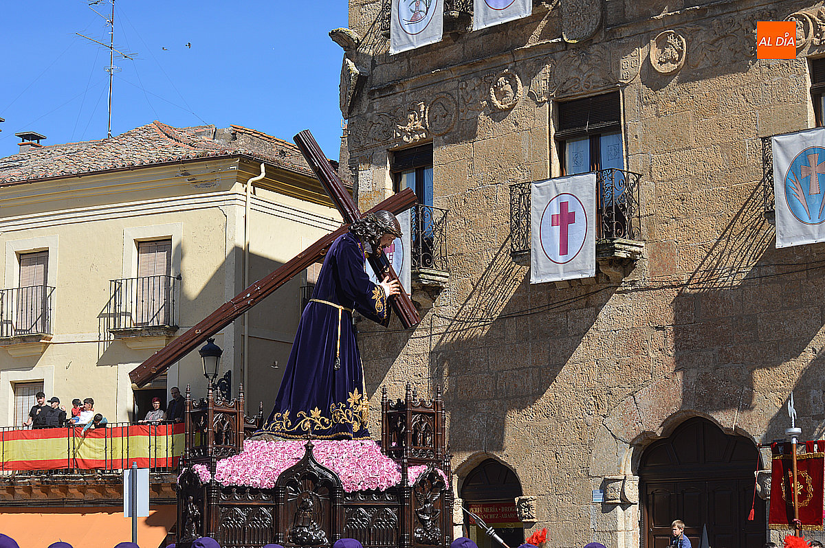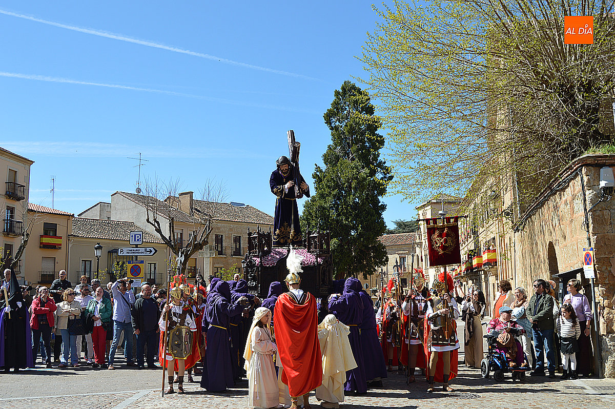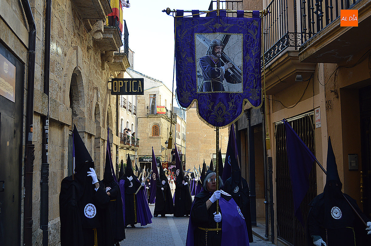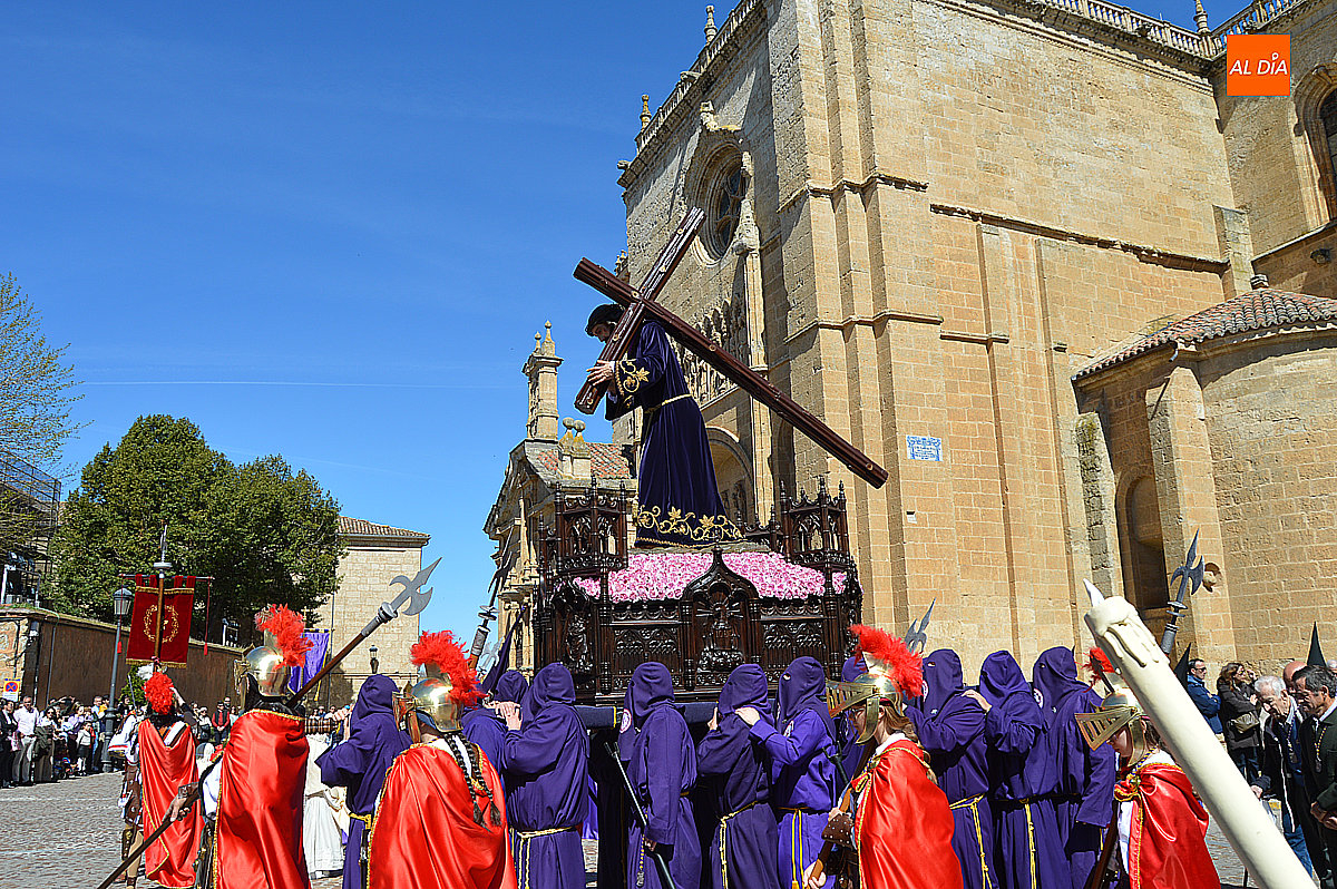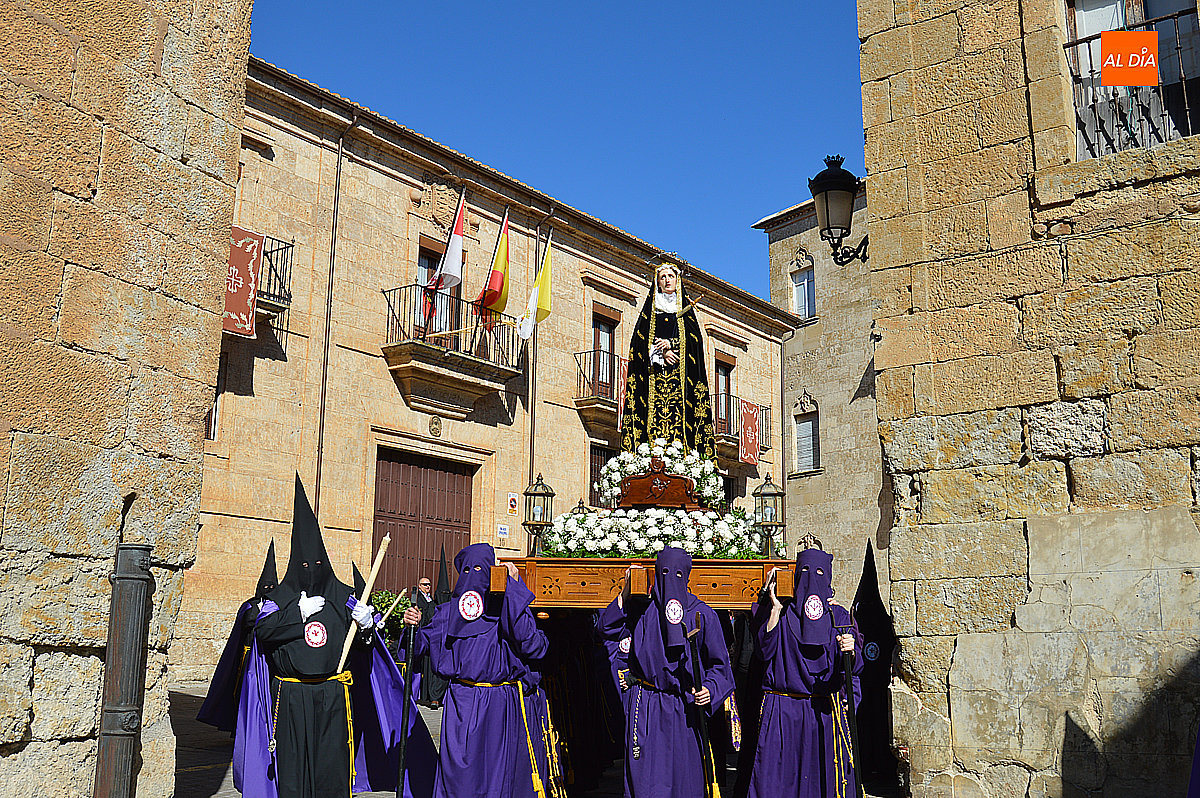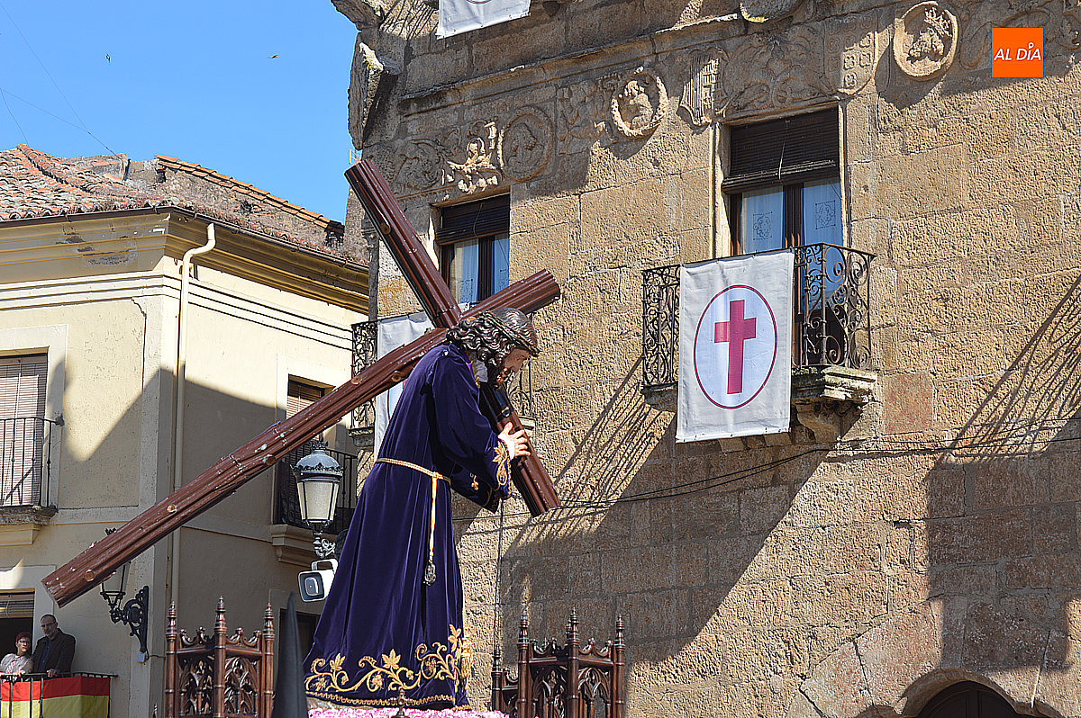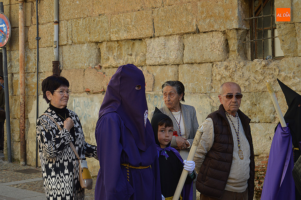 La Procesión del Santo Encuentro ha congregado a cientos de personas en la Plaza Mayor de Ciudad Rodrigo durante la mañana del Viernes Santo. Las imágenes del Cristo cargando la Cruz y La Dolorosa, de la Cofradía de Jesús Nazareno, han protagonizado este emotivo acto central antes de regresar juntas a la Catedral.