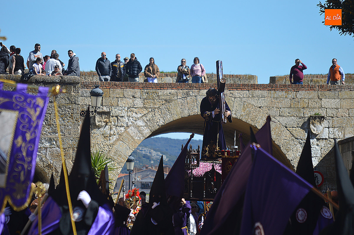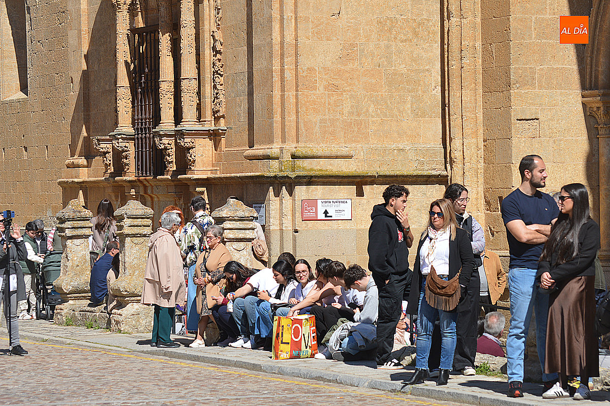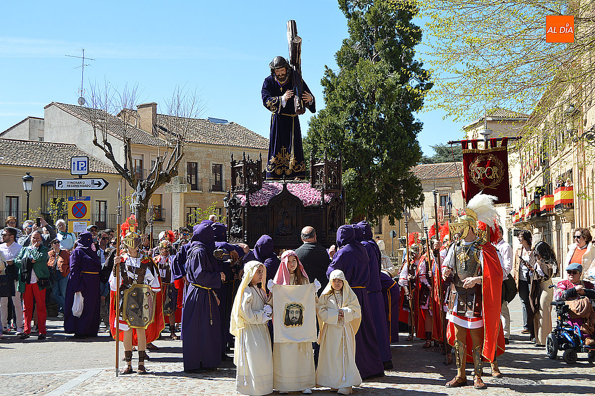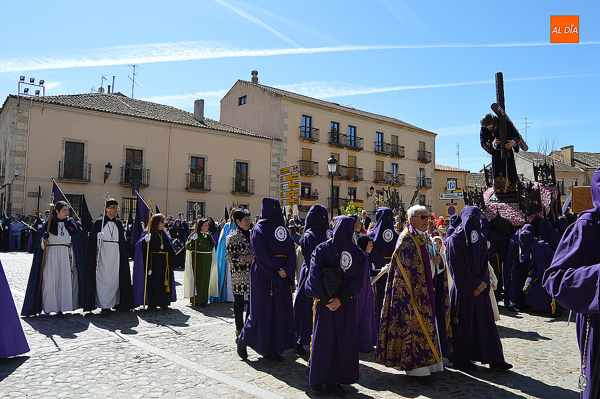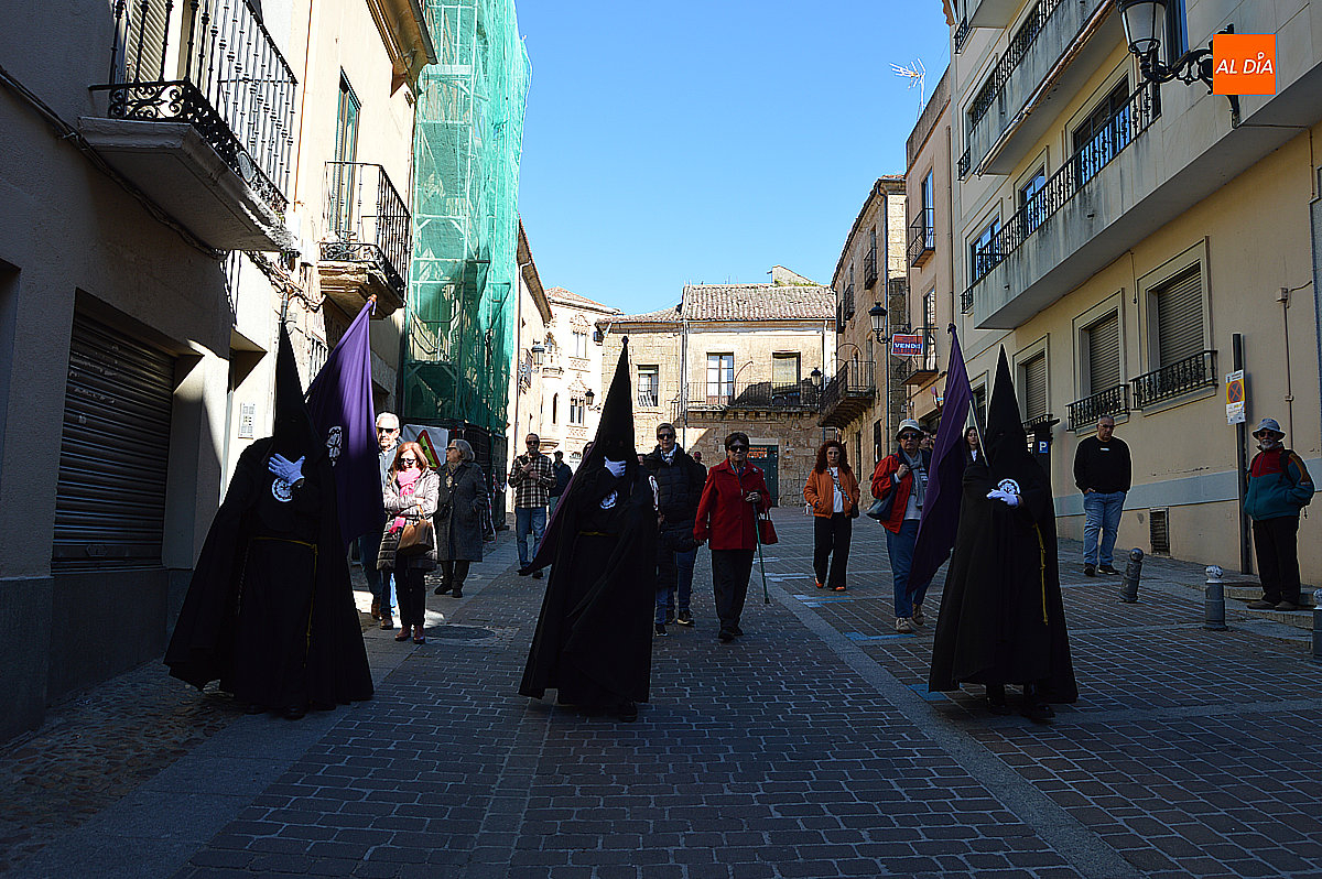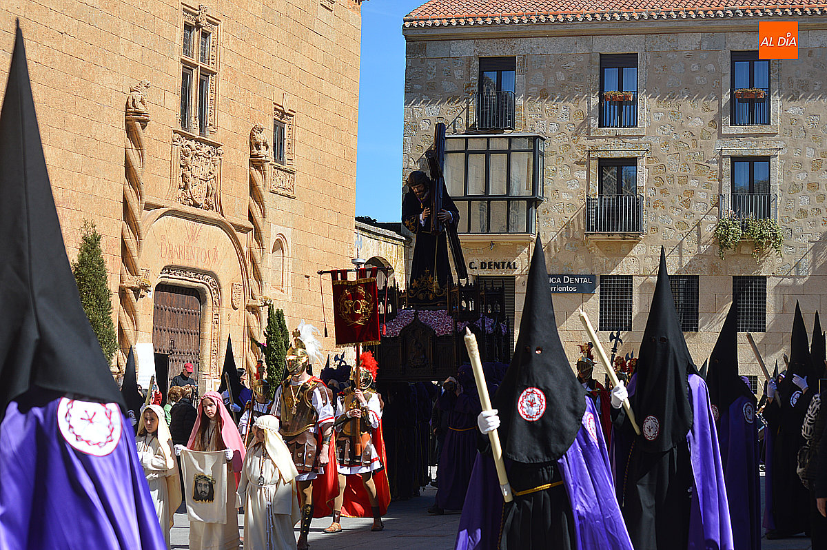 La Procesión del Santo Encuentro ha congregado a cientos de personas en la Plaza Mayor de Ciudad Rodrigo durante la mañana del Viernes Santo. Las imágenes del Cristo cargando la Cruz y La Dolorosa, de la Cofradía de Jesús Nazareno, han protagonizado este emotivo acto central antes de regresar juntas a la Catedral.