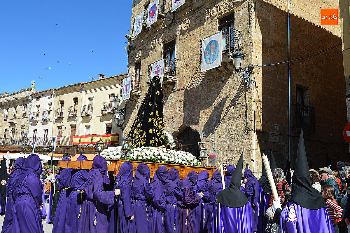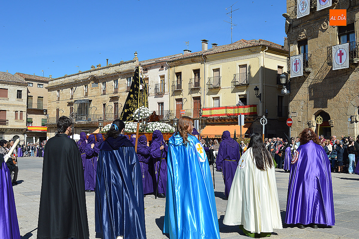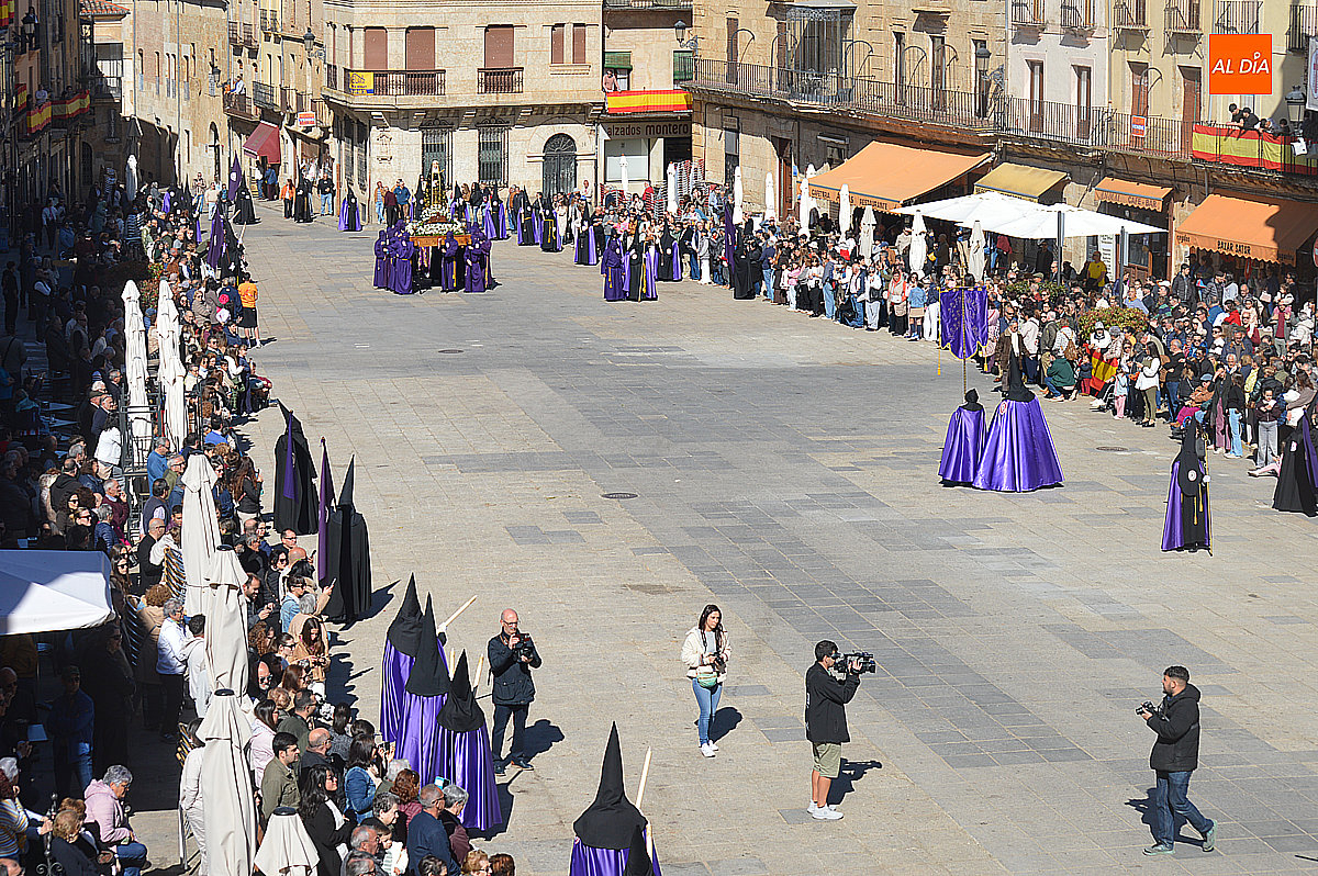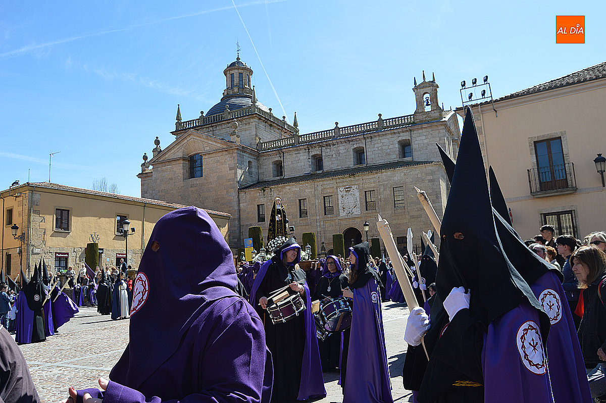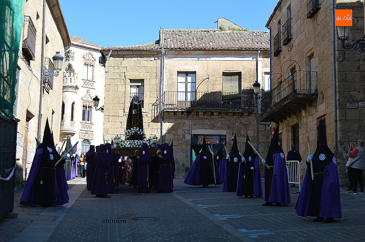 El instante central de la procesión se ha producido cuando ambas procesiones han confluido en la Plaza Mayor de Ciudad Rodrigo. Una multitud de vecinos y turistas ha arropado este acto que simboliza el cruce entre la madre y el hijo antes de la crucifixión.