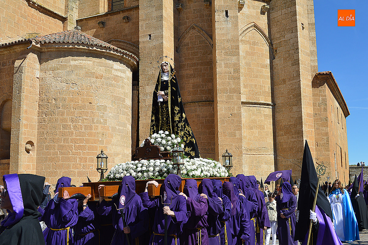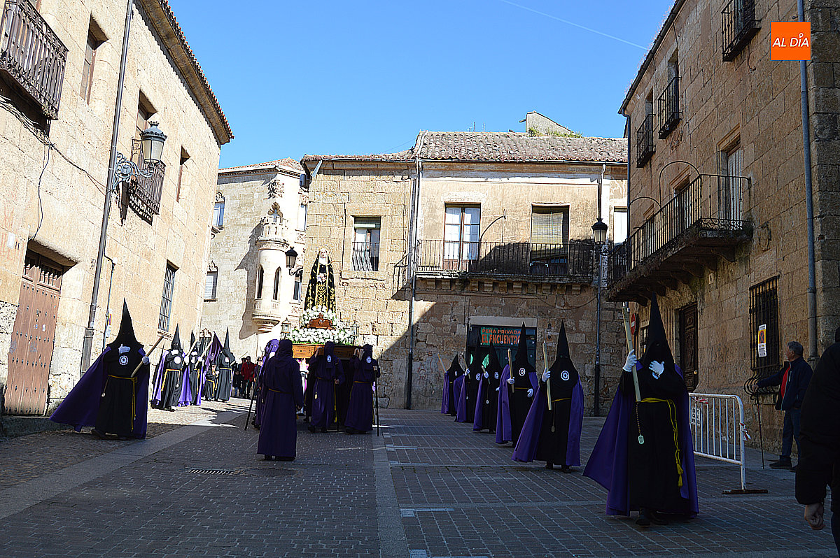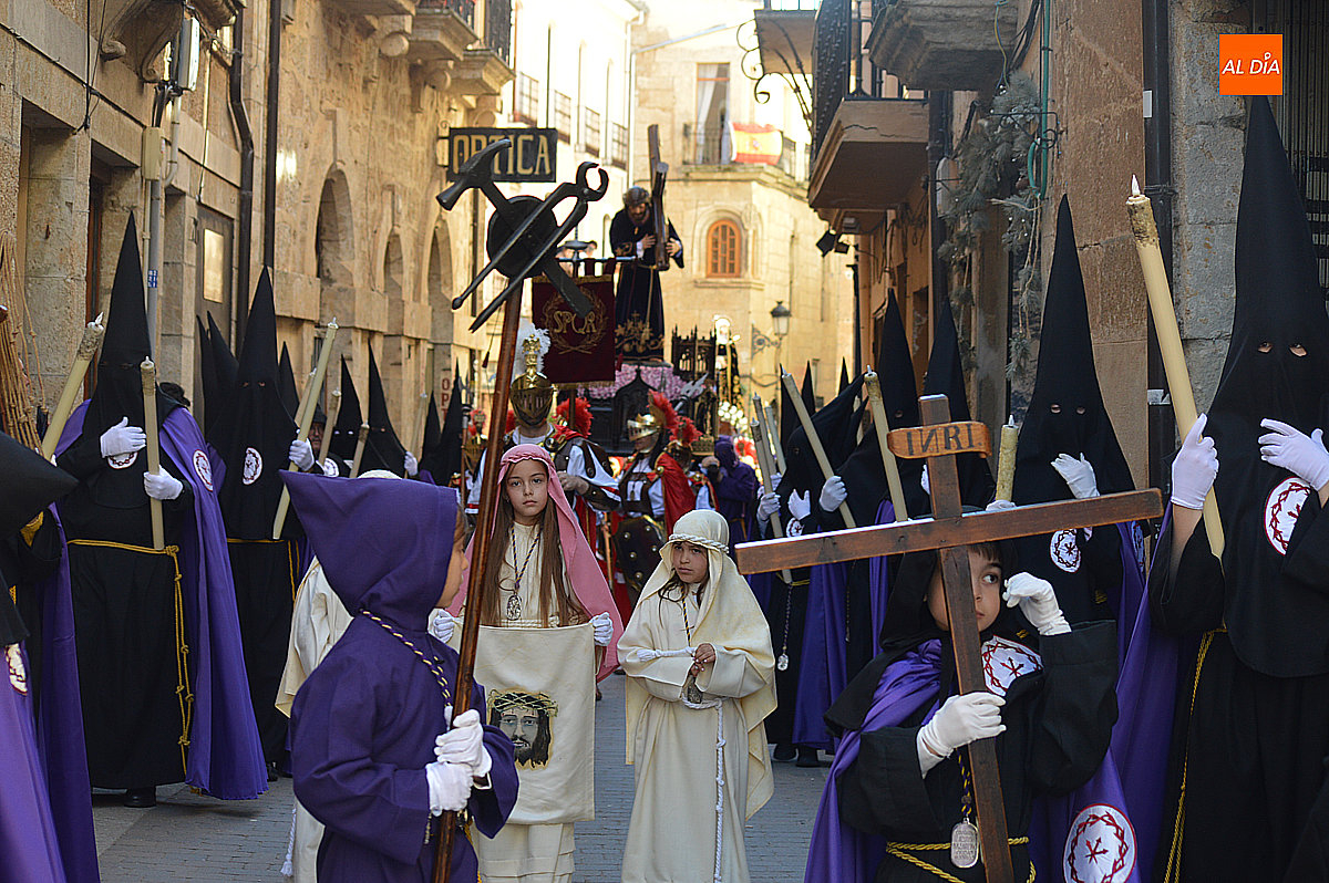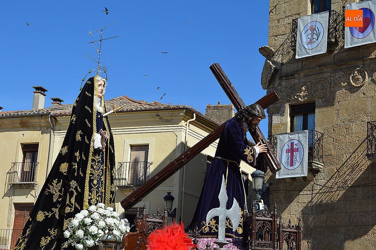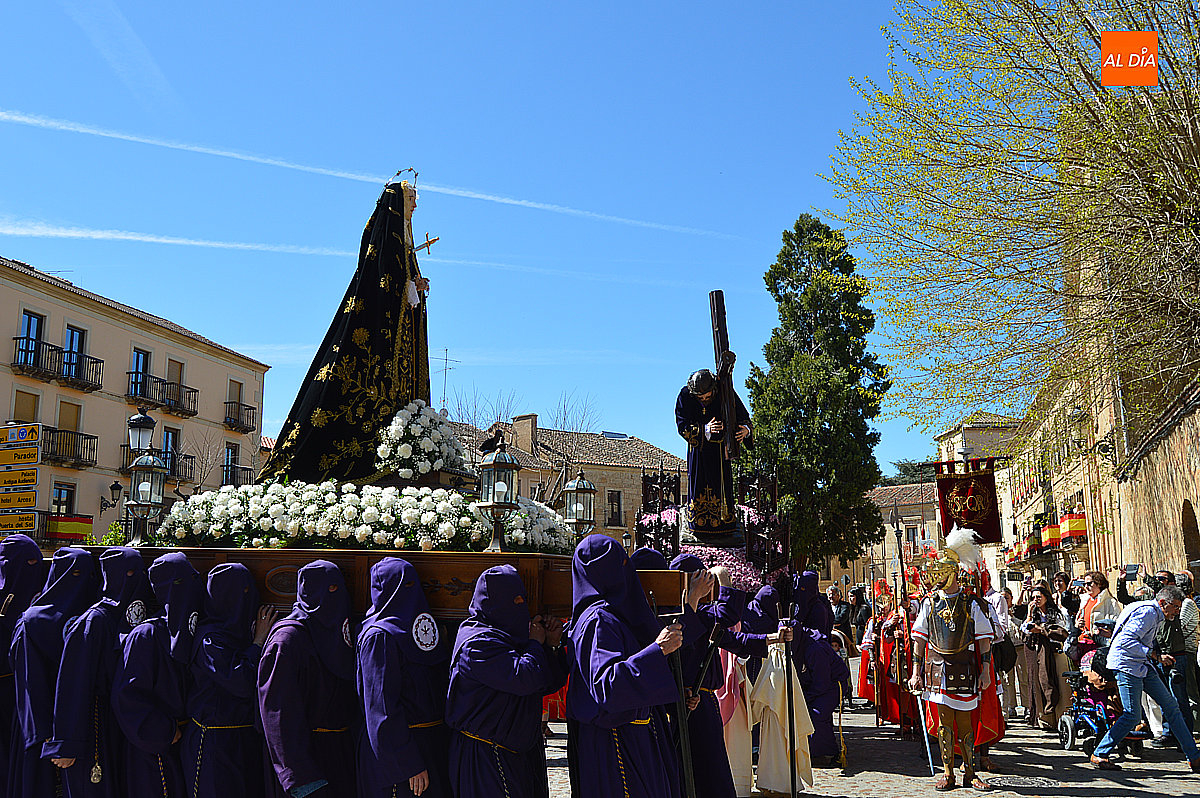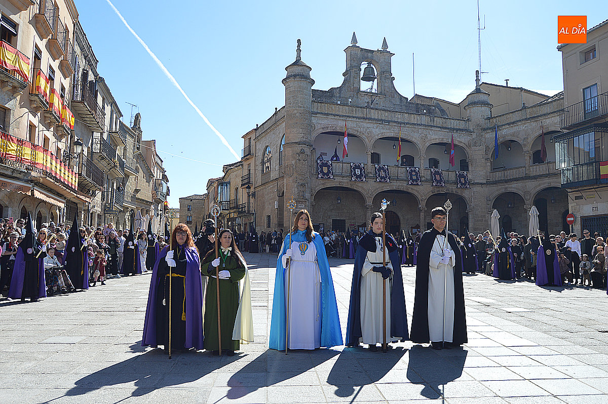 El instante central de la procesión se ha producido cuando ambas procesiones han confluido en la Plaza Mayor de Ciudad Rodrigo. Una multitud de vecinos y turistas ha arropado este acto que simboliza el cruce entre la madre y el hijo antes de la crucifixión.