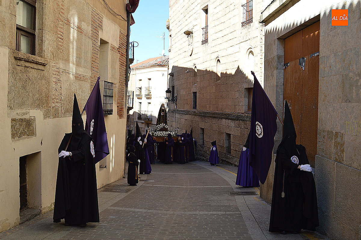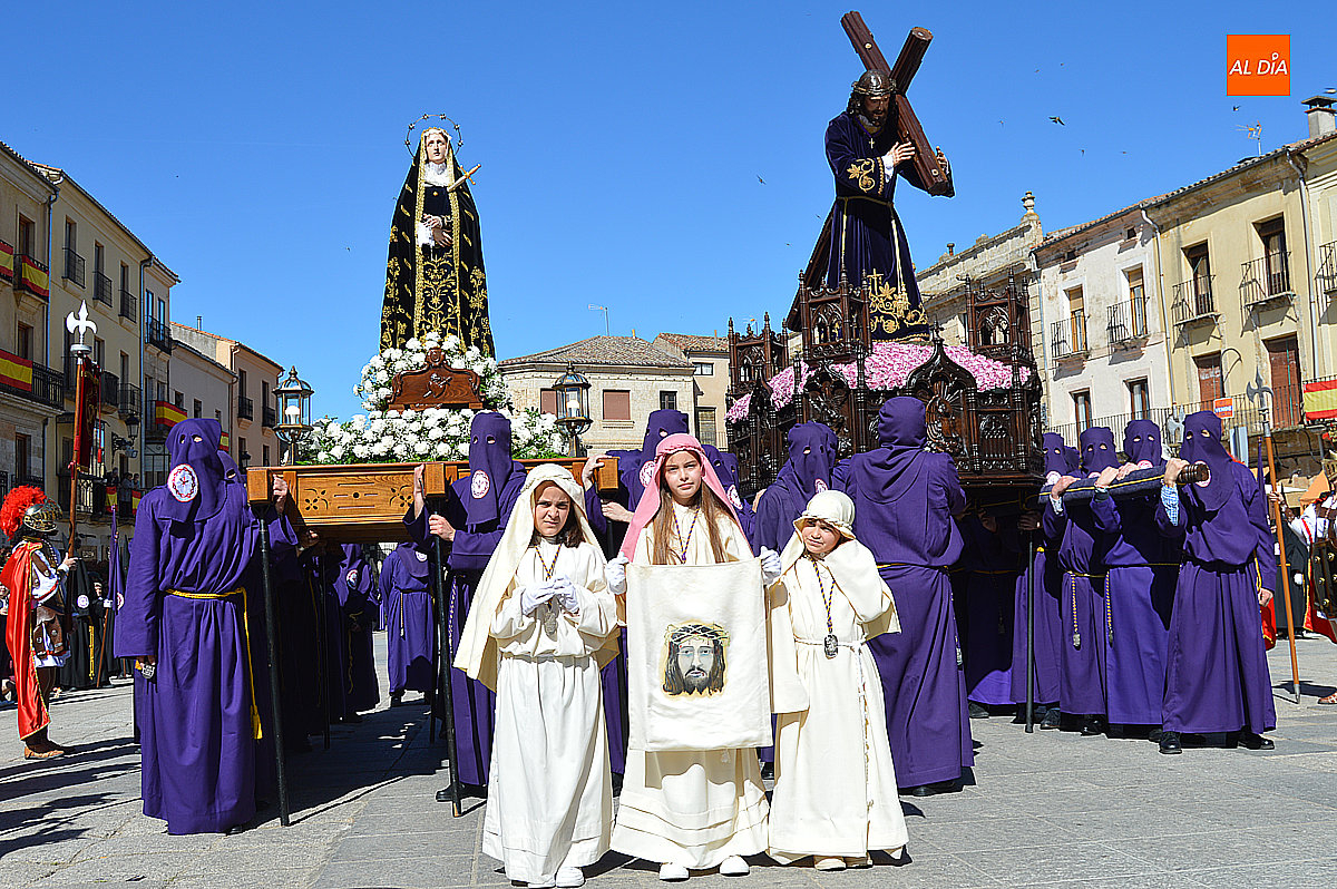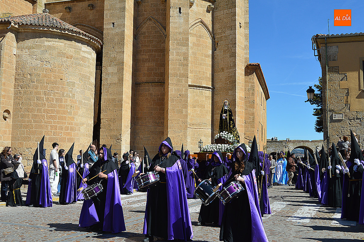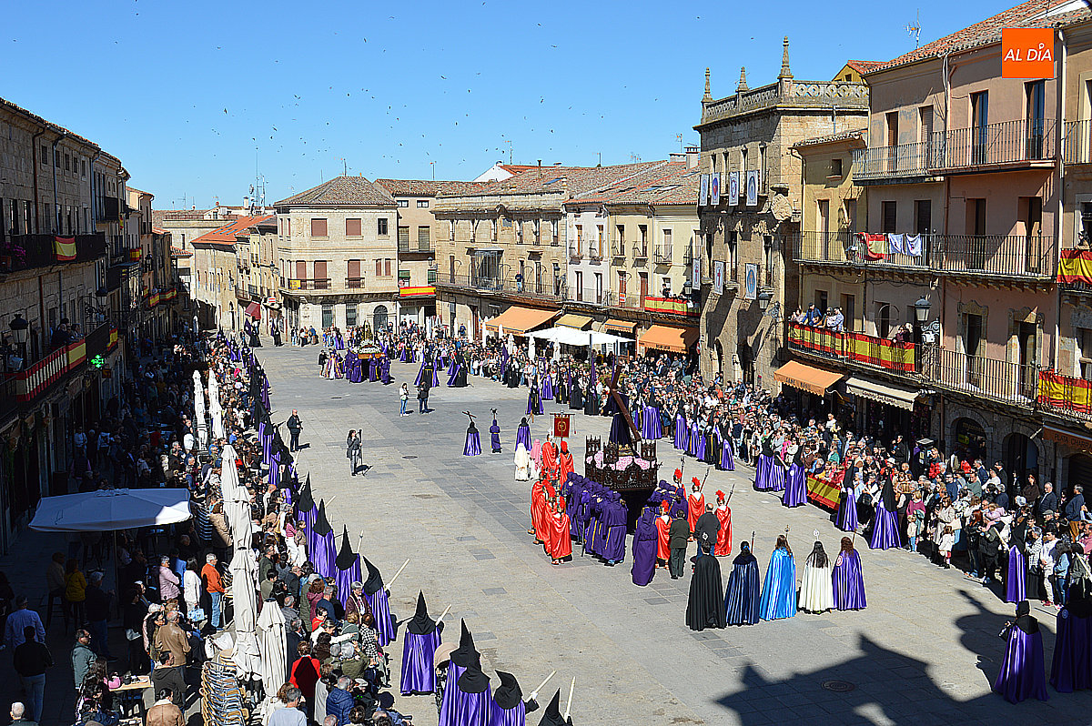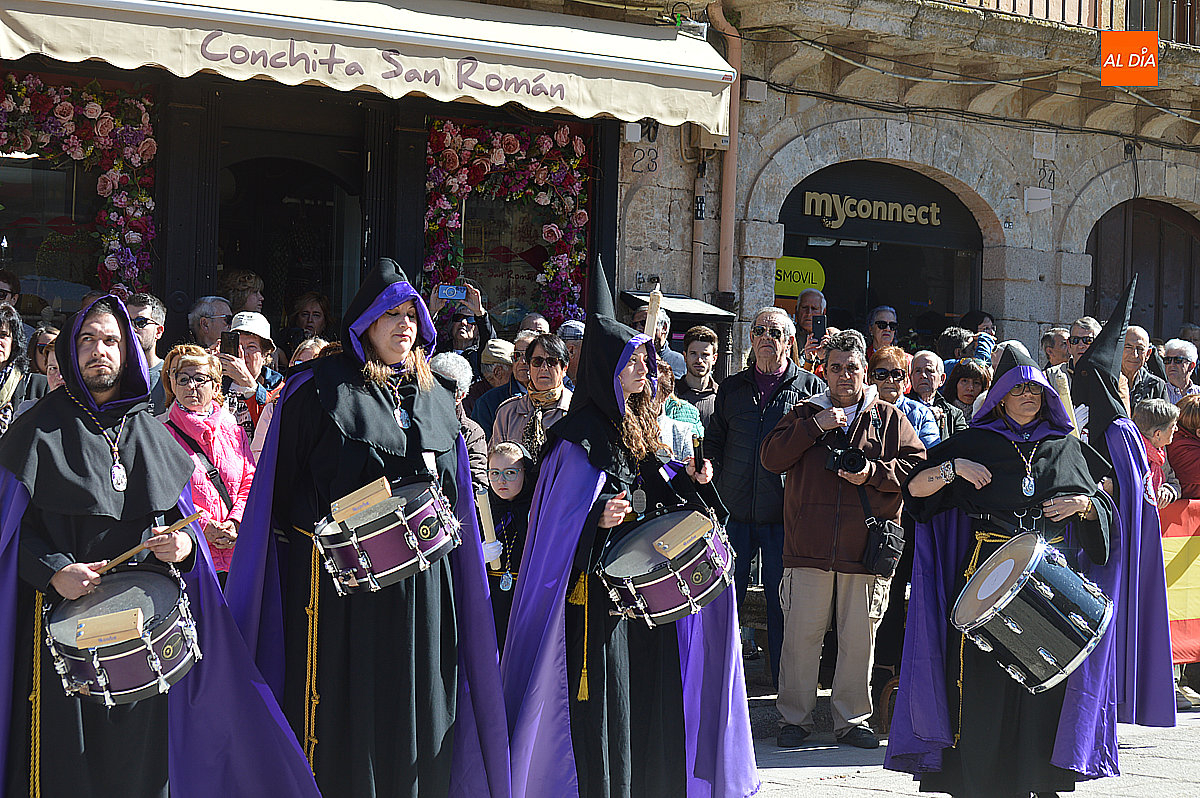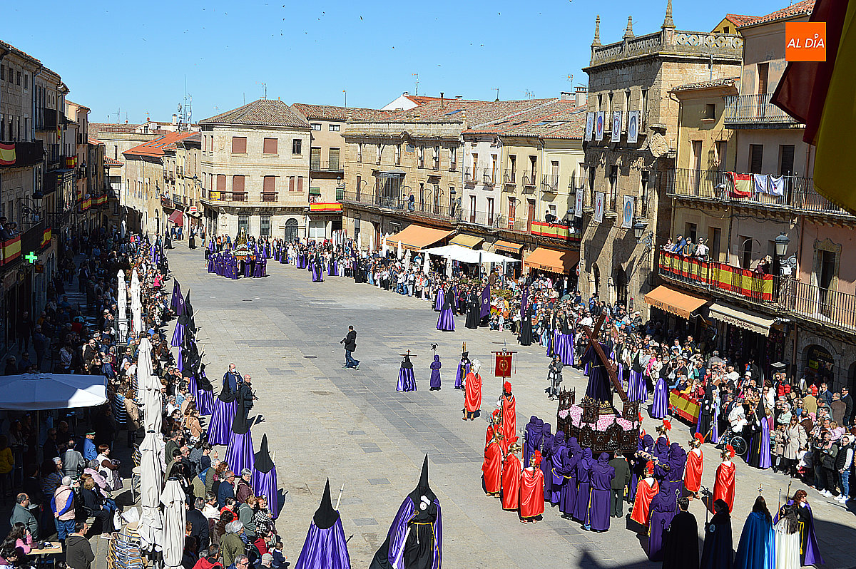 El instante central de la procesión se ha producido cuando ambas procesiones han confluido en la Plaza Mayor de Ciudad Rodrigo. Una multitud de vecinos y turistas ha arropado este acto que simboliza el cruce entre la madre y el hijo antes de la crucifixión.