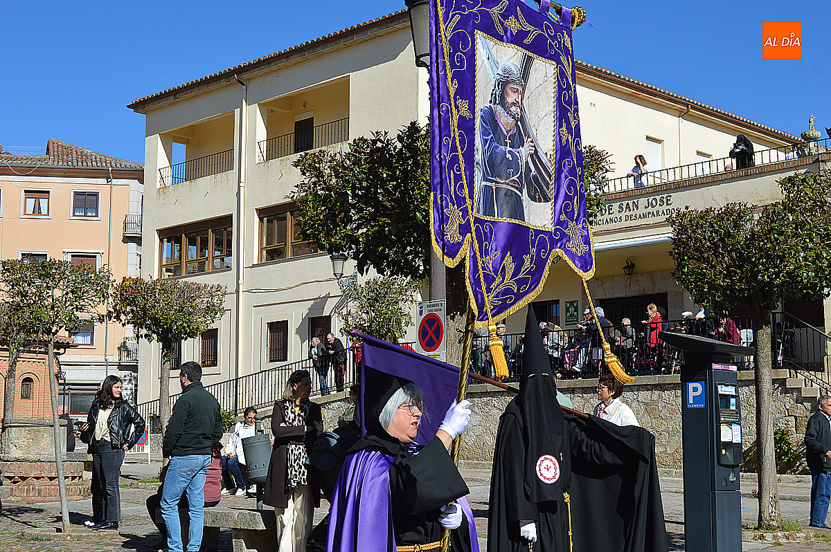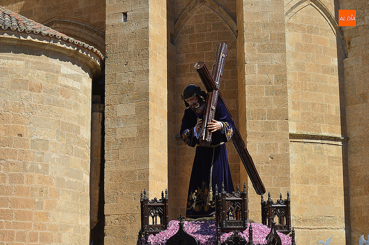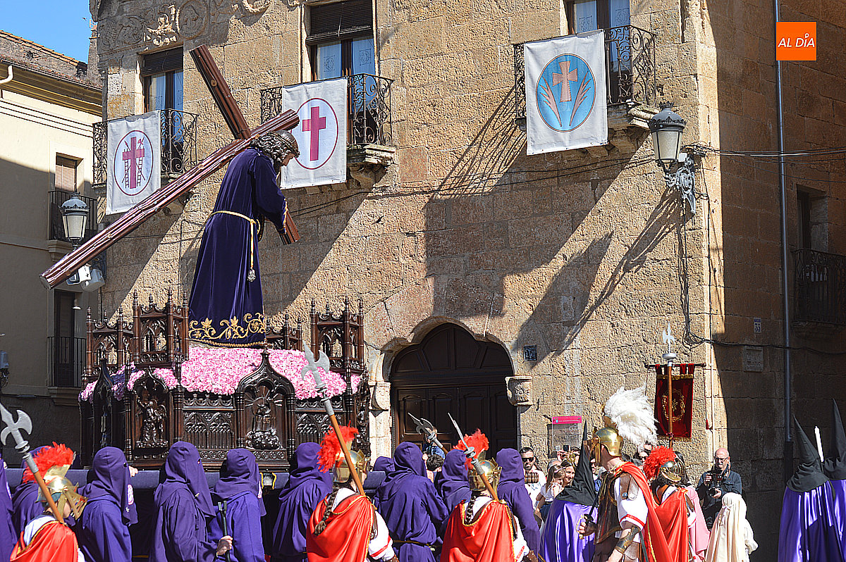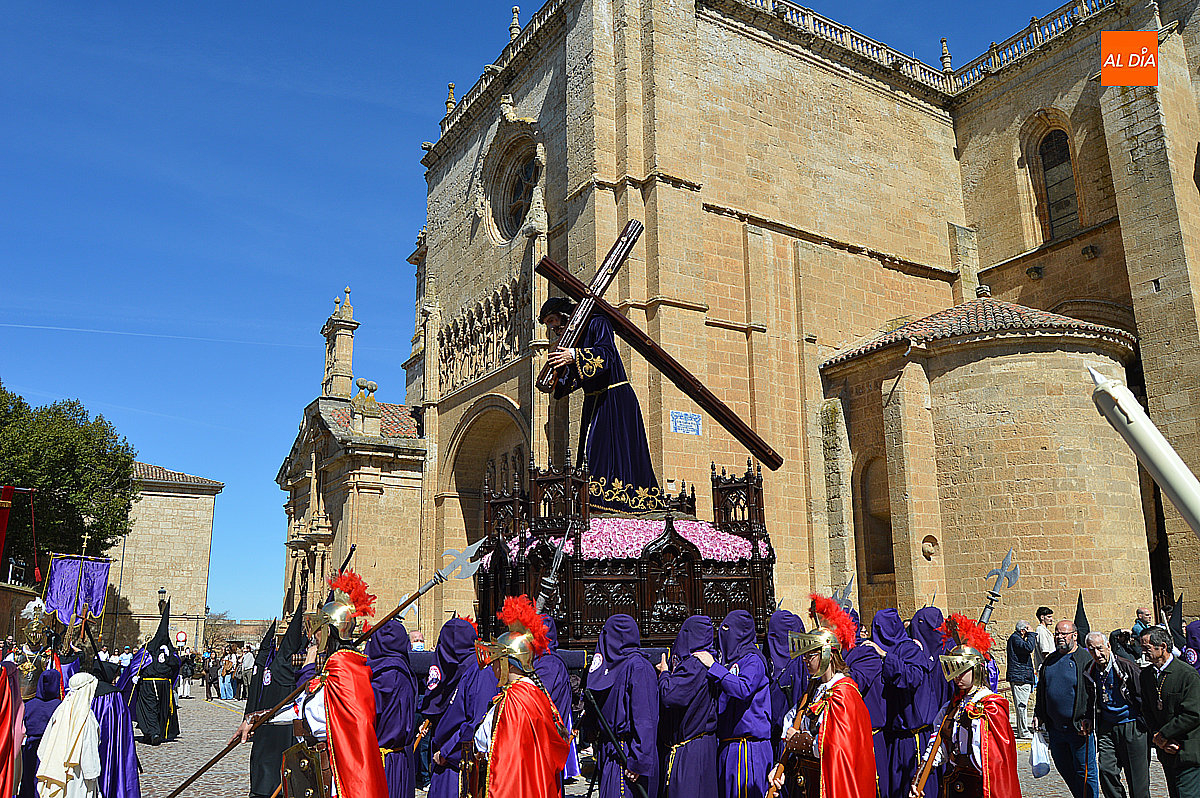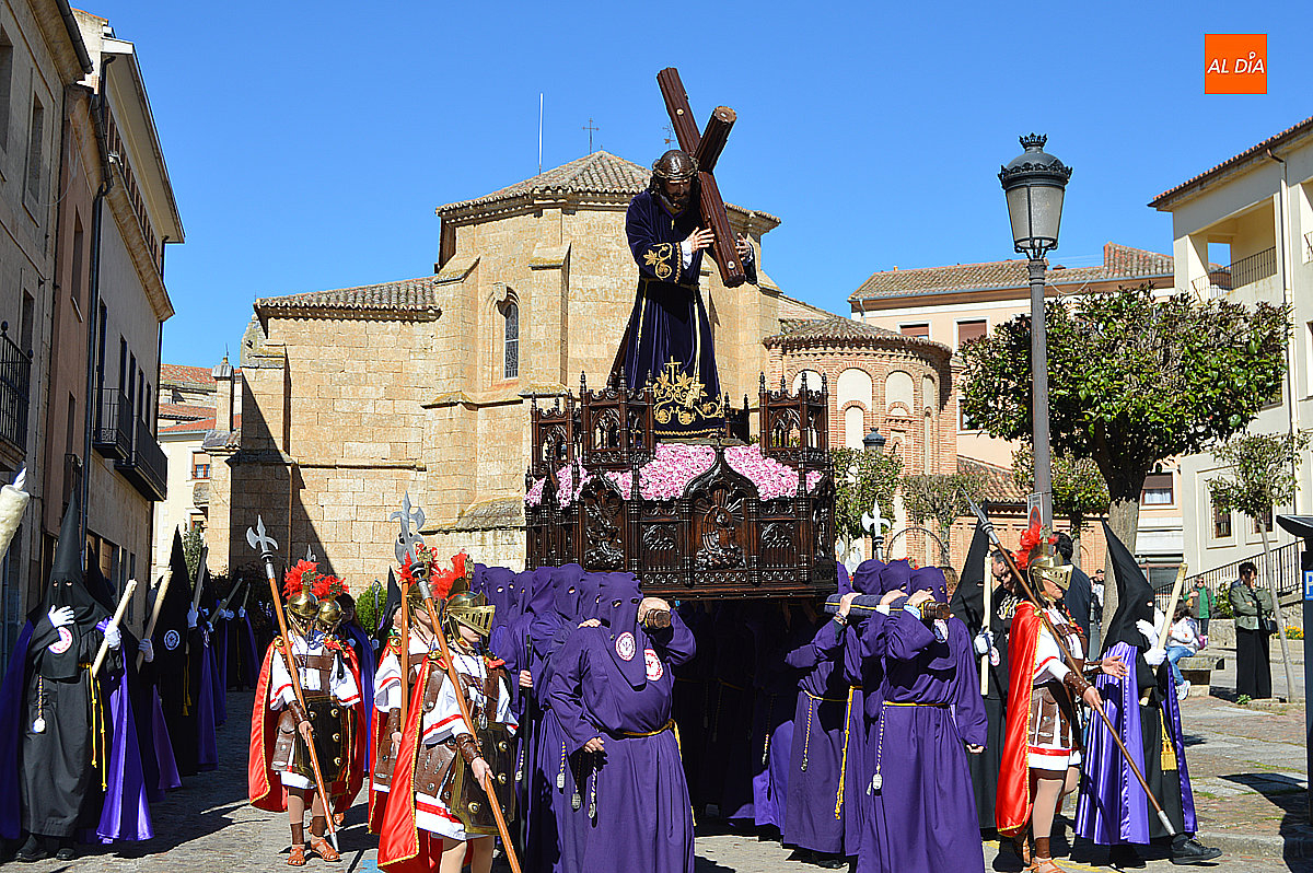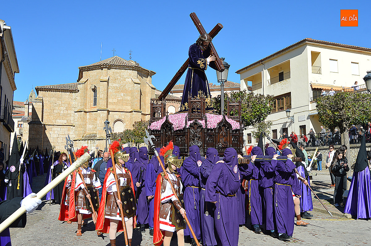 Por un lado, la talla del Cristo cargando la Cruz ha iniciado su camino desde la iglesia de San Agustín. El paso ha avanzado por las vías mirobrigenses acompañado por el característico sonido de los tambores de la cofradía.