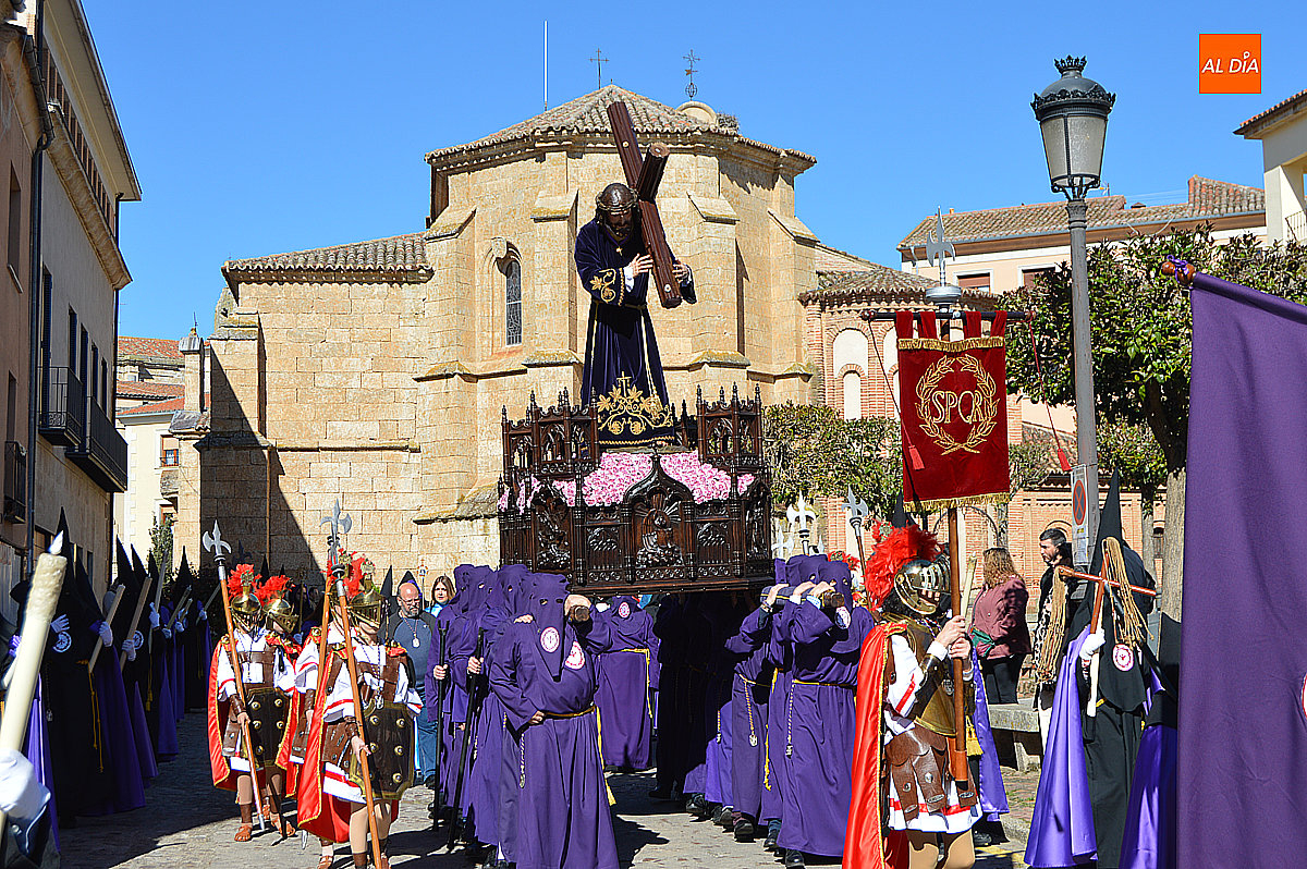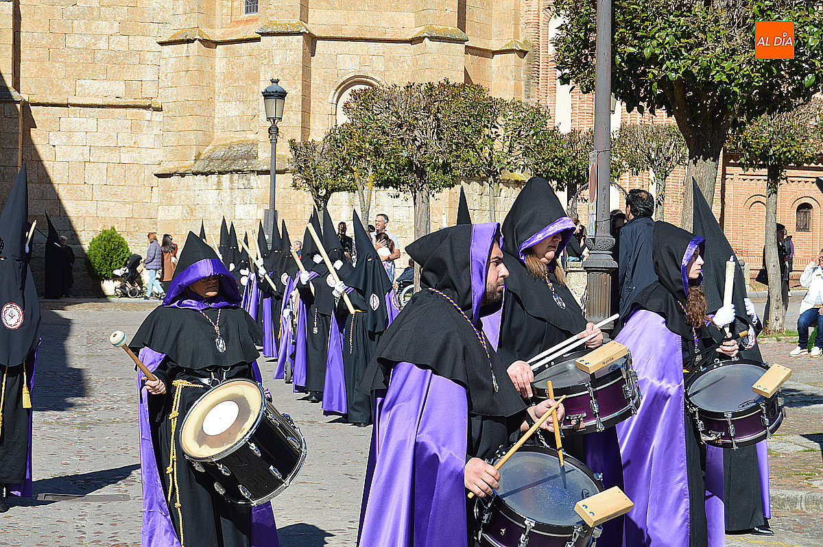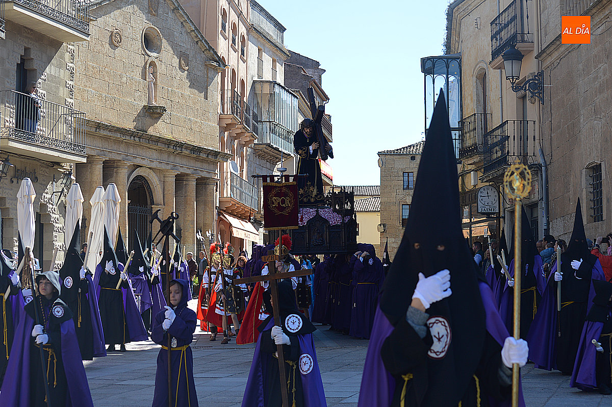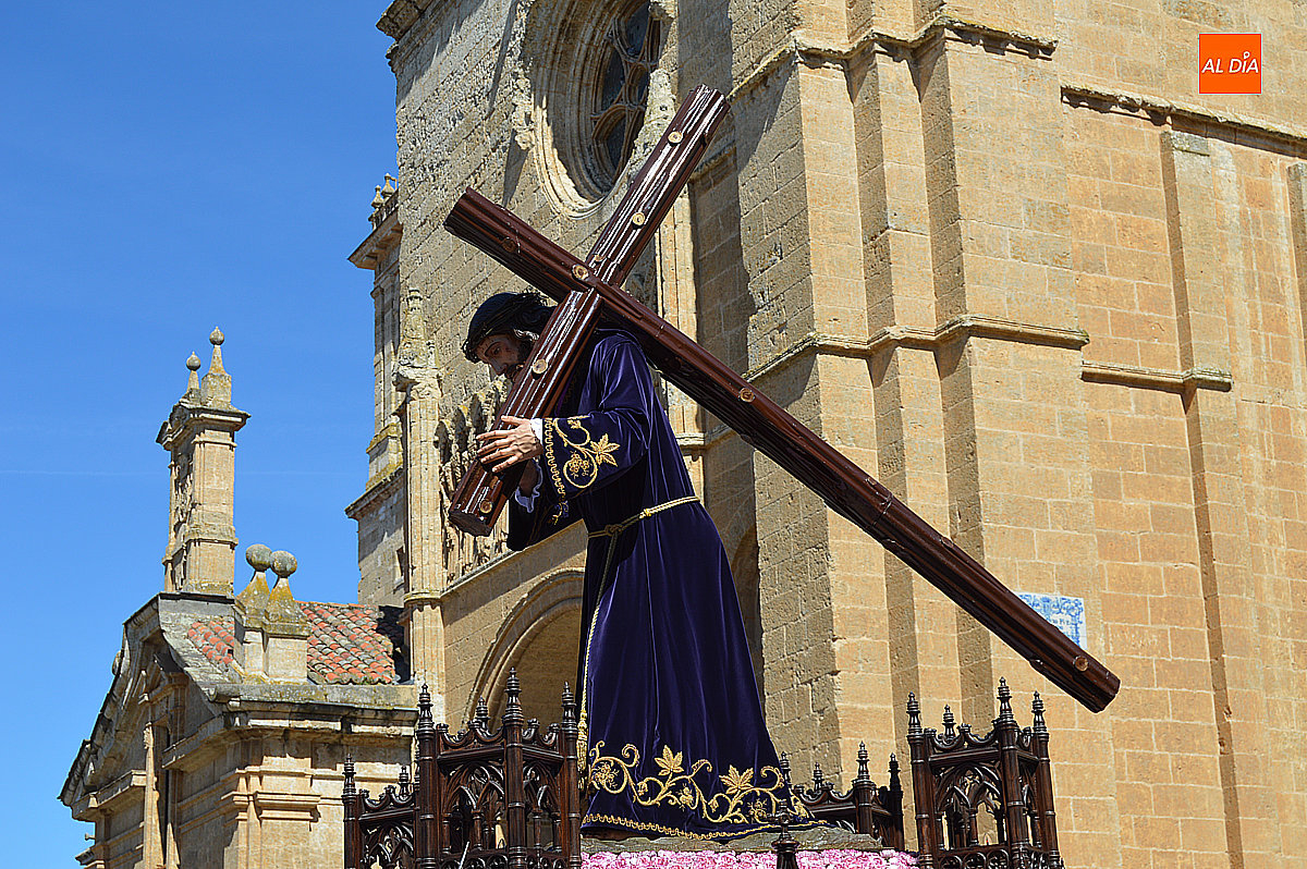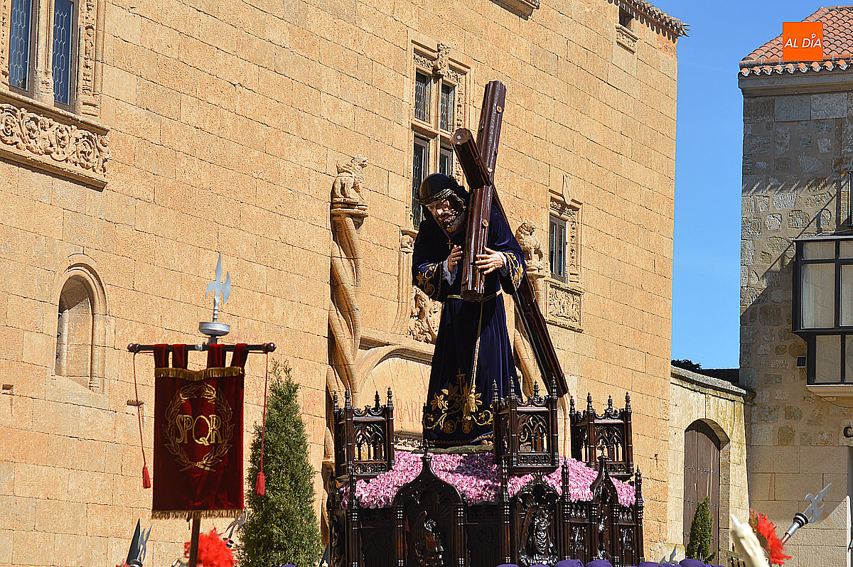 Por un lado, la talla del Cristo cargando la Cruz ha iniciado su camino desde la iglesia de San Agustín. El paso ha avanzado por las vías mirobrigenses acompañado por el característico sonido de los tambores de la cofradía.