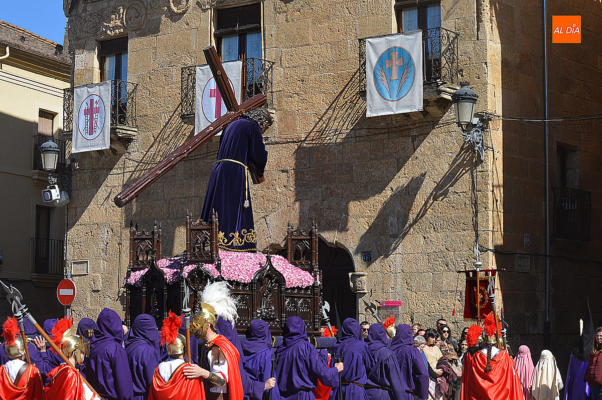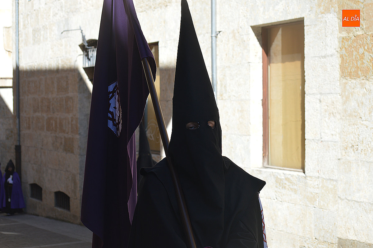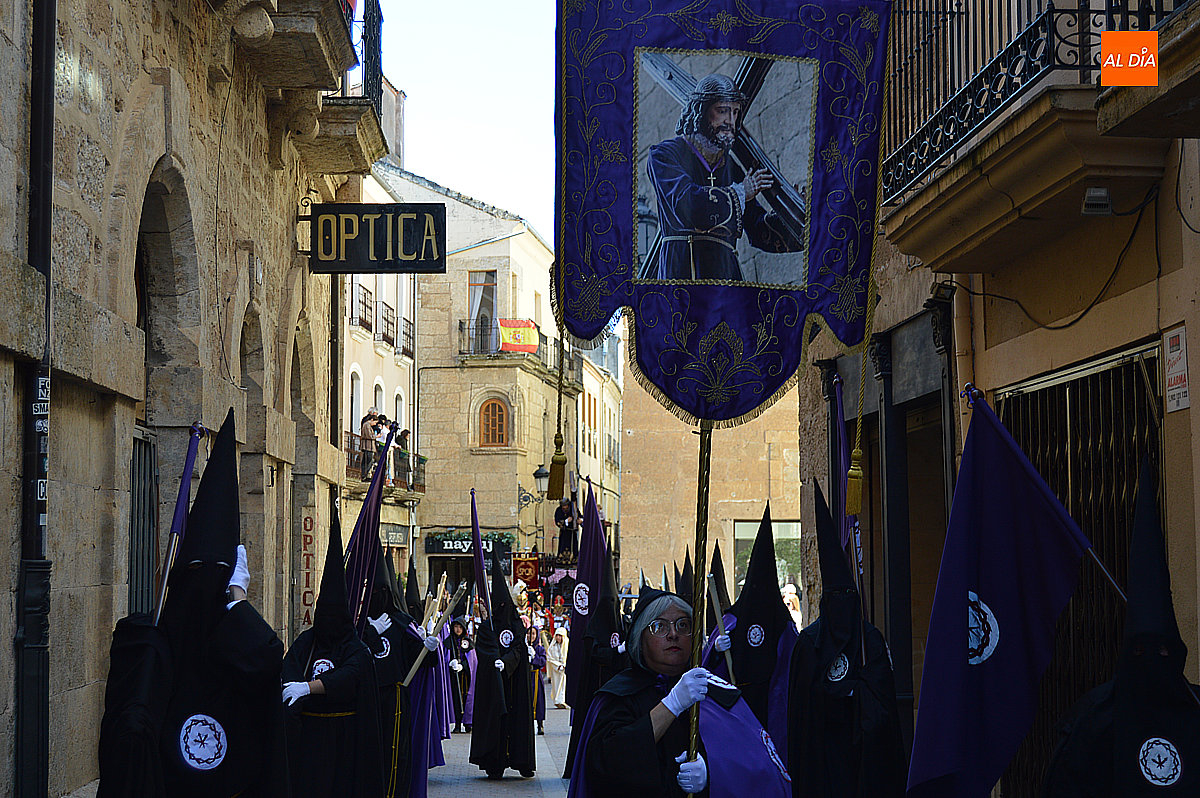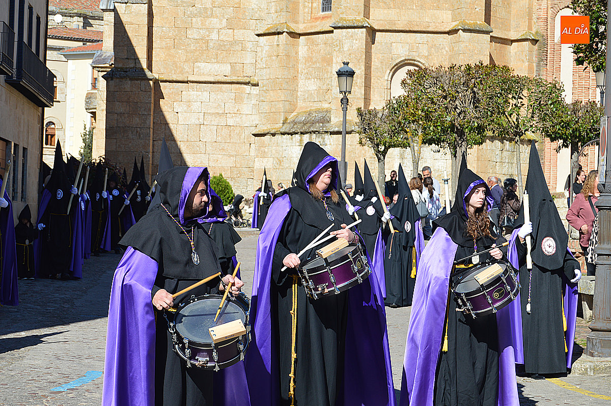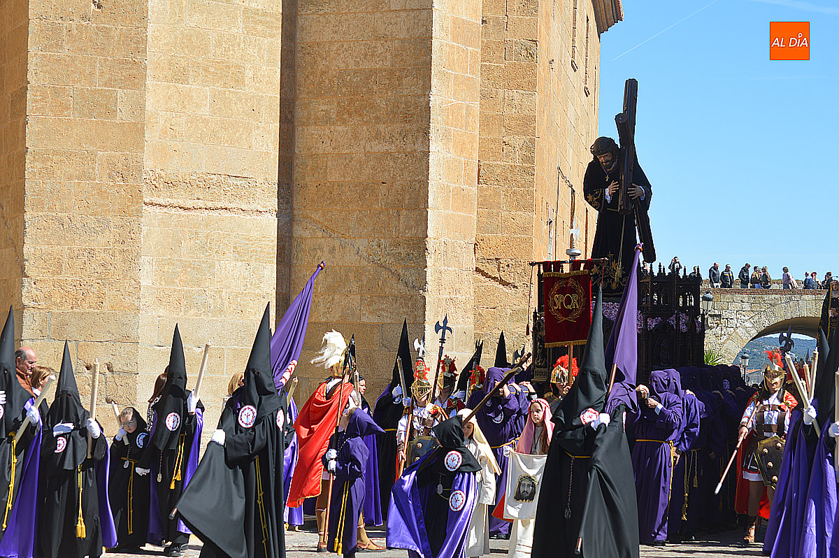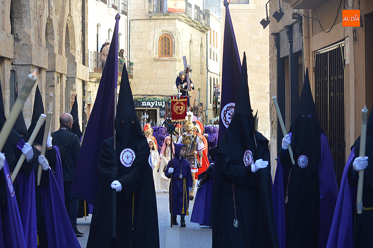 Por un lado, la talla del Cristo cargando la Cruz ha iniciado su camino desde la iglesia de San Agustín. El paso ha avanzado por las vías mirobrigenses acompañado por el característico sonido de los tambores de la cofradía.