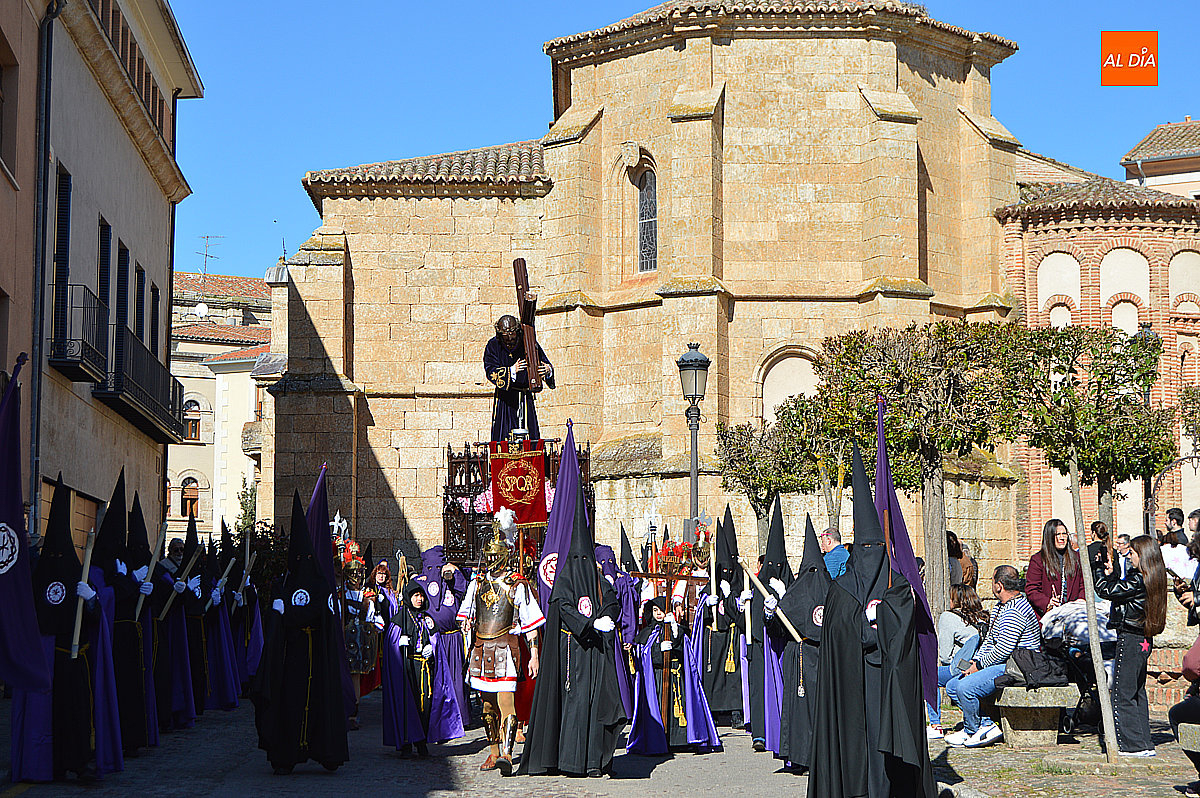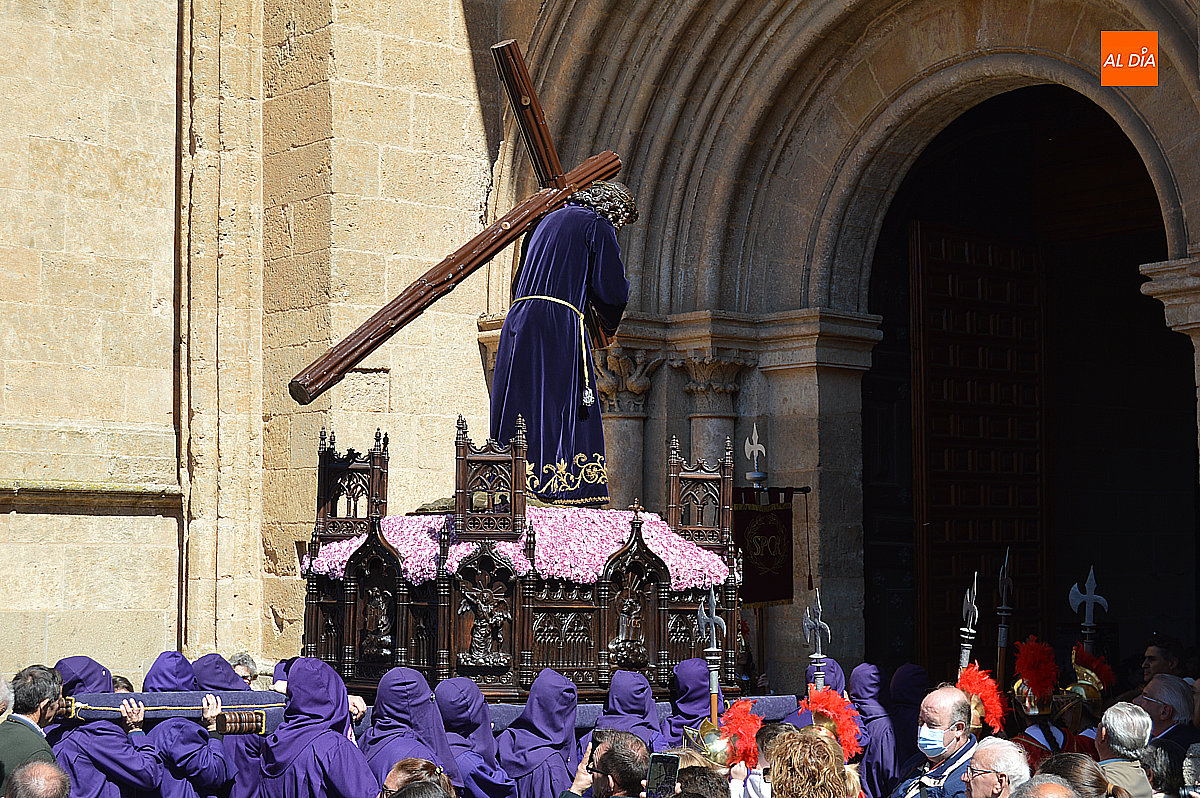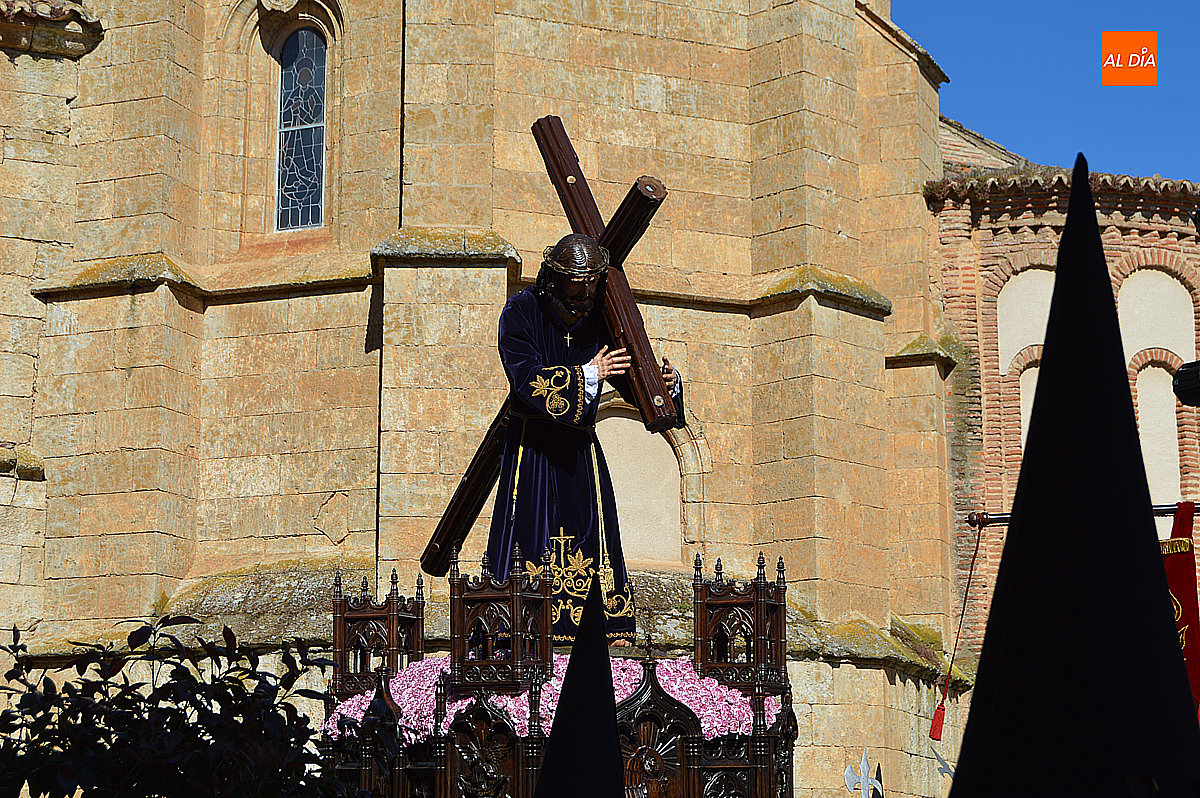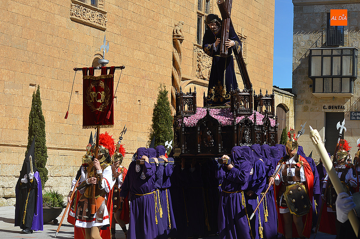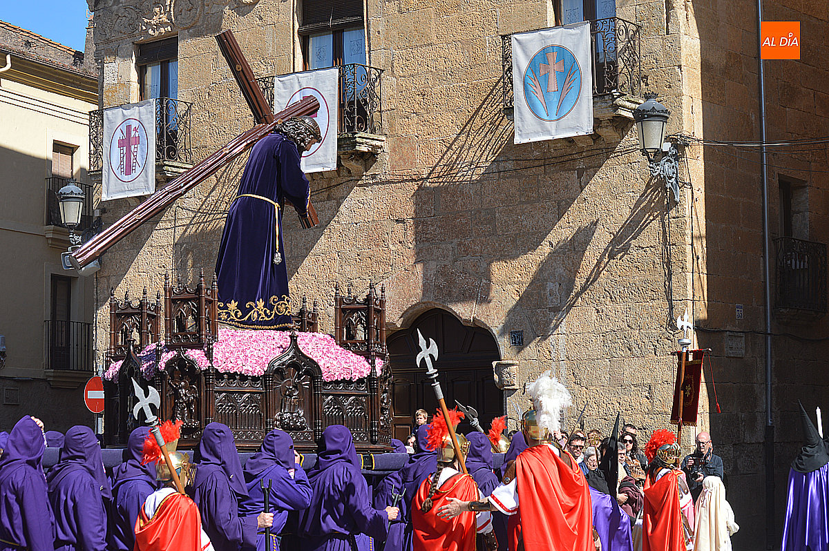 Por un lado, la talla del Cristo cargando la Cruz ha iniciado su camino desde la iglesia de San Agustín. El paso ha avanzado por las vías mirobrigenses acompañado por el característico sonido de los tambores de la cofradía.