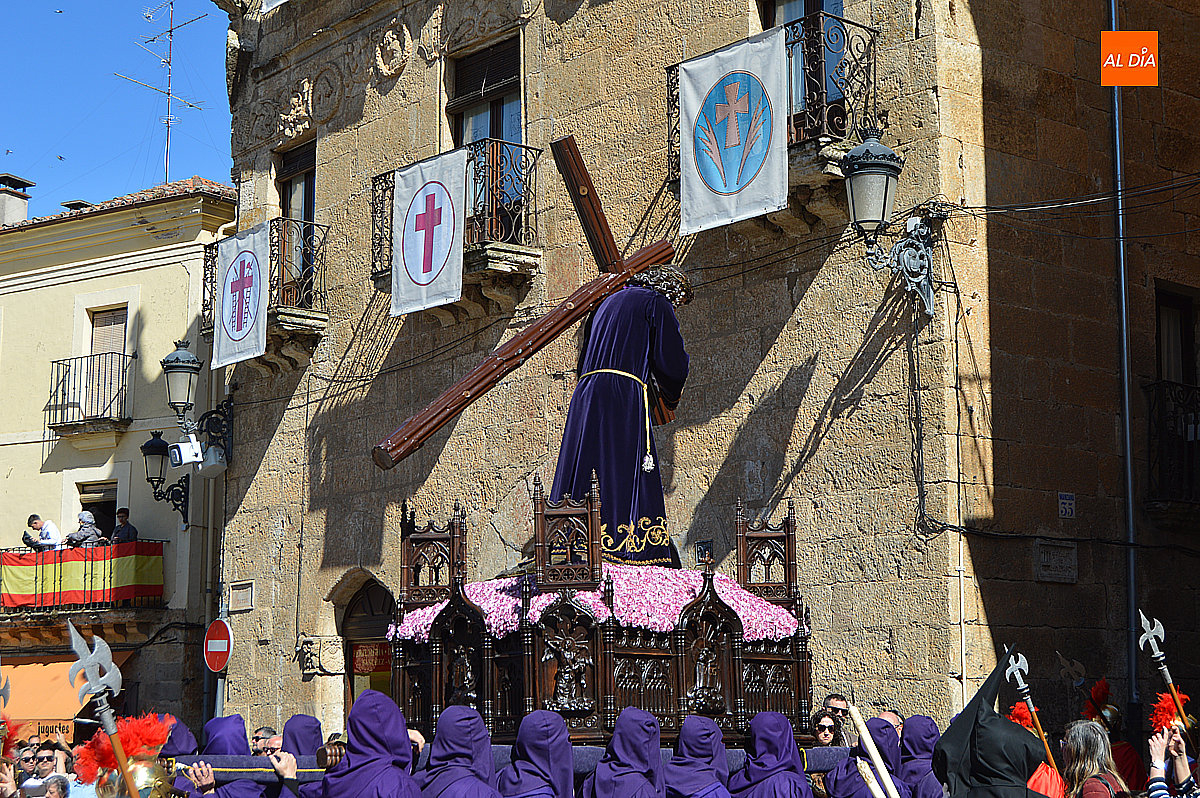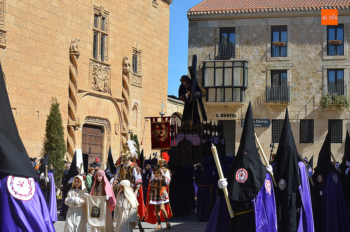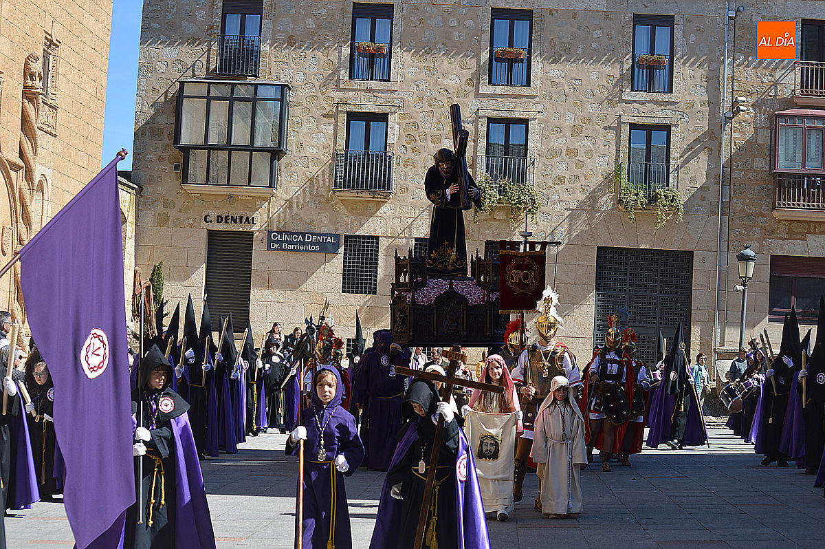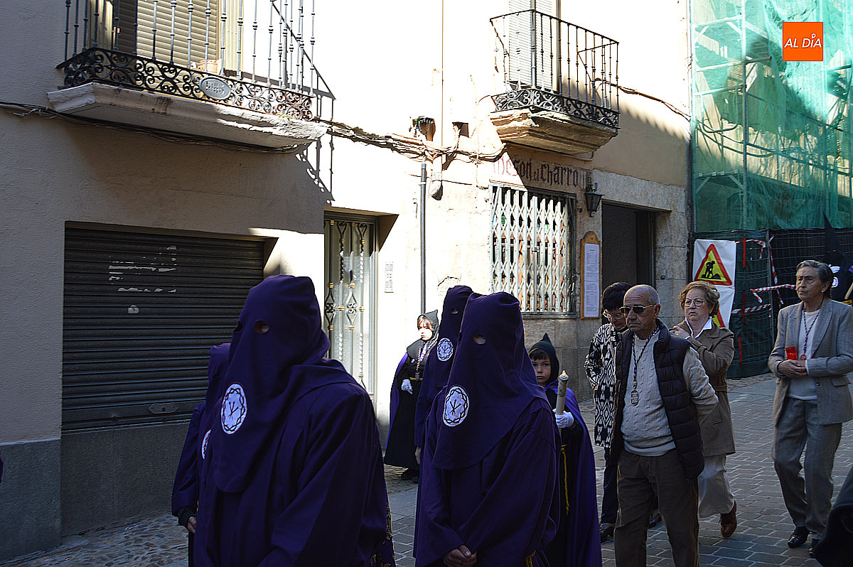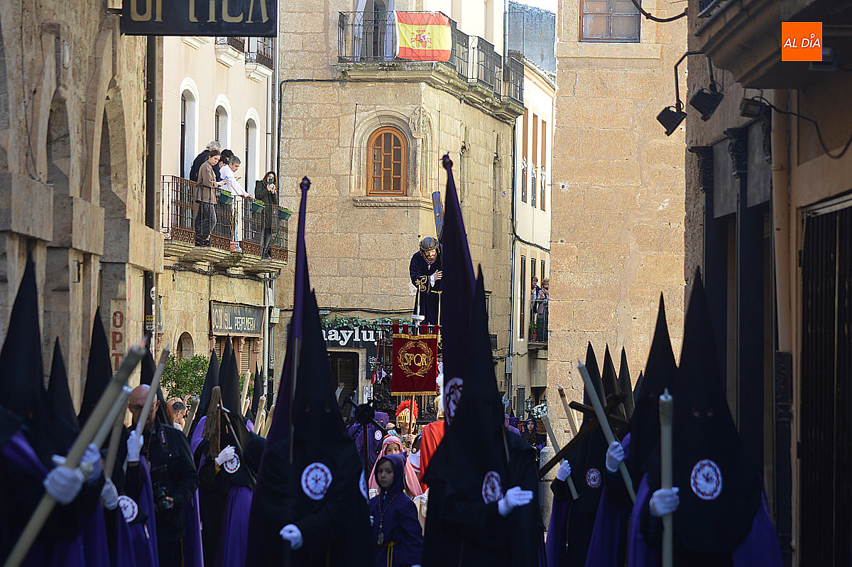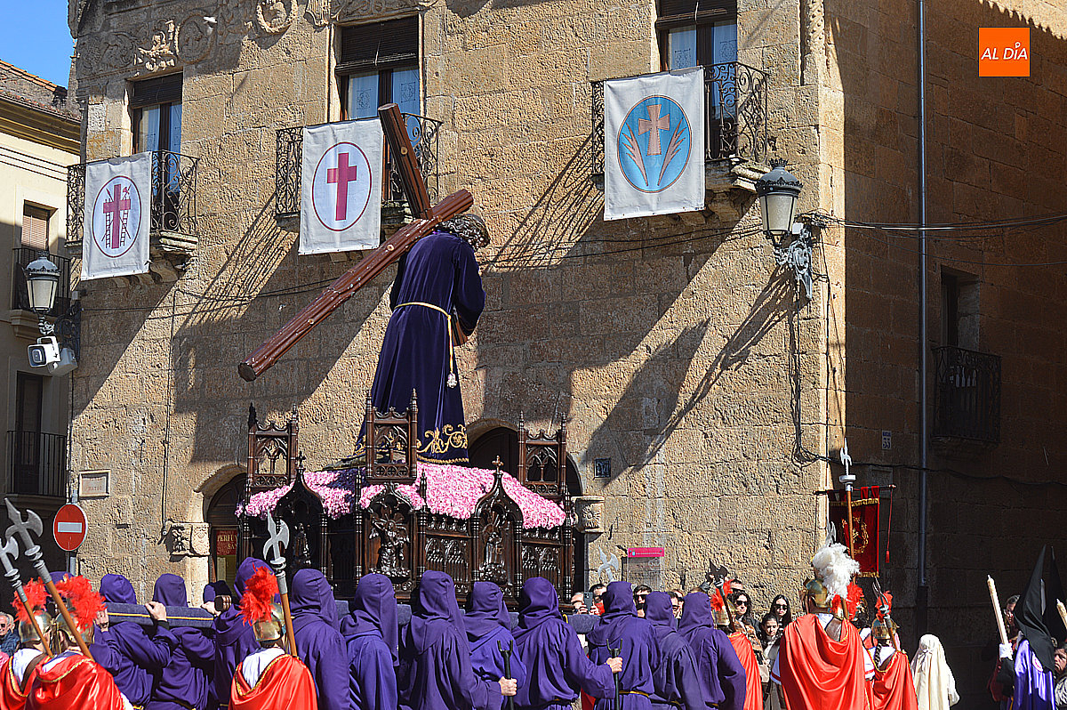 Por un lado, la talla del Cristo cargando la Cruz ha iniciado su camino desde la iglesia de San Agustín. El paso ha avanzado por las vías mirobrigenses acompañado por el característico sonido de los tambores de la cofradía.