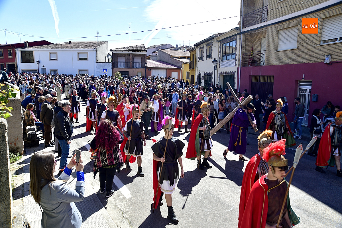 A su lado, cerca de un centenar de vecinos —niños, adultos y mayores— asumieron distintos papeles en una escenificación coral que contó, además, con la participación del párroco, Efraín Peinado. Todos, bajo la coordinación de la Asociación "La Cumbre", contribuyeron a recrear los últimos días de la vida de Cristo siguiendo un esquema fiel a la tradición, pero siempre abierto a la emoción renovada de cada edición.