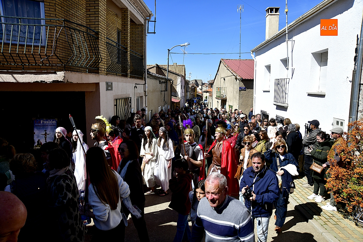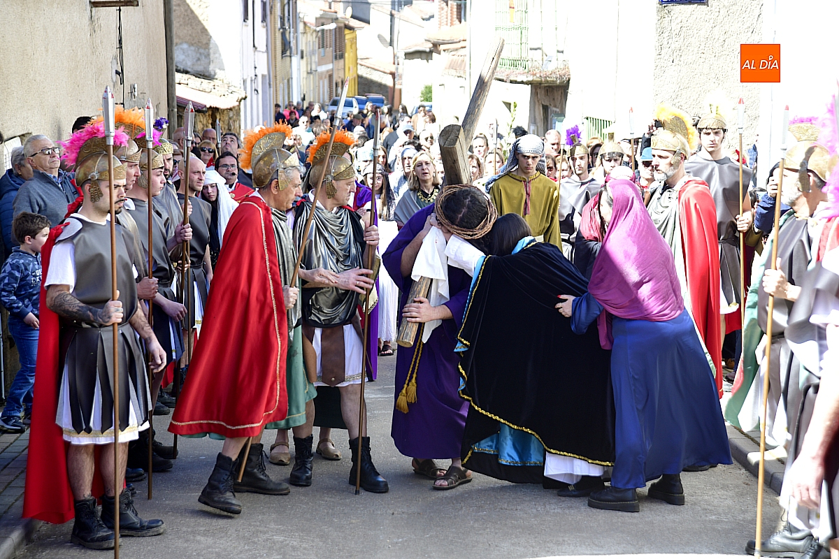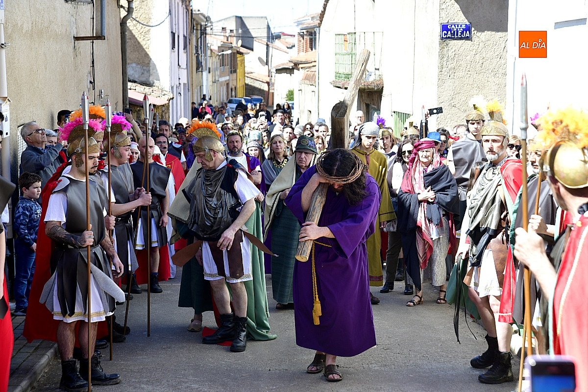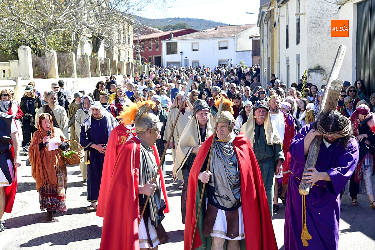 A su lado, cerca de un centenar de vecinos —niños, adultos y mayores— asumieron distintos papeles en una escenificación coral que contó, además, con la participación del párroco, Efraín Peinado. Todos, bajo la coordinación de la Asociación "La Cumbre", contribuyeron a recrear los últimos días de la vida de Cristo siguiendo un esquema fiel a la tradición, pero siempre abierto a la emoción renovada de cada edición.