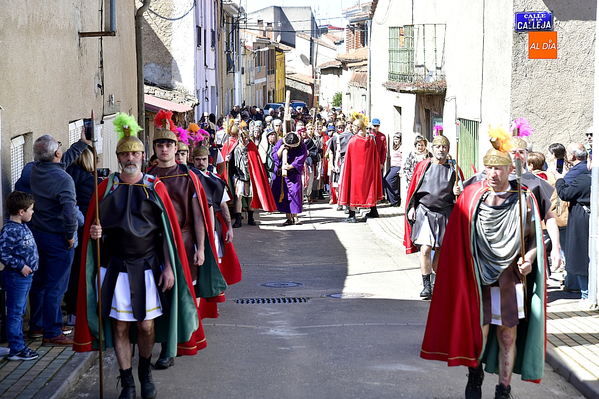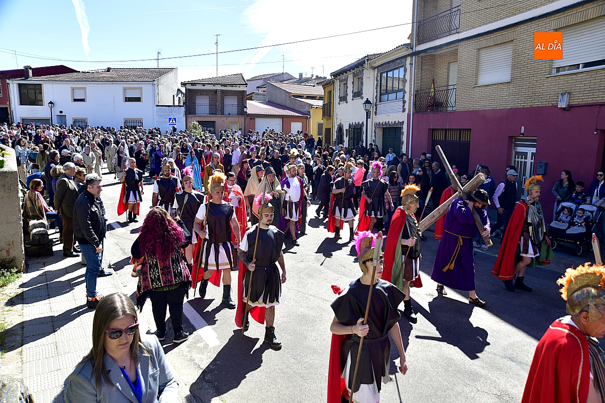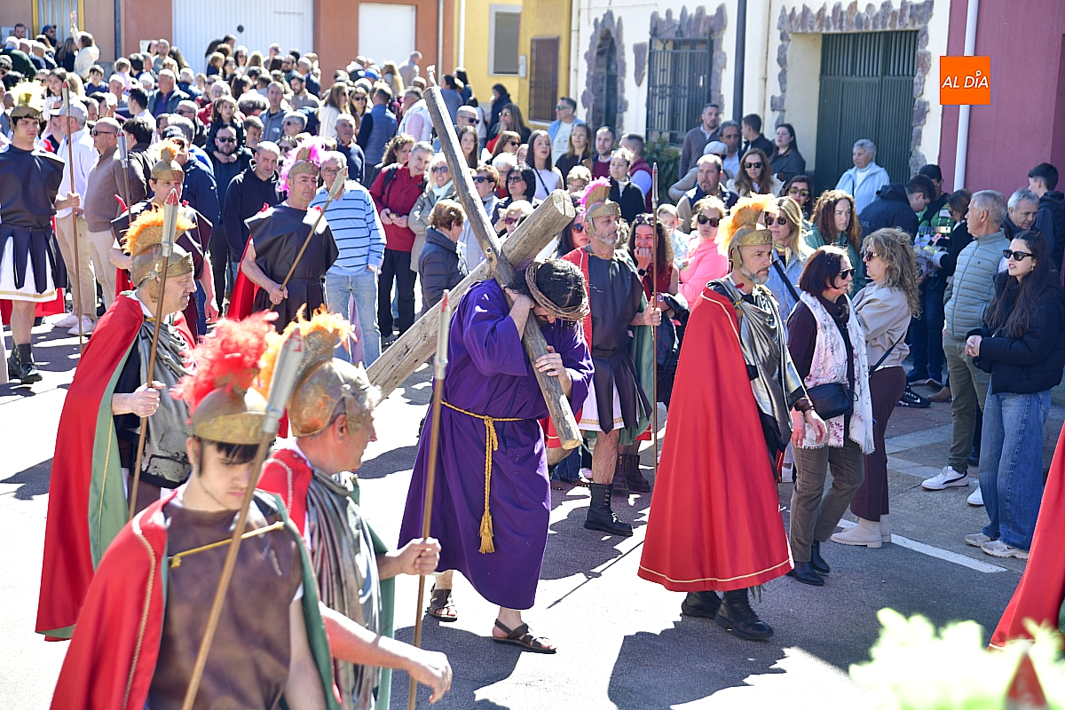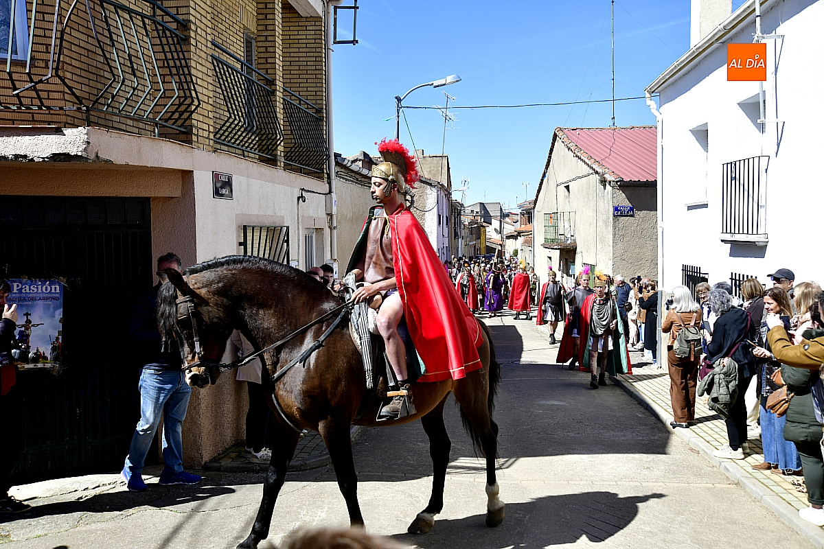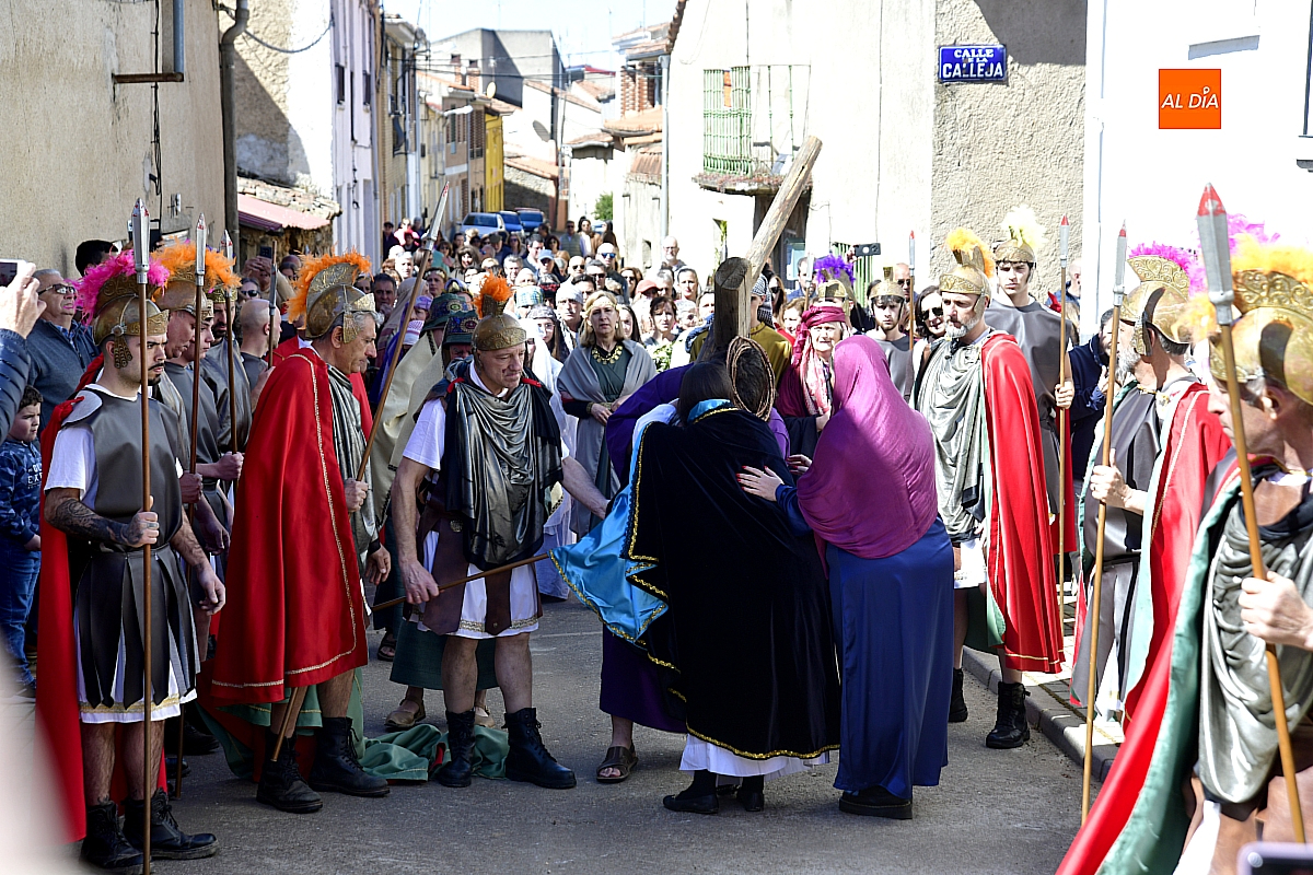 A su lado, cerca de un centenar de vecinos —niños, adultos y mayores— asumieron distintos papeles en una escenificación coral que contó, además, con la participación del párroco, Efraín Peinado. Todos, bajo la coordinación de la Asociación "La Cumbre", contribuyeron a recrear los últimos días de la vida de Cristo siguiendo un esquema fiel a la tradición, pero siempre abierto a la emoción renovada de cada edición.