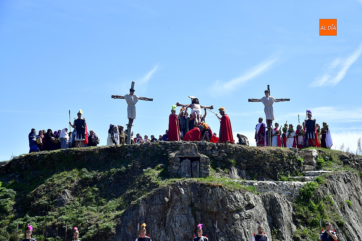 Sin embargo, es en el Vía Crucis donde la representación alcanza su mayor intensidad simbólica. El recorrido, marcado por las caídas y el encuentro con la Virgen, fue seguido en respetuoso silencio por el público, consciente de asistir a uno de los momentos más sobrecogedores. La ascensión al Gólgota, culminada con la crucifixión y el posterior descendimiento de Jesucristo y los dos ladrones, cerró la escenificación con una sobriedad que eludió cualquier exceso, dejando espacio a la reflexión íntima.