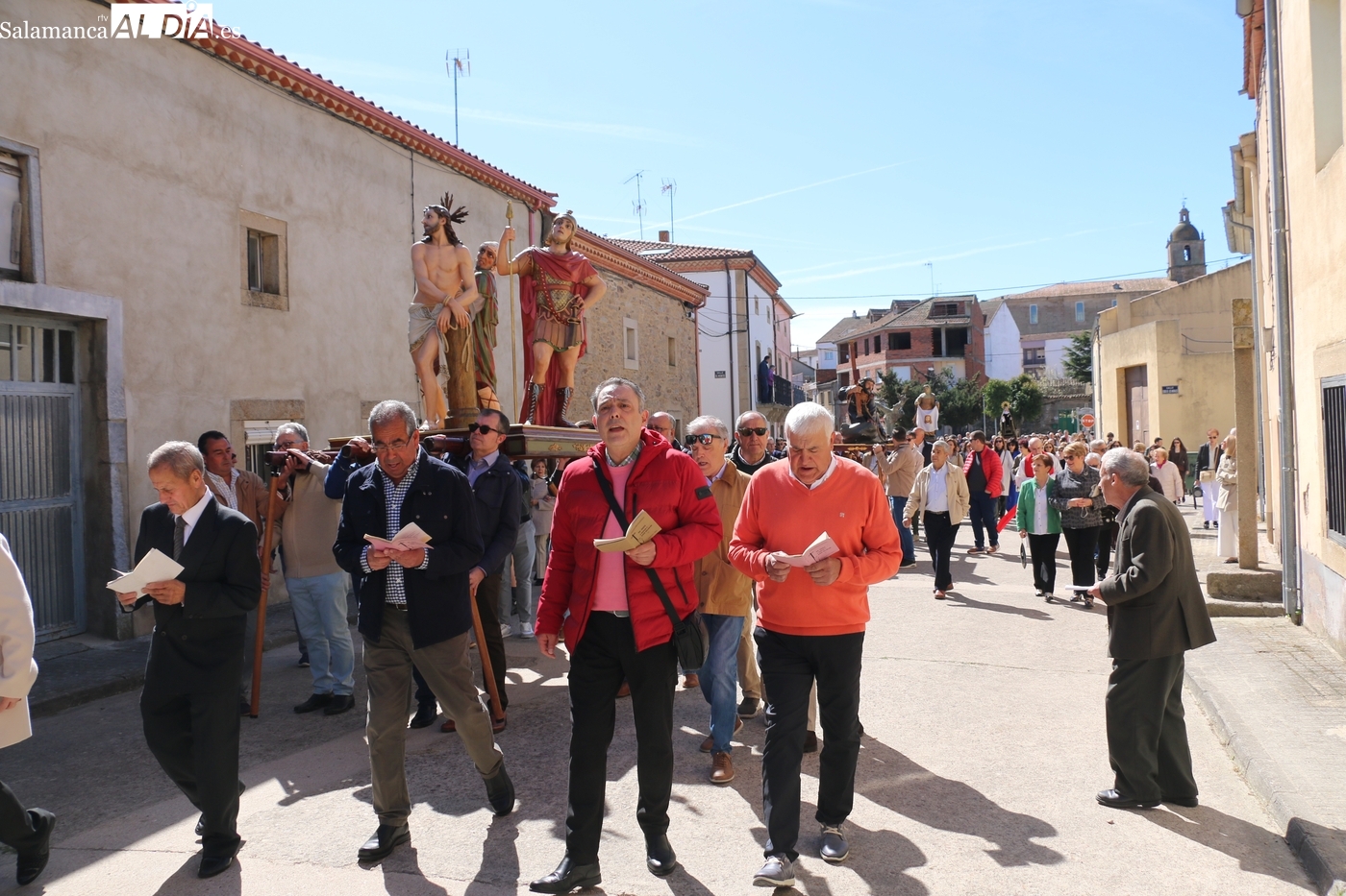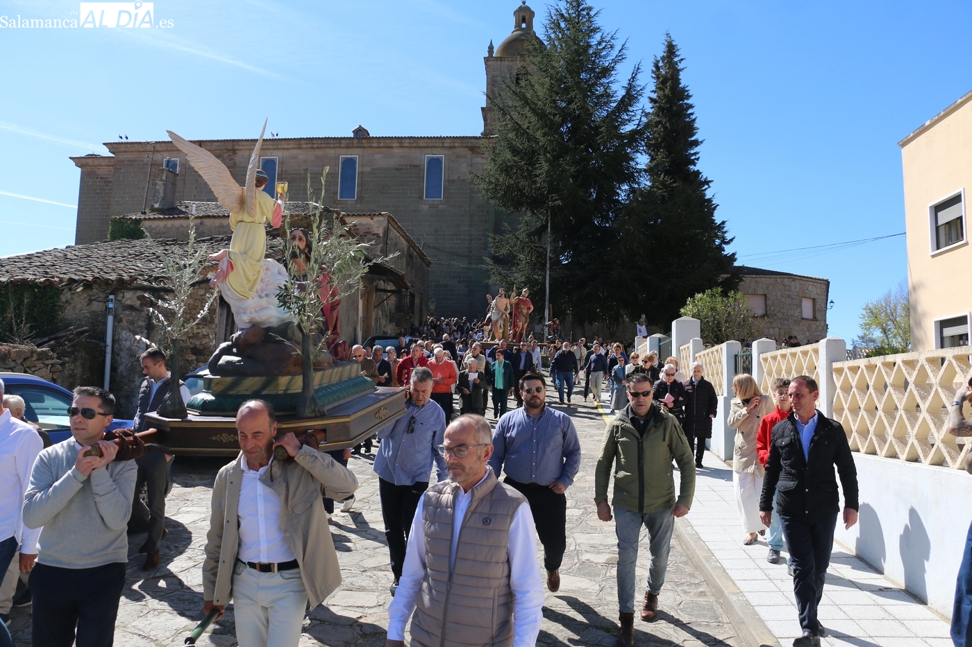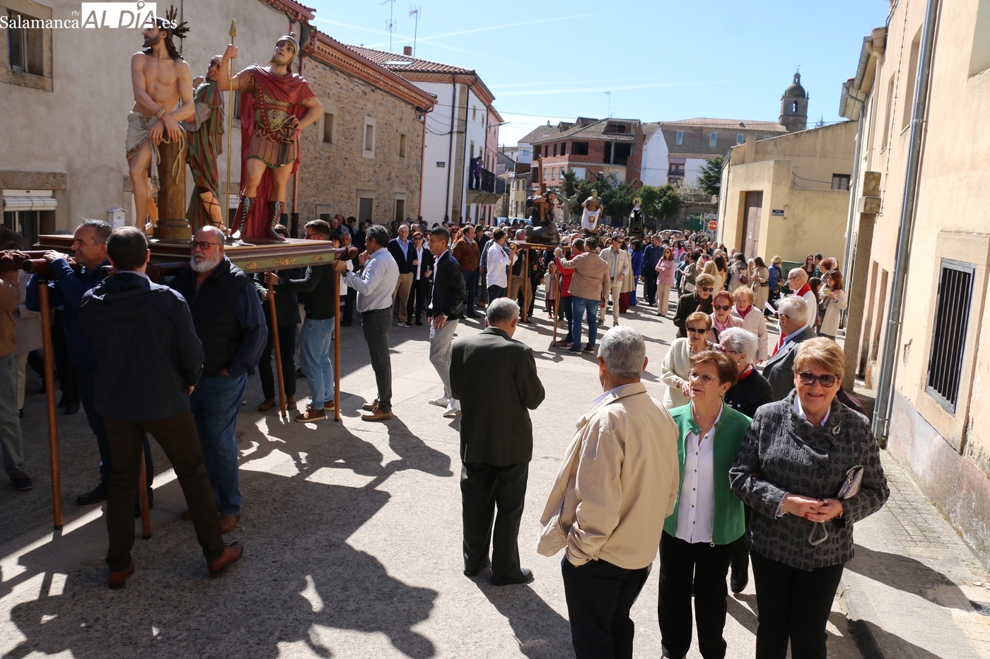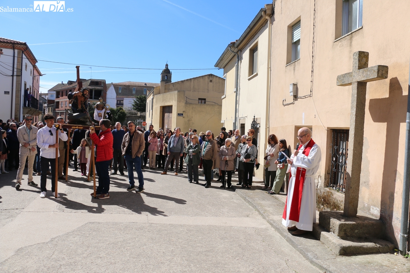 Numerosos vecinos participaron en la procesión con cinco imágenes, y que transcurrió entre la iglesia parroquial y la ermita del Humilladero, oficiada por el párroco Andrés García
