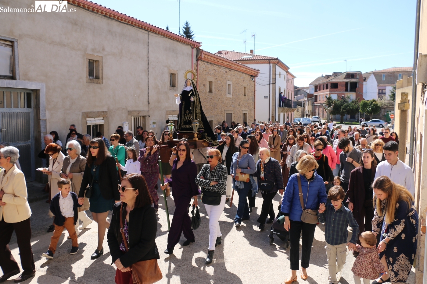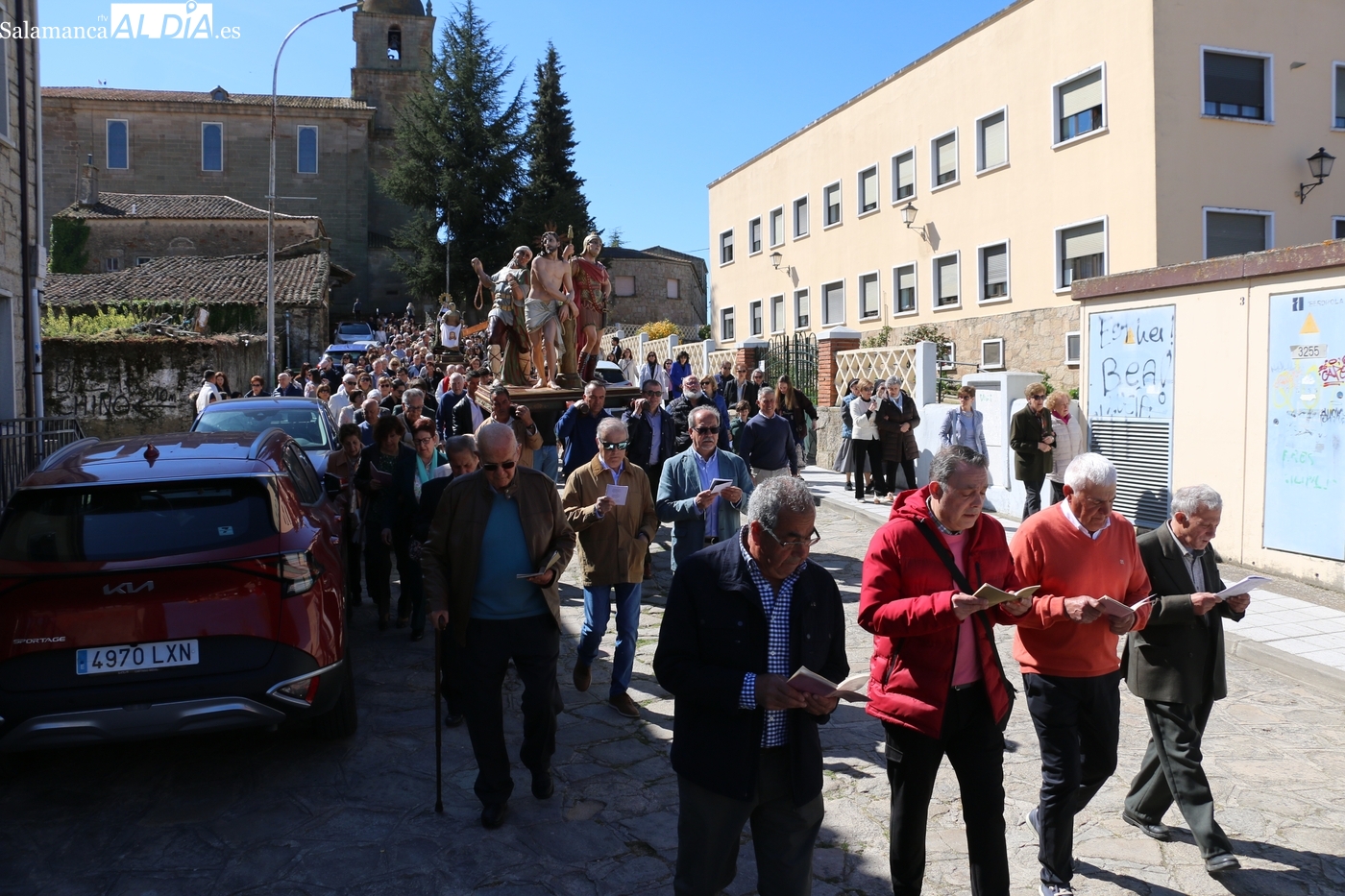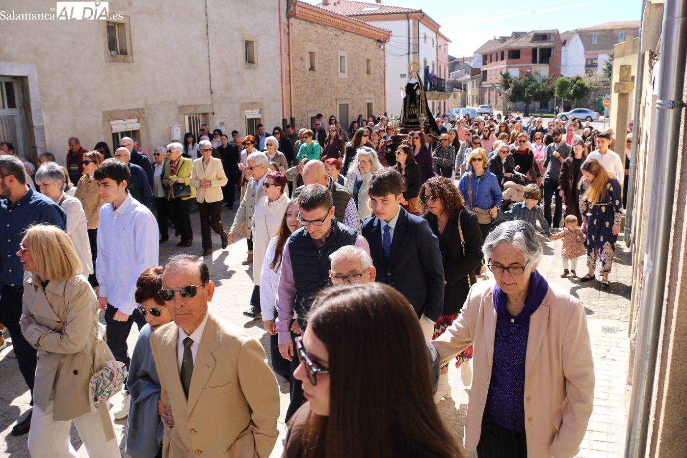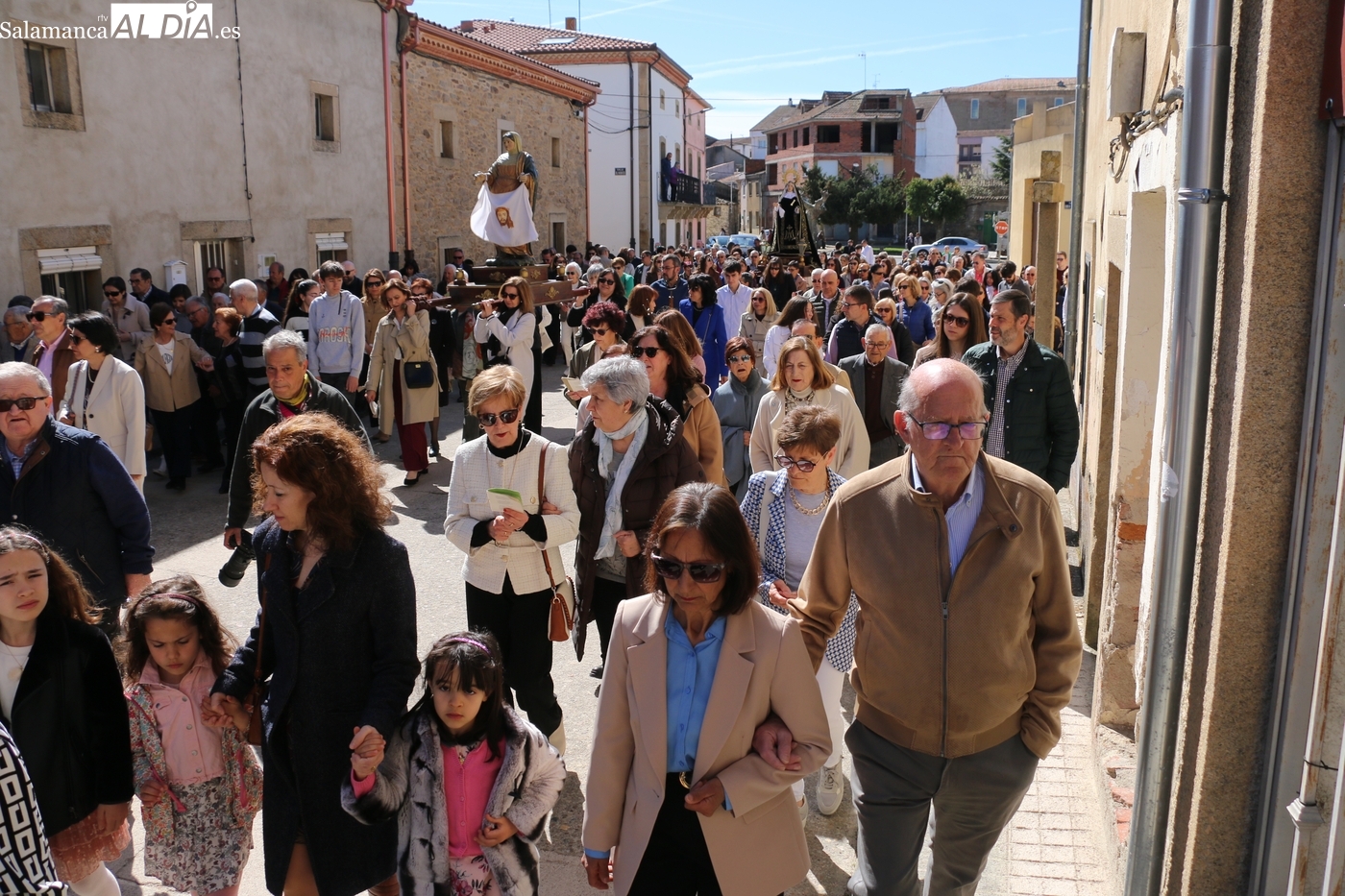 Numerosos vecinos participaron en la procesión con cinco imágenes, y que transcurrió entre la iglesia parroquial y la ermita del Humilladero, oficiada por el párroco Andrés García
