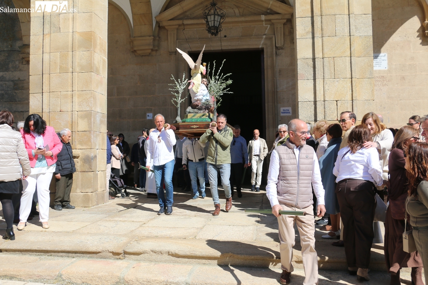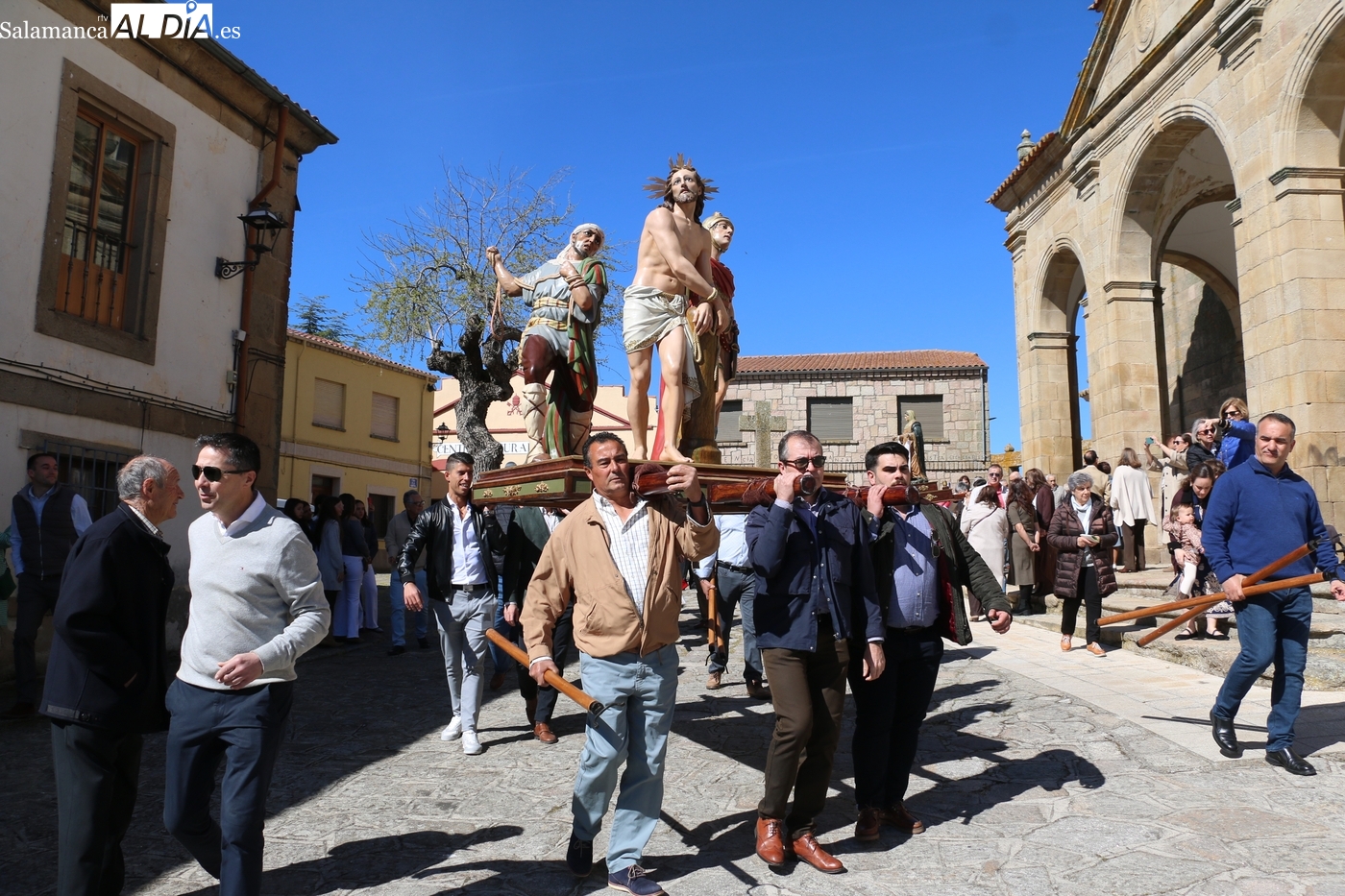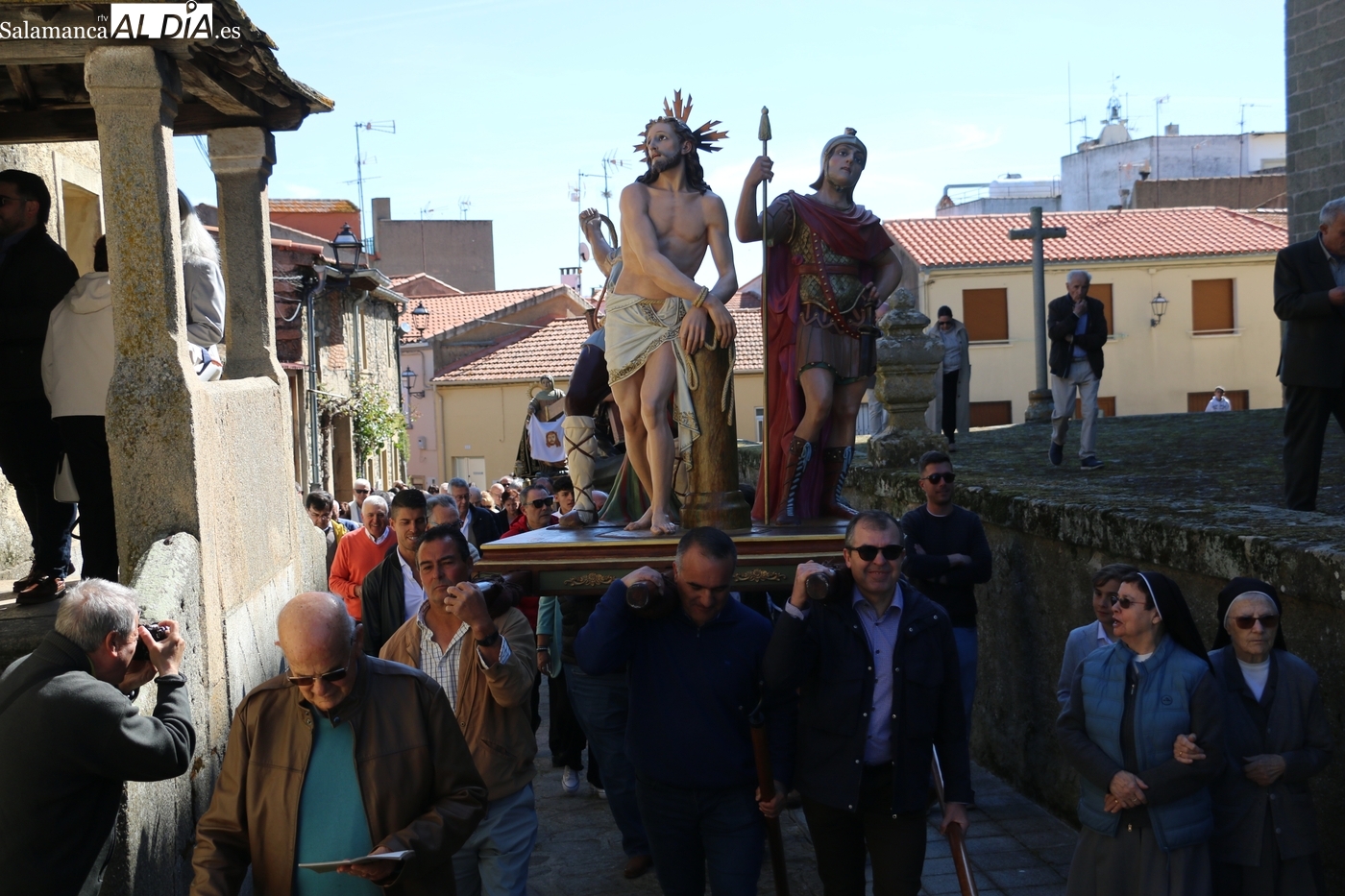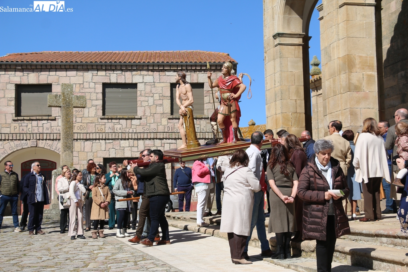 Numerosos vecinos participaron en la procesión con cinco imágenes, y que transcurrió entre la iglesia parroquial y la ermita del Humilladero, oficiada por el párroco Andrés García