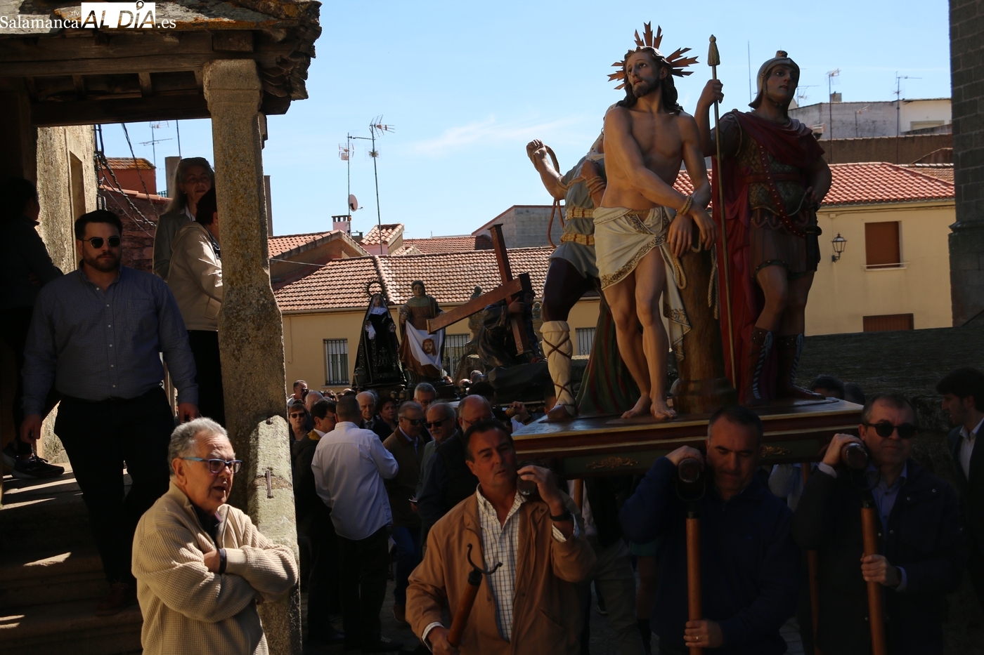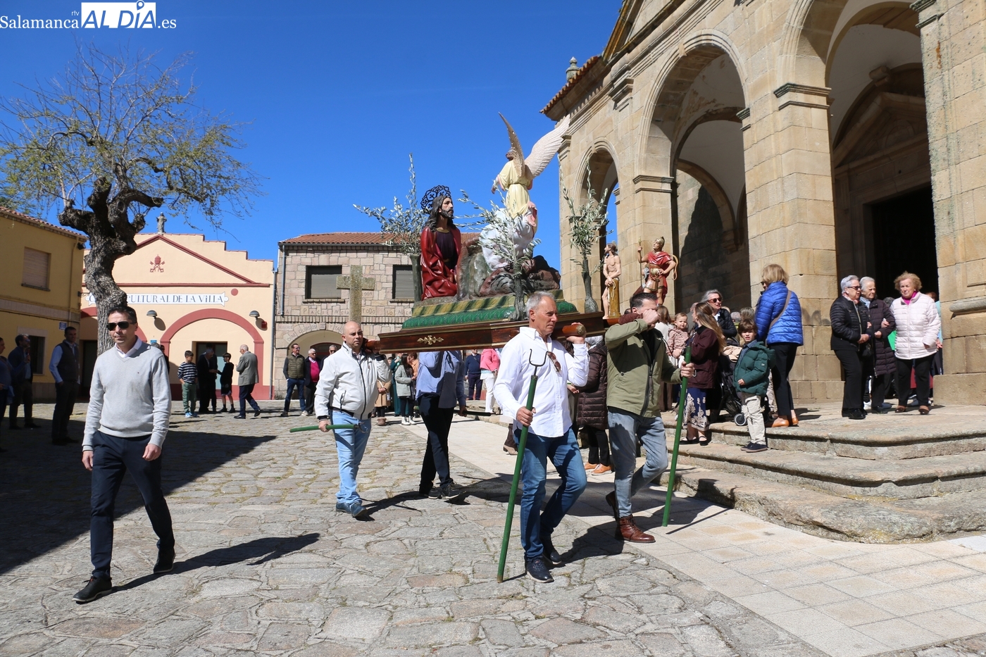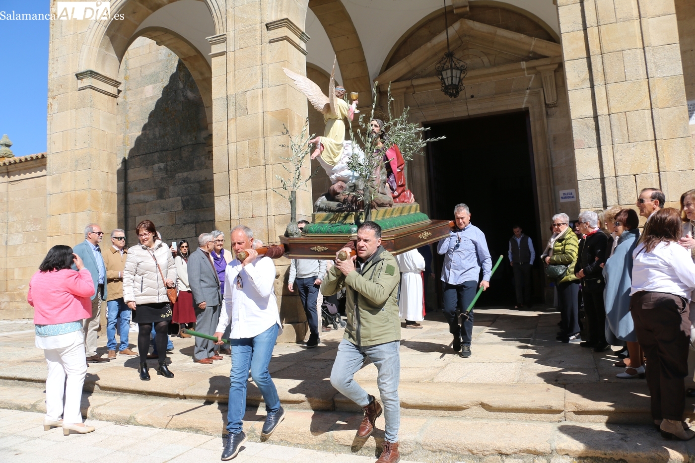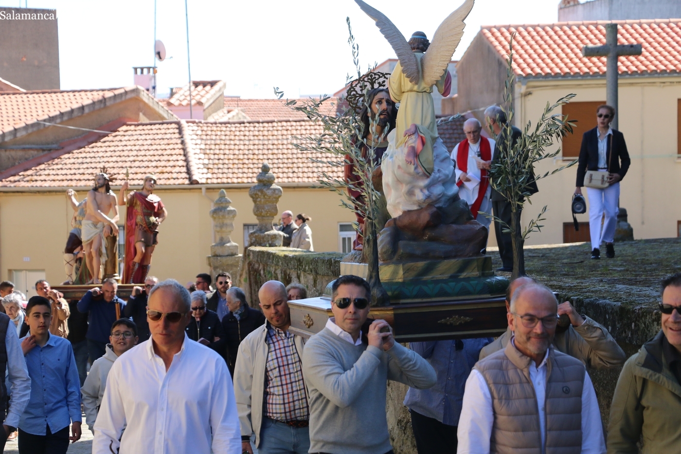Oficiada por el párroco Andrés García, la procesión con cinco imágenes, Jesús en el Huerto de los Olivos, ‘El Amarrao’, El Nazareno, la Verónica y la Dolorosa, comenzaba a los pocos minutos de que el reloj diera el mediodía.