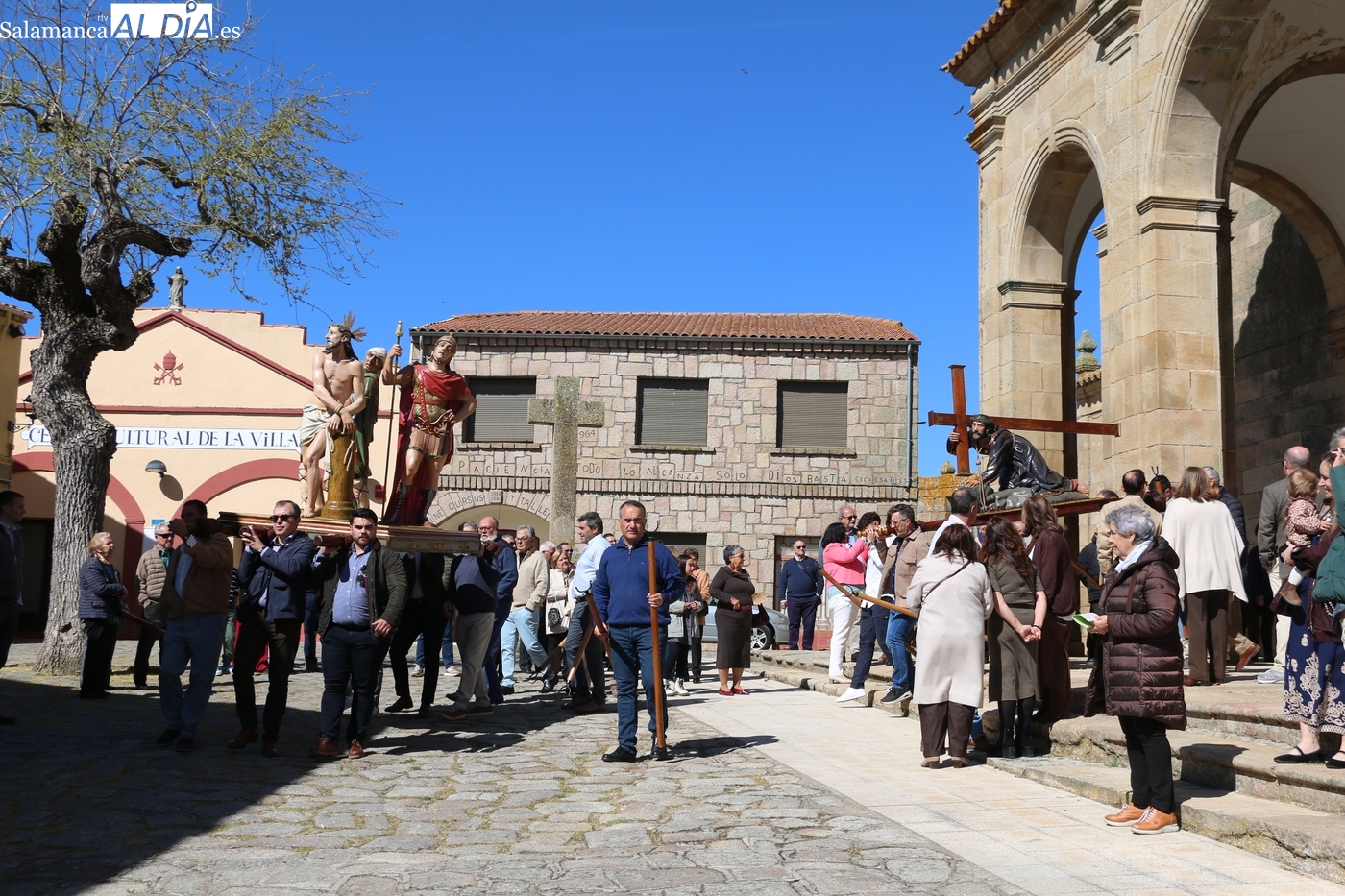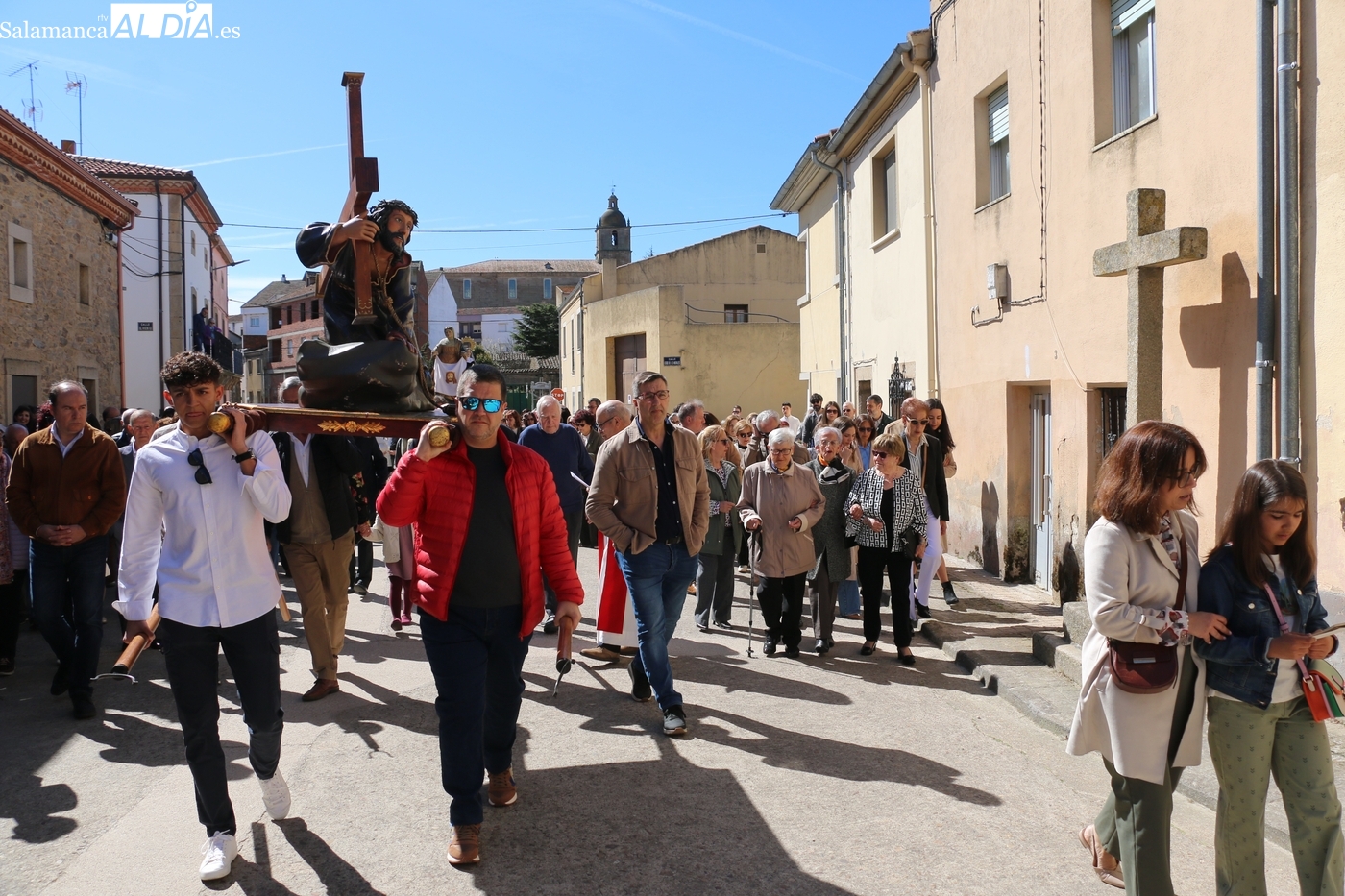 Numerosos vecinos participaron este Viernes Santo en el viacrucis celebrado en Lumbrales, acto procesional que discurre por las 14 estaciones comprendidas entre la iglesia parroquial y la ermita del Humilladero.