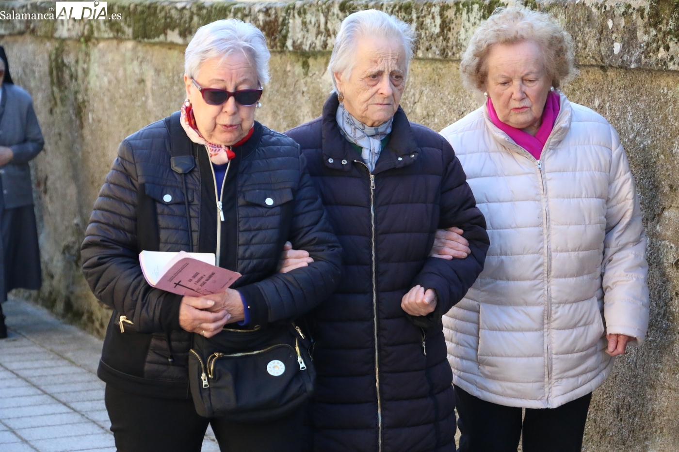 Bajo los cánticos de hombres y mujeres, la procesión discurría con la parada de rigor en cada una de las cruces del camino, donde el párroco procedía al rezo de oraciones acompañado por los fieles, acto que concluía con una canción para emprender camino de la siguiente estación.