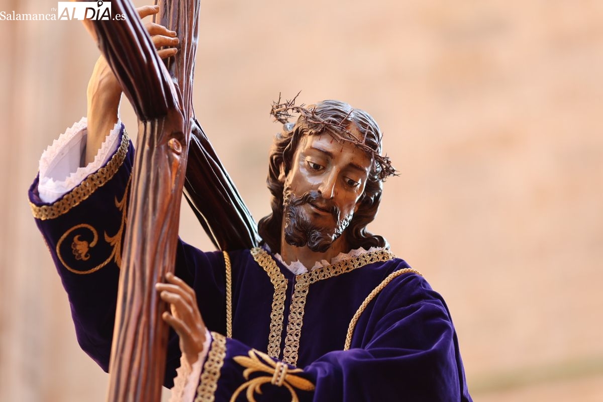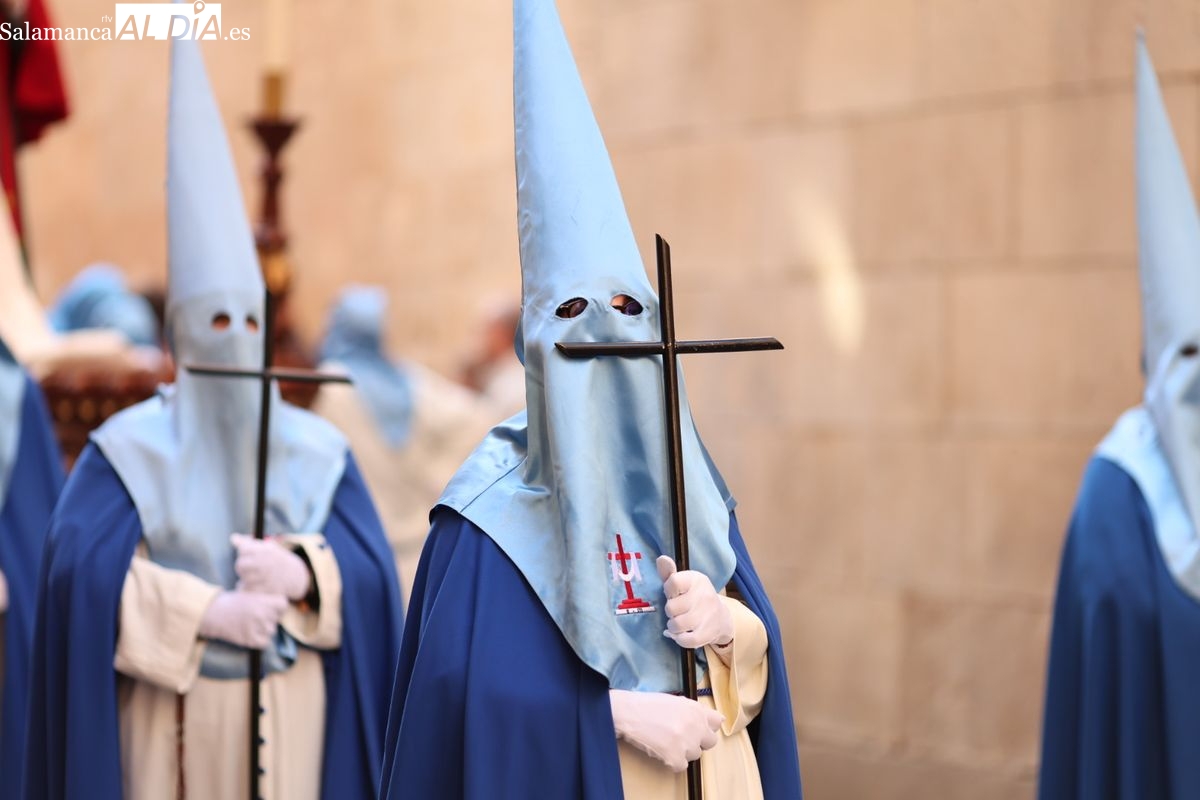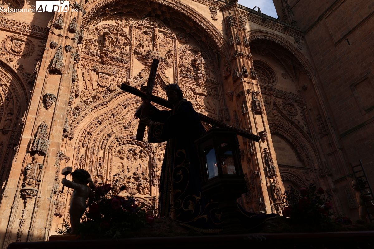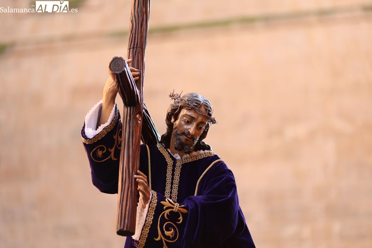 La Ilustre Cofradía de la Santa Cruz del Redentor y de la Purísima Concepción de la Virgen, su Madre, vuelve a recorrer las calles este Viernes Santo. Tras la cancelación sufrida el pasado año a causa de las precipitaciones, la marcha penitencial se desarrolla acompañada por excelentes condiciones meteorológicas.