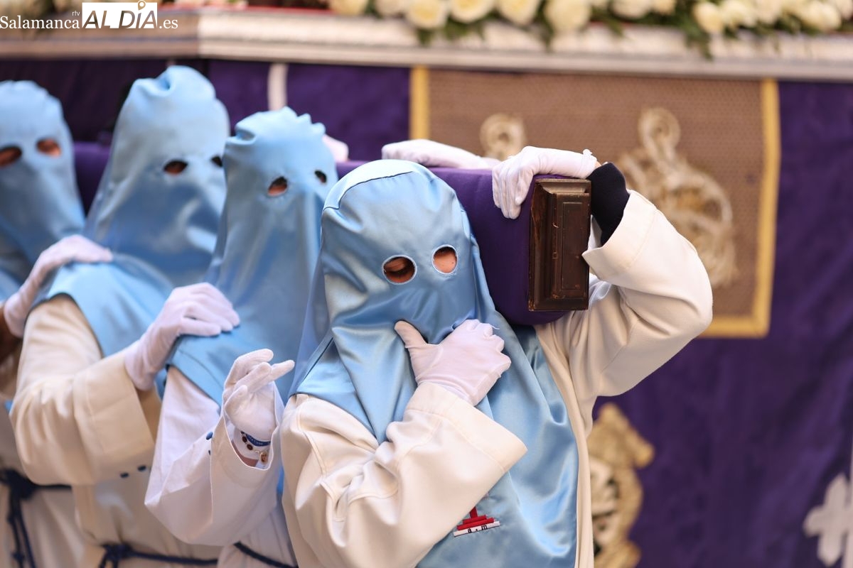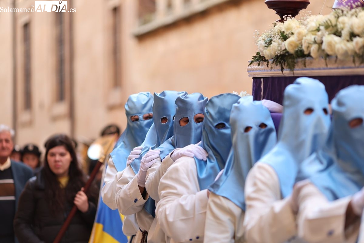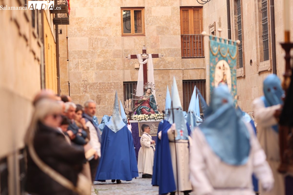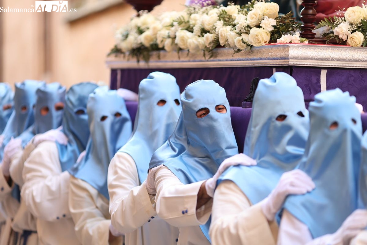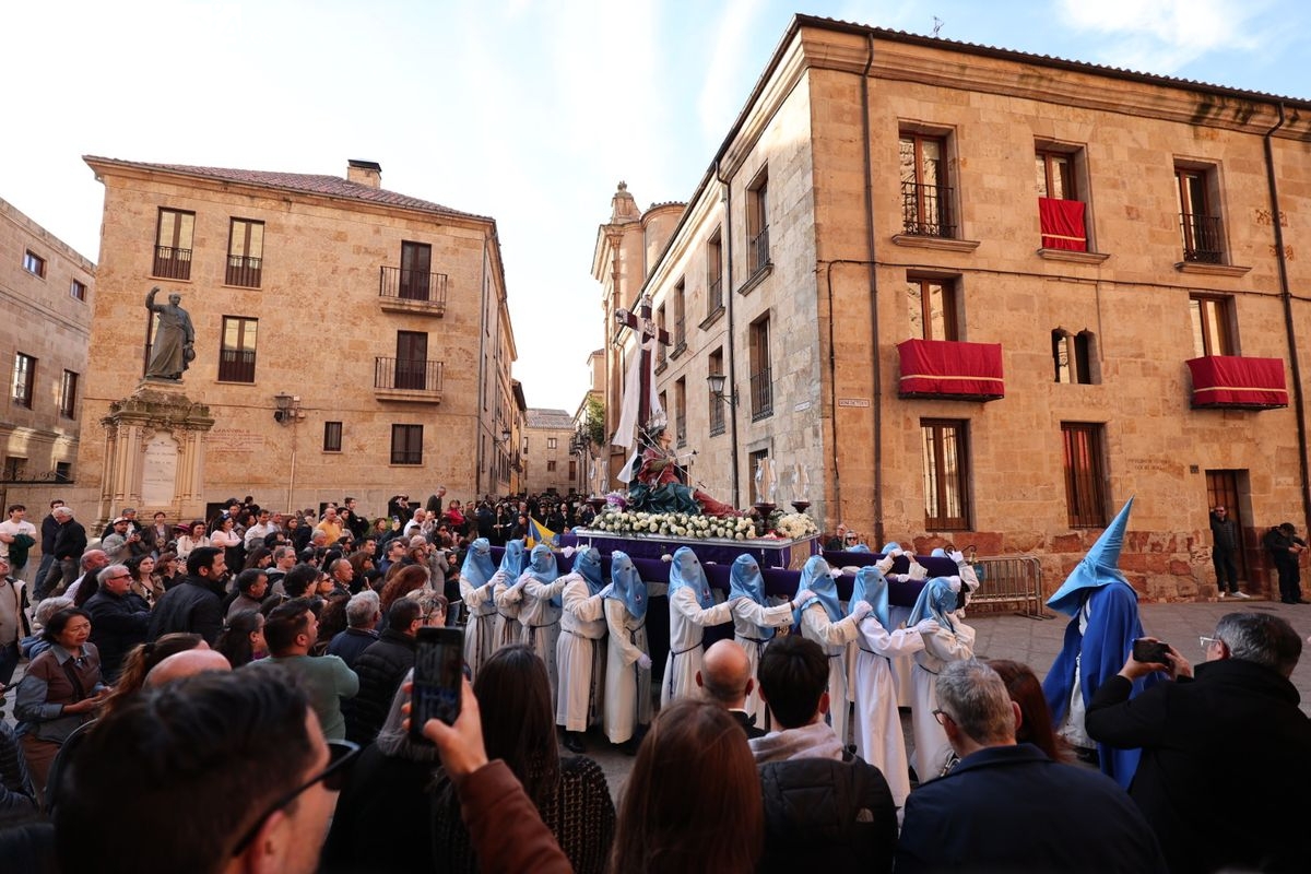 La Ilustre Cofradía de la Santa Cruz del Redentor y de la Purísima Concepción de la Virgen, su Madre, vuelve a recorrer las calles este Viernes Santo. Tras la cancelación sufrida el pasado año a causa de las precipitaciones, la marcha penitencial se desarrolla acompañada por excelentes condiciones meteorológicas.