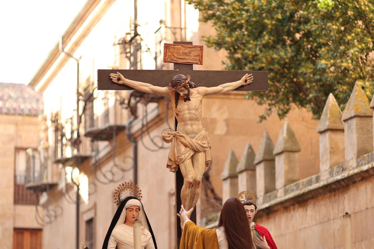 La jornada ha comenzado con la celebración del tradicional acto del Descendimiento, paso previo indispensable antes de iniciar el recorrido por la ciudad. Posteriormente, la marcha procesional ha iniciado su camino partiendo desde la capilla de la Vera Cruz.