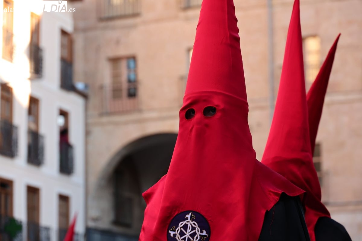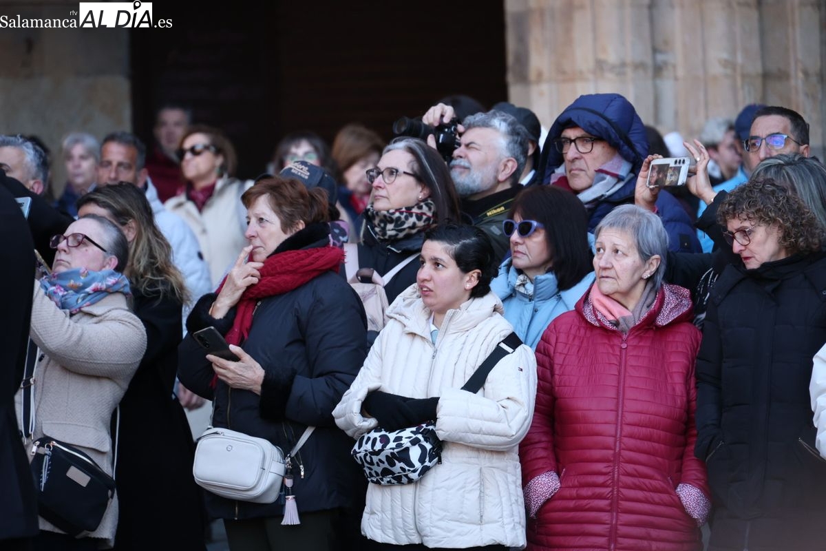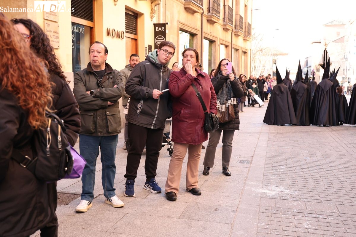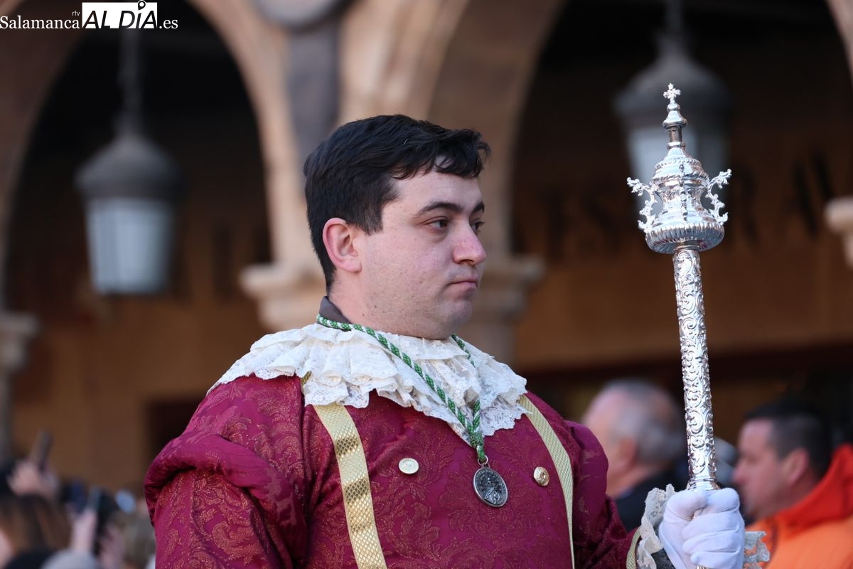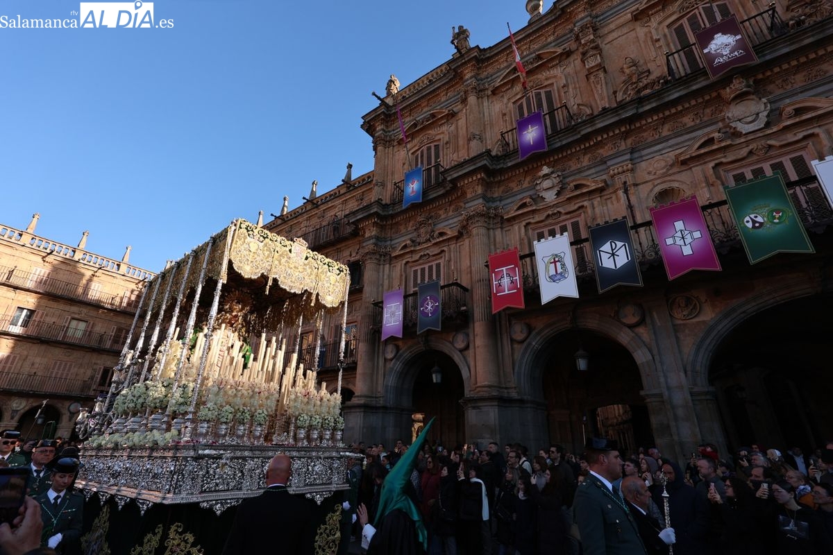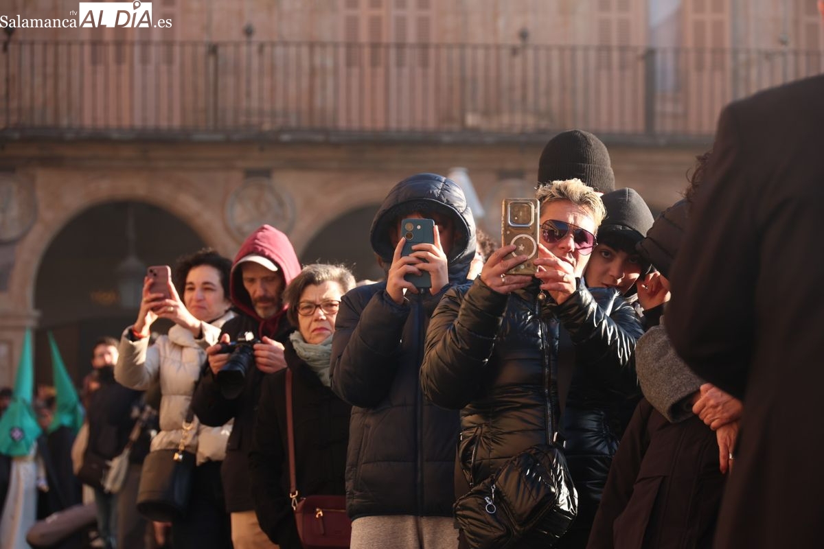 A las 5:00 horas de la mañana, las puertas del Convento de San Esteban se han abierto para dar inicio a una de las procesiones más esperadas de la Semana Santa salmantina. Cientos de fieles se han congregado en los alrededores del templo para acompañar a la Hermandad Dominicana en su recorrido por las calles del centro de la ciudad.