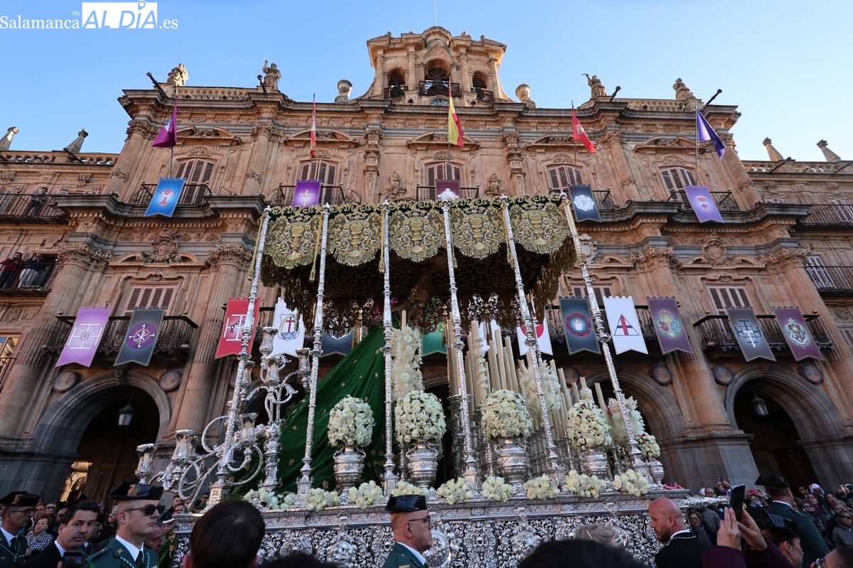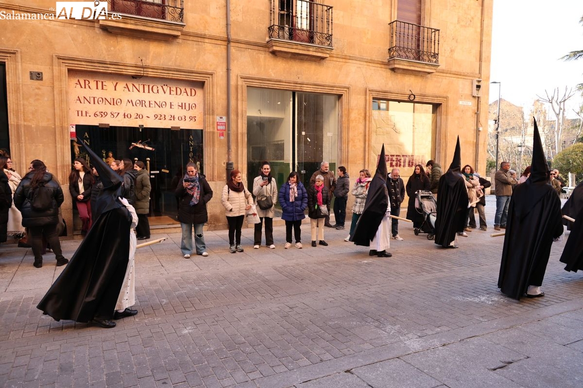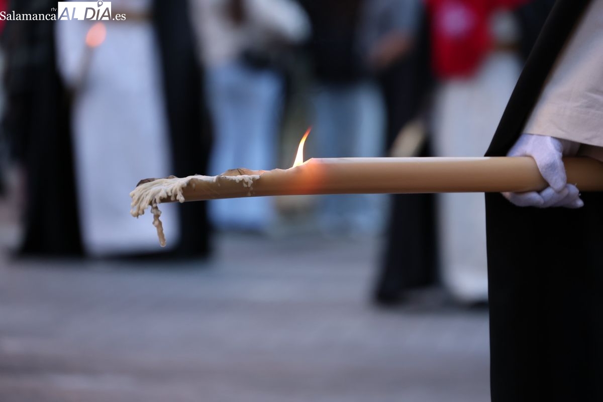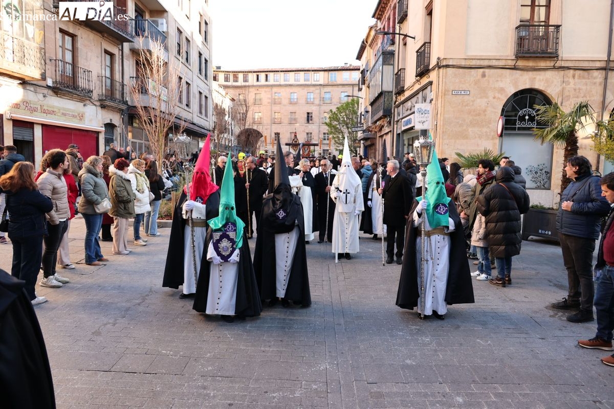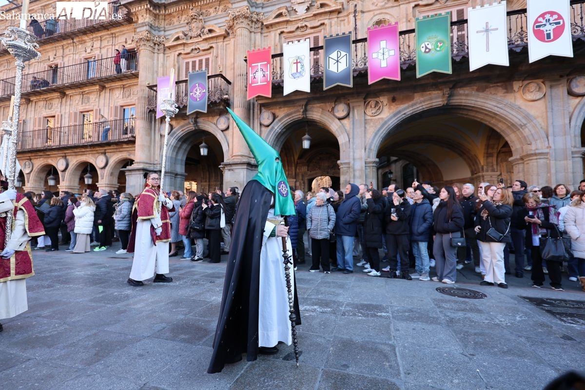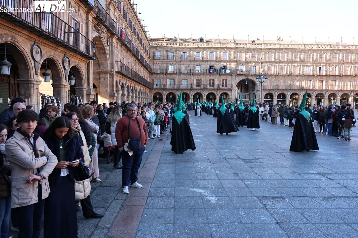 A las 5:00 horas de la mañana, las puertas del Convento de San Esteban se han abierto para dar inicio a una de las procesiones más esperadas de la Semana Santa salmantina. Cientos de fieles se han congregado en los alrededores del templo para acompañar a la Hermandad Dominicana en su recorrido por las calles del centro de la ciudad.